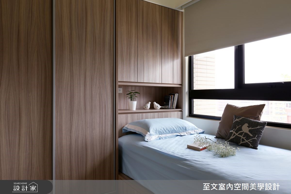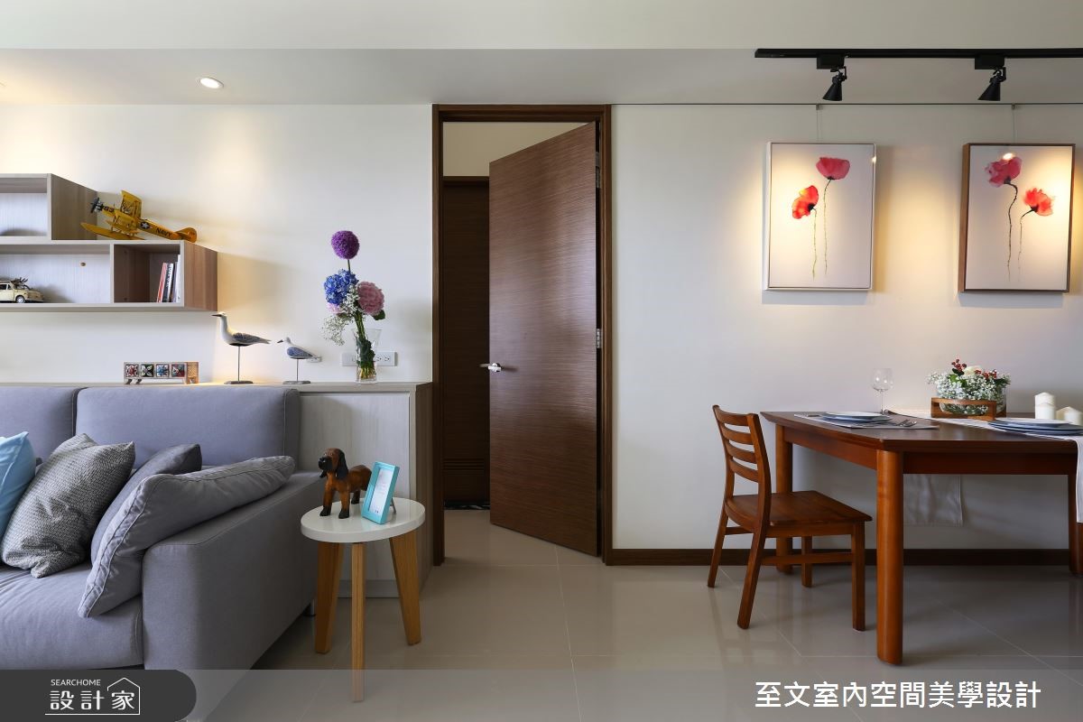 从事飞航工作的机师屋主,工作时需要非常高的专注力,每一次的飞行都相当谨慎,期待属于自己的新家可以有舒适放鬆的氛围,花了 3 年时间,找到理想的房屋物件,并委託至文设计,为他量身打造 22 坪的简约风居家。公领域以淡雅自然的色系,营造出轻鬆休閒的质感,玄关处特意以收纳柜满足了风水和实用性的考量,并增加行李箱收纳,当屋主结束飞行工作回到家后,一进门就能收好行李箱。因为屋主十分好客,也喜爱下厨料理,考虑到有招待客人的需求,餐厅以弹性方式规划,平常一个人可以靠墙使用,当有客人时餐桌便可挪出,长凳也能增加使用座位,设计师并将电器柜隐藏于滑门后,让空间看起来更清爽。主卧室的床头位置有大樑和柱子,空间显得歪斜不方正,设计师运用樑下收纳柜和假门设计,巧妙修饰了格局比例。次卧则作为亲友住宿时的客房使用,除了客房机能外,也善用床底和窗边空间增加收纳效益。小编的最爱在屋主预算有限,以及需要快速入住的条件下,专业的设计团队不但贴心为屋主思考每个生活细节,更在一个半月内便完成新家装潢任务!