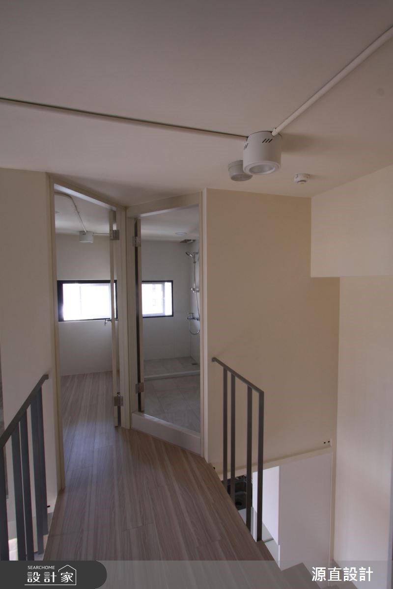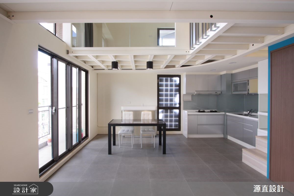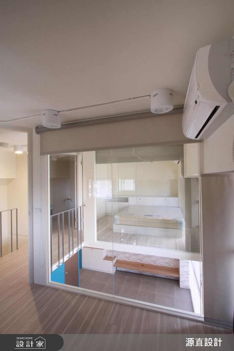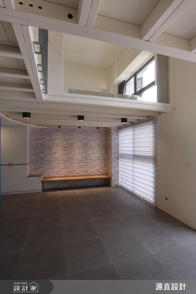 10年屋龄的99平方米复式楼,原为夫妻二人居住,后因小孩出生将格局重整翻新,并针对孩子的成长需求增加收纳机能,并增加一间儿童房及更衣室辅助,即使不换屋也能共享舒适生活。【跳色蓝墙,转换空间风格】空间以一面湛蓝色墙面做为开端,搭配隔板、衣帽挂勾、收纳鞋柜等,开启机能性十足的场景,并让此道蓝延伸导引入室,形成公领域的聚焦色彩。一楼客厅保有宽敞留白,给予孩子安心活动的空间,且在天花板作出线条架构,增添视觉上的活泼层次。二楼侧墙则加入清玻建材,搭配着围栏的穿透设计,不只兼具采光及活动安全性,也型塑出空中步道般的趣味视野。