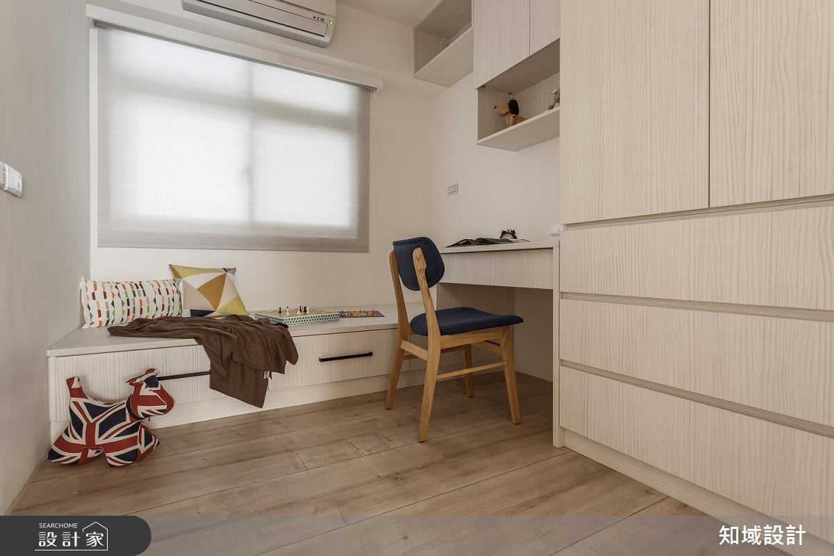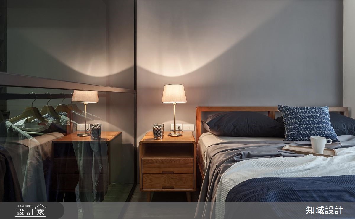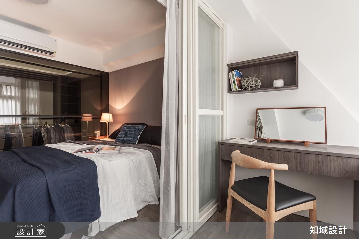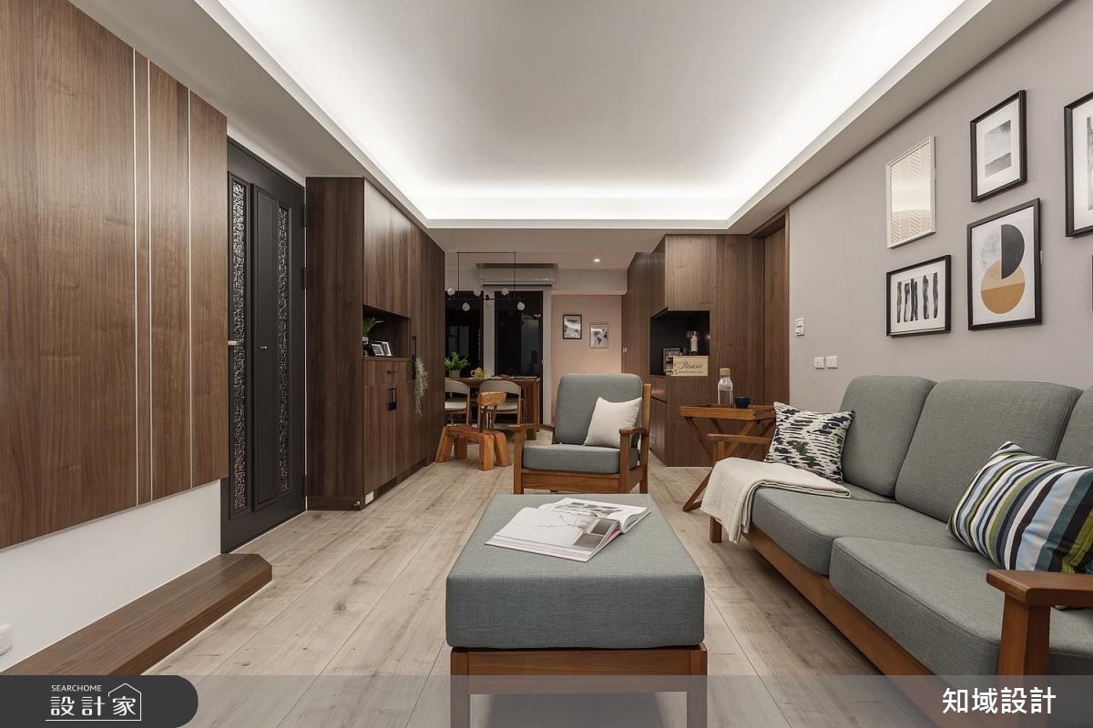 112平方米的老屋,设计师为让年迈双亲可坐拥更舒适生活,于是将空间加以改造,除了给予庞大的收纳机能,也藉由深色木皮包覆,凝聚温暖氛围,透过简约纾压的风格设计,打造老少咸宜的居家美感。【运用材质,创造和谐空间氛围】公共领域以深色木质作为主调,营造恬静安稳的氛围,于电视墙铺陈木皮背景,搭配细致沟缝处理,带出墙面的精致度,同时让玄关柜转折延伸,陆续接至餐厅领域,以超量的收纳柜开启机能实用性,而一贯的自然木纹,则让整体风格一致,注入安定人心的氛围。主卧则划分为三个区块,除了睡眠休寝功能,也额外区划出更衣间与独立梳妆室,并运用玻璃打造隔断,创造场域之间的视觉联系,并维持采光的流动,在保有实用机能之余,也网罗通透明亮的空间感。