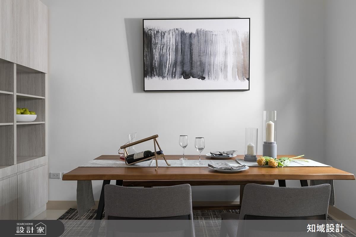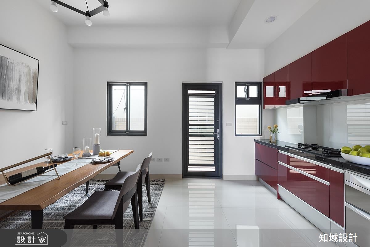 长期在外地工作的女屋主,为了家中长辈以及自己返乡度假时的住所,购置了这处165平方米别墅。屋案本身拥有不错的采光条件,设计师藉由温和的灰调和木质,呈现出酒店般的舒适感,也具有现代时尚的感受,让屋主回到家就能享受清爽又纾压的生活氛围。【清爽用色,塑造无压生活氛围】采光明亮的一楼公共空间,设计师舍去繁复的装饰手法,利用简洁、利落的线条和色调,调制出舒适休闲感,天花板尽可能保留原始的楼层高度,带来更高挑的视觉感受,搭配宁静的灰色调、布织沙发和图腾地毯,营造出令人放松的生活氛围。 餐厨区以大幅留白与酒红色厨具设备,塑造鲜明而大胆的色彩对比,宽敞的木长桌更提供用餐时的舒适度;而卧室延续简约基底,不做多余的装饰,床头、地坪运用大量的木质元素,搭配墙面画作的装饰,塑造出宛如度假酒店般的设计质感。