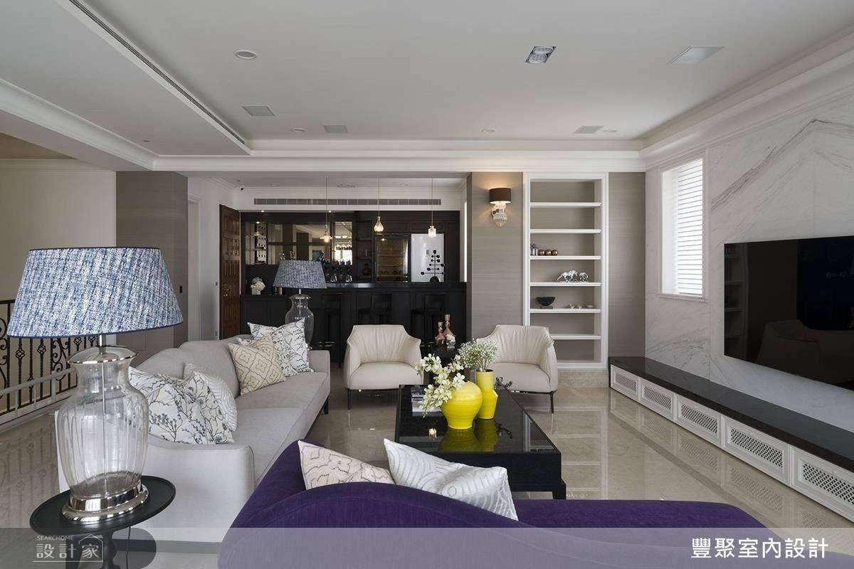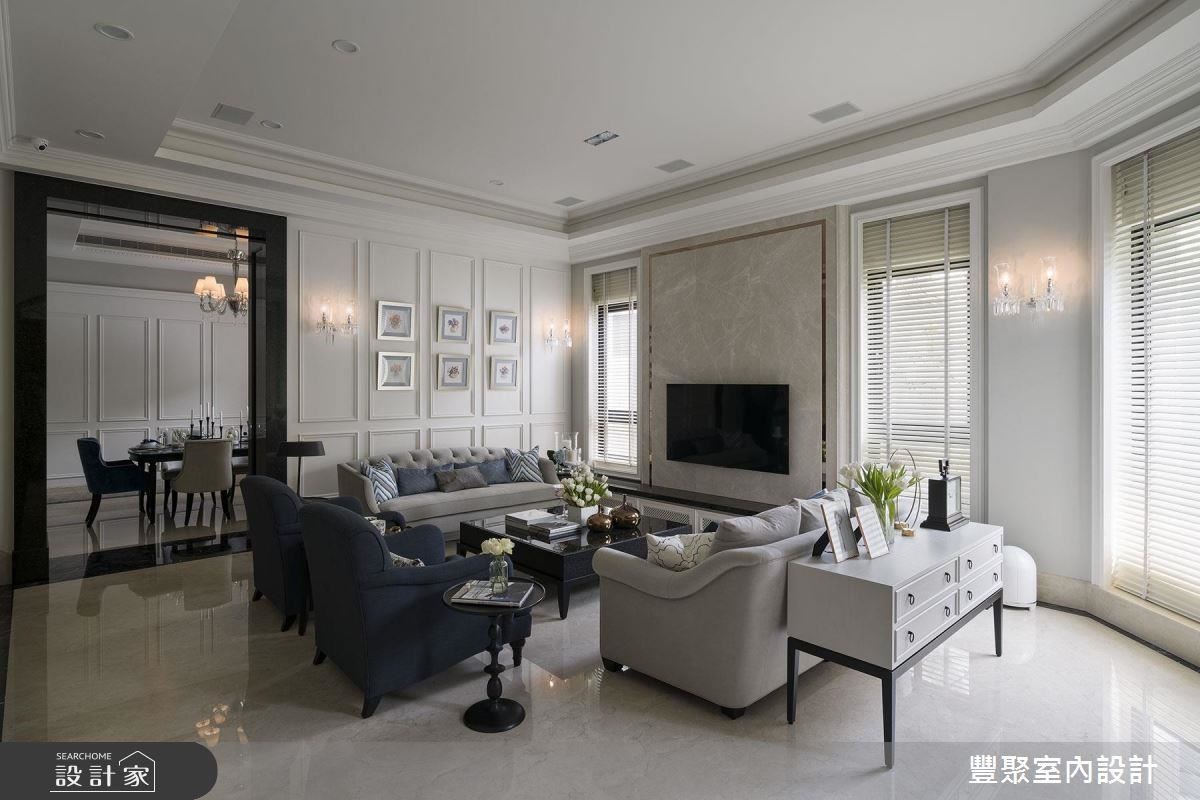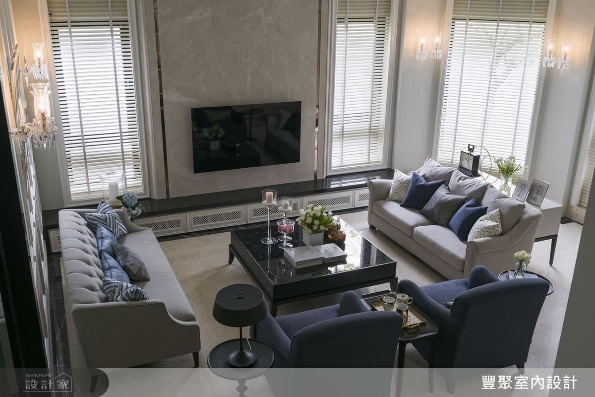 重视空间质感的屋主,希望能藉由丰聚设计的专业,打造恒久流传的新古典表情。从外建筑即可感受到新古典的低调华美,室内一楼空间以白色为基调,地面铺设高贵典雅的大理石,呼应天、地、壁的细腻线条线板。