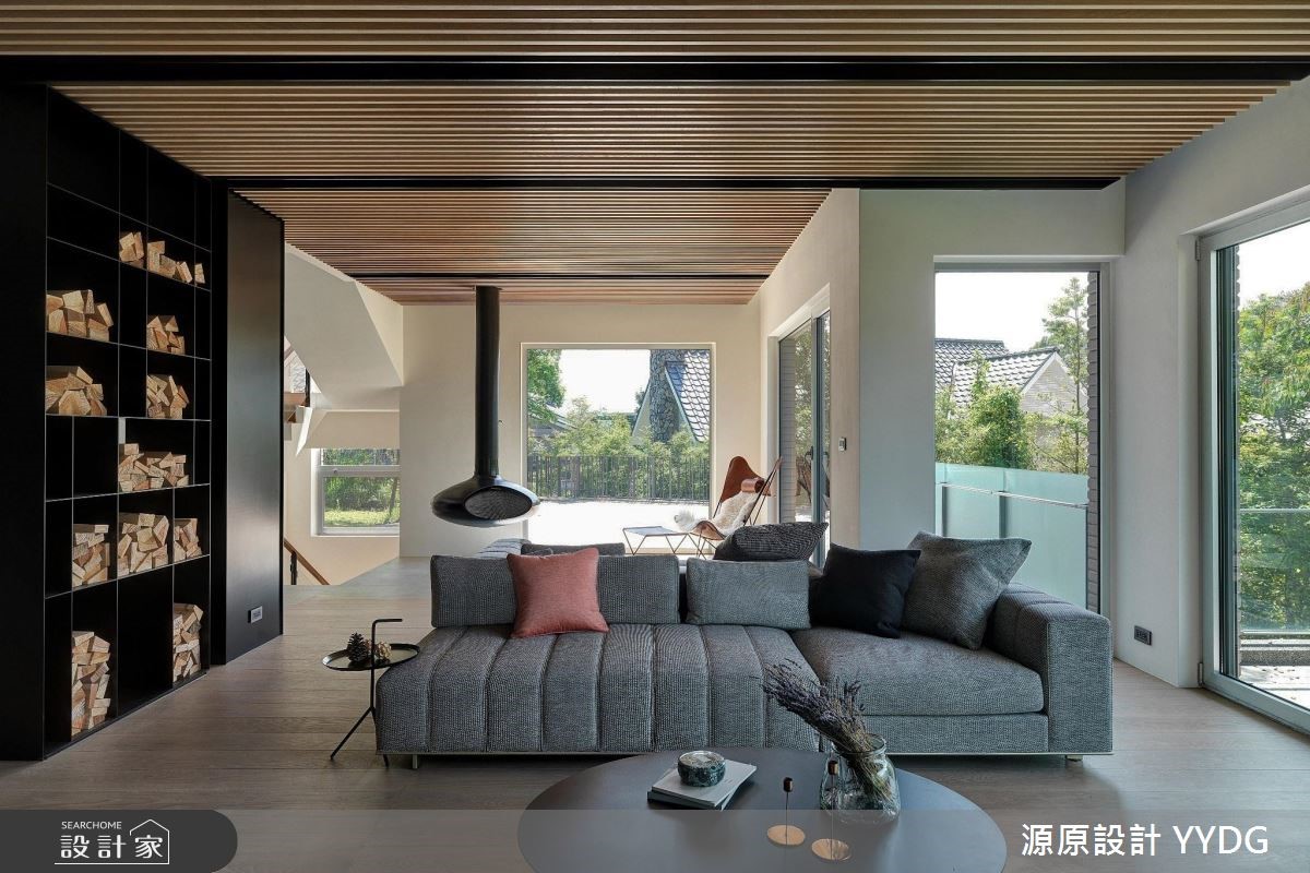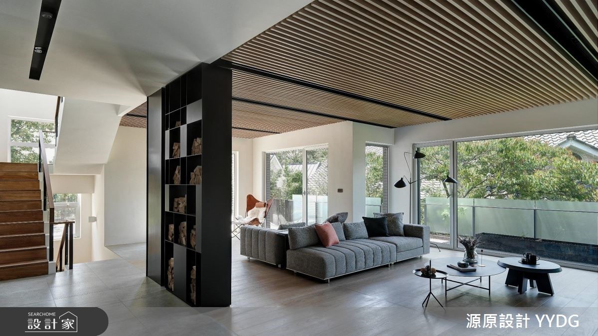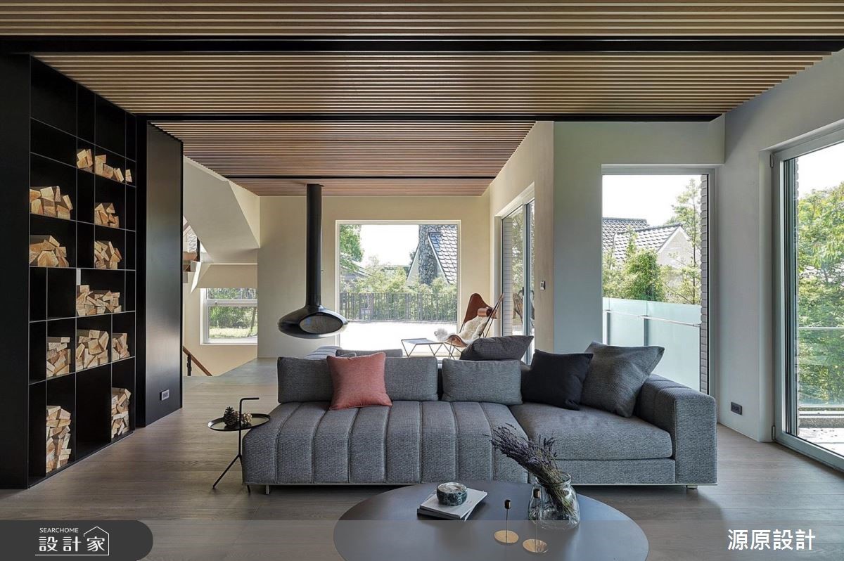 座落碧绿山城的豪华别墅,以"减法设计"为主轴,抹除过多修饰面的可能性,刻意模糊边界的设计手法,将开窗面积放大,引景入室,让绿意日光与室内设计交织融合,赋予居住者简约、放松与沉稳的感受。【穿透空间,日光绿意请进来】公领域皆以全开放设计串连,起居间以双面沙发创造多维休憩空间,并利用石材与木地板区分。带有流云纹理的大理石电视墙,辅以天花格栅设计打造深邃视觉,搭配富有特殊流线造型的悬吊式壁炉,令人宛如身处欧式现代大宅中。为了让日光与绿意得以到达家中各处,穿透与镂空设计在本案相当常见。除了客厅的铁件隔屏,书房以镂空展示隔断串连内外空间。私领域同样以大面积开窗、大量石材搭配木元素,创造自然清新的景象。