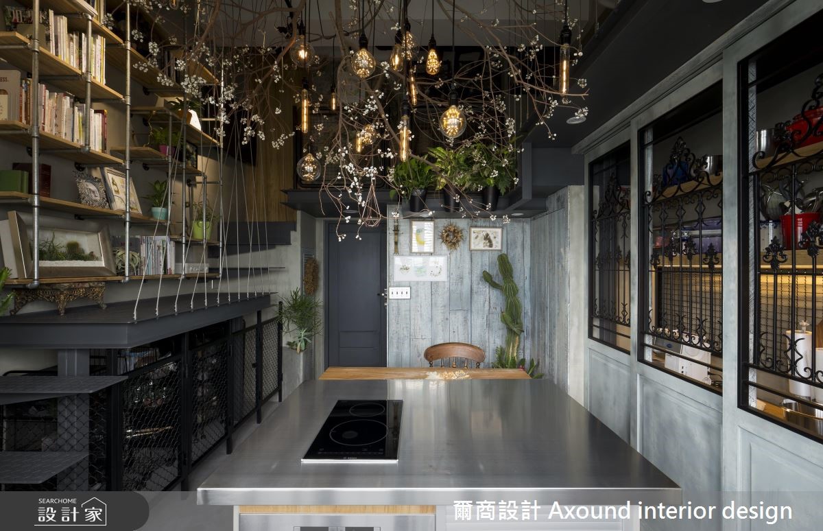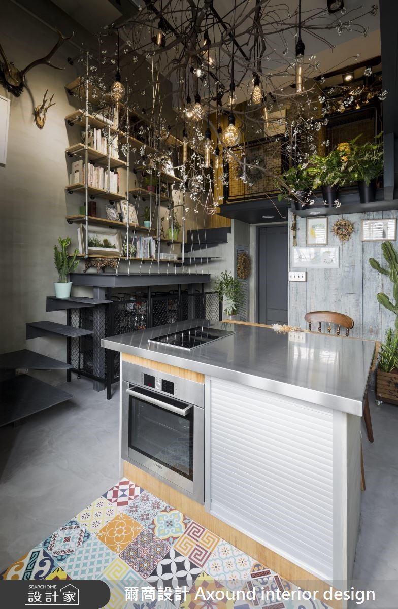 这是24平方米的小户型,设计师改善不合宜的既有格局,加入住宅兼工作室的两用规划,再以工业风元素为基底,揉合法式乡村等元素修饰,搭佐植栽、采光的进驻,创造出优雅柔美的生活场景。【善用绿植布置,柔化铁件的冷硬】设计师将空间的界定、界线模糊化,并创造环绕动线,适度留出挑高优势,拥有更开阔的视野。同时,加入百叶窗规划,让采光可自由筛落,并防止西晒问题,形成恰到好处的明亮氛围。建材选择上,给予深色铁件、不锈钢等高冷材质,勾勒个性轮廓,搭配枯枝结合吊灯从天而降,型塑略带华丽的视觉主景,立面门板上则运用水泥粉光及仿旧木板,佐以摆饰品展示生活轨迹,演绎乡村杂货店的随兴味道。楼梯扶手别出心裁地选用钢索打造,形成轻盈无碍的穿透视线,二楼处则以红砖迭砌墙面,再取木地板铺陈地坪,塑造温润质朴的情景,且不拘泥于传统的家具陈设型式,尤其那赫然现身的独立浴缸更充满鲜明特色,呈现出犹如法国的慵懒情调。