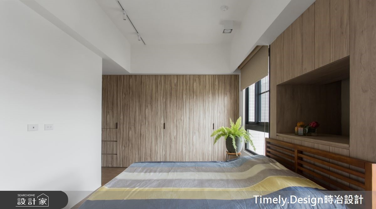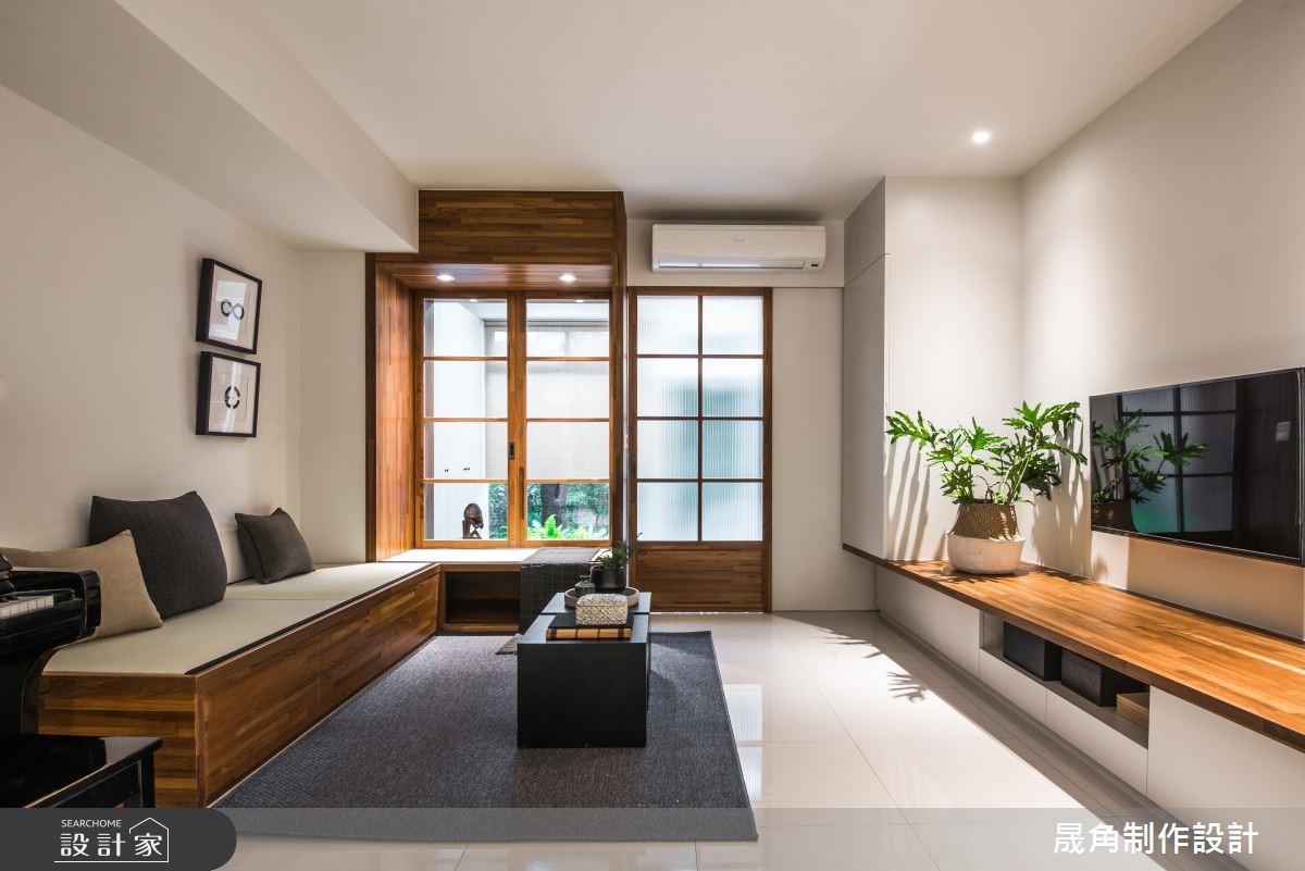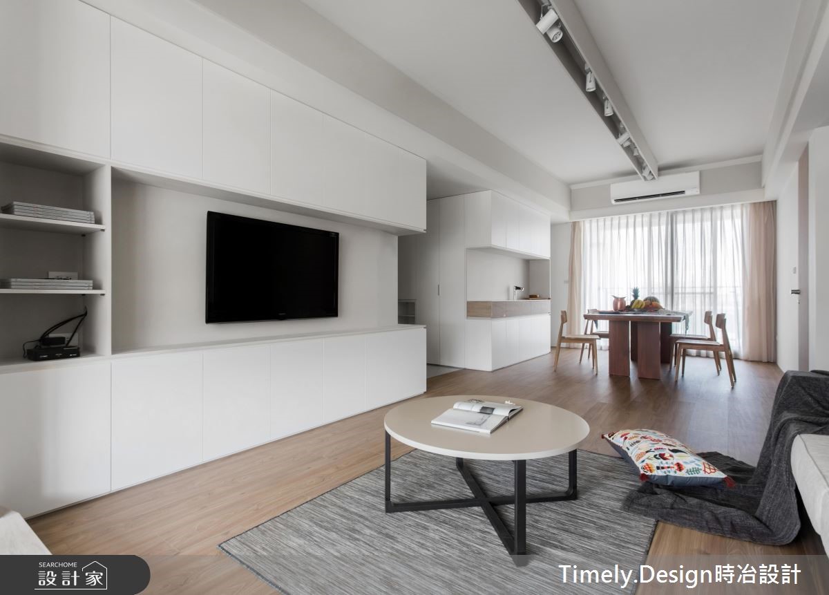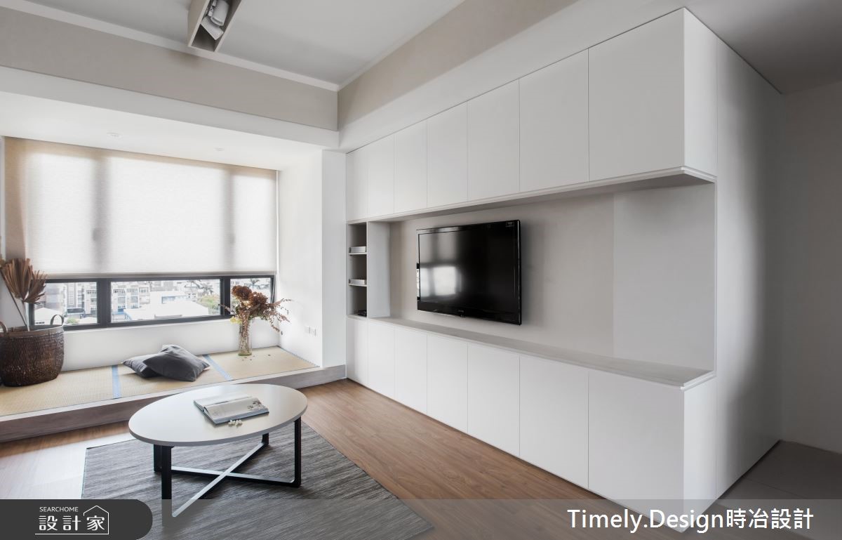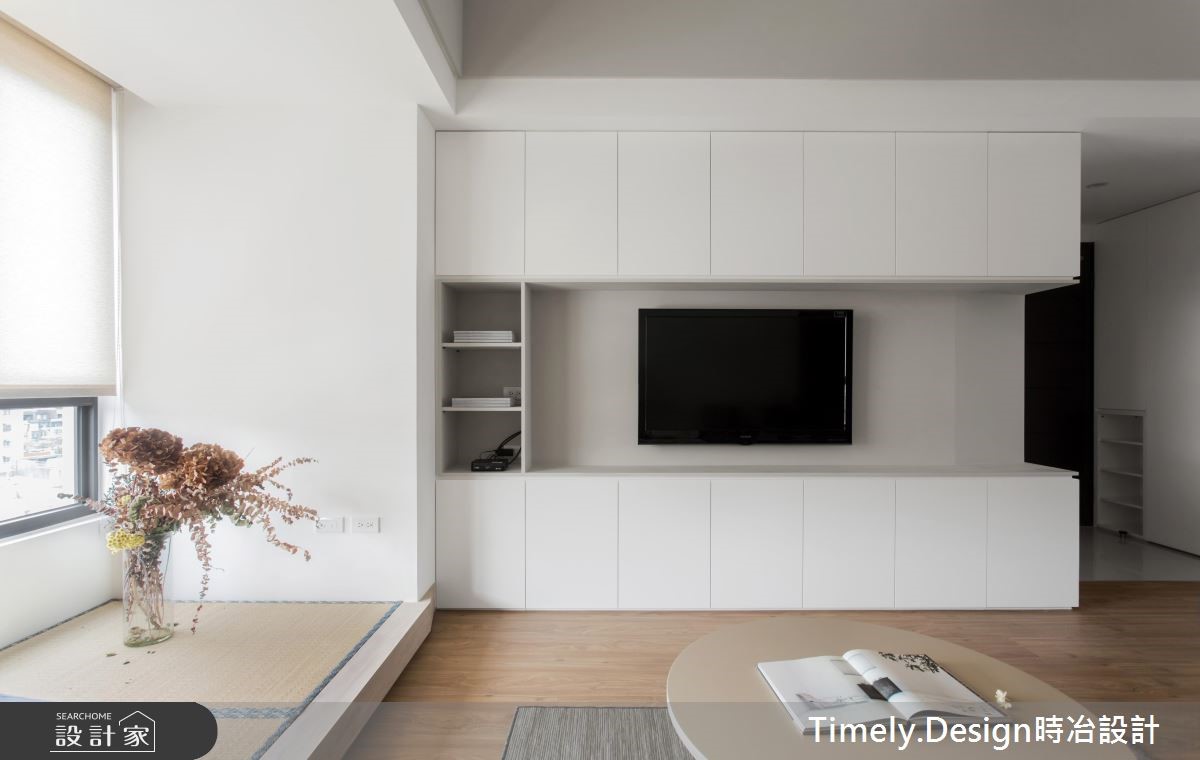 退休夫妻购置了89平方米的新屋,全面展开退休生活,设计师替屋主思考的不仅是充裕的收纳机能,更以无障碍设计为规划原则,放大空间动线,打造宛如日系住宅般的质感生活。【清亮色调,打造时尚退休宅】设计师以三大方向着手,分别为收纳、无障碍空间及佛堂设计。由于夫妻俩从旧家搬迁大量物品,需要充裕的收纳机能,且无障碍设计也需预留足够动线,因此设计师将柜体安排在空间外围,并采用活动式家具,为公共领域与走道保留充裕的动线。针对佛堂设计,由于空间有限,设计师取消传统独立佛堂的做法,将礼佛区设置在沿窗处,并采用垫高榻榻米,兼具休憩机能。风格方面,因为夫妻喜爱日式风格,设计师便在简约风格揉合日系元素,并采用纯白色调与轻浅的木色,让整体空间不显老气。