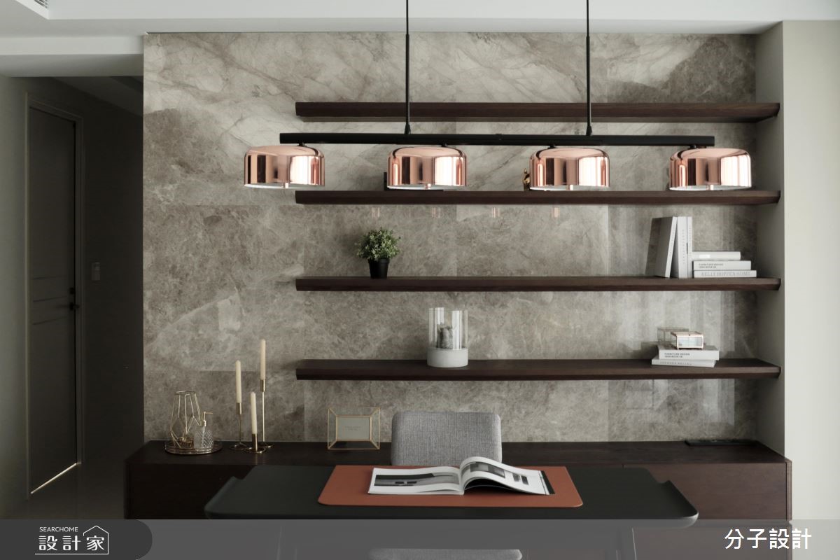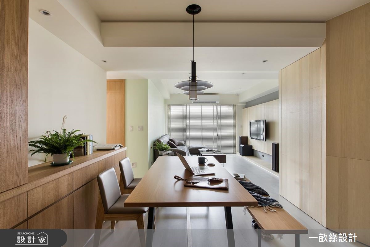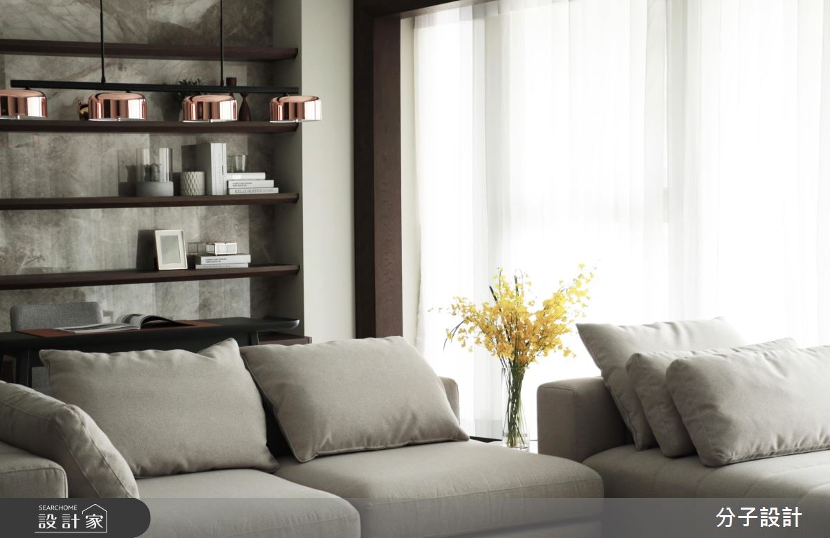屋主爱上这个拥有长落地窗的屋子,找来分子设计合作,将采光完美的屋案变成属于一家3口的日光好宅!【茶玻拉门,通透感与实用兼具】室内坐拥明亮采光、格局方正的优良条件,设计师选择以开放设计串连公领域空间,拆除封闭的独立厨房墙面,以茶玻拉门打造富有通透感却不会使油烟飘散的双赢设计。而针对大面积的落地窗,则采用拱型设计达到延伸的目的,也与屋主对视野开阔的需求相当吻合。【移动式家具,灵活动线不挡光线】针对风格呈现,为了让重点放在采光,以简洁设计为主,面材多采用纯白色系为基调,以烤漆搭配亮面建材,打造优雅时尚的利落现代风格,并采用低台度搭配移动式家具,让整体动线更具灵活度,更不会阻挡光线的进程。