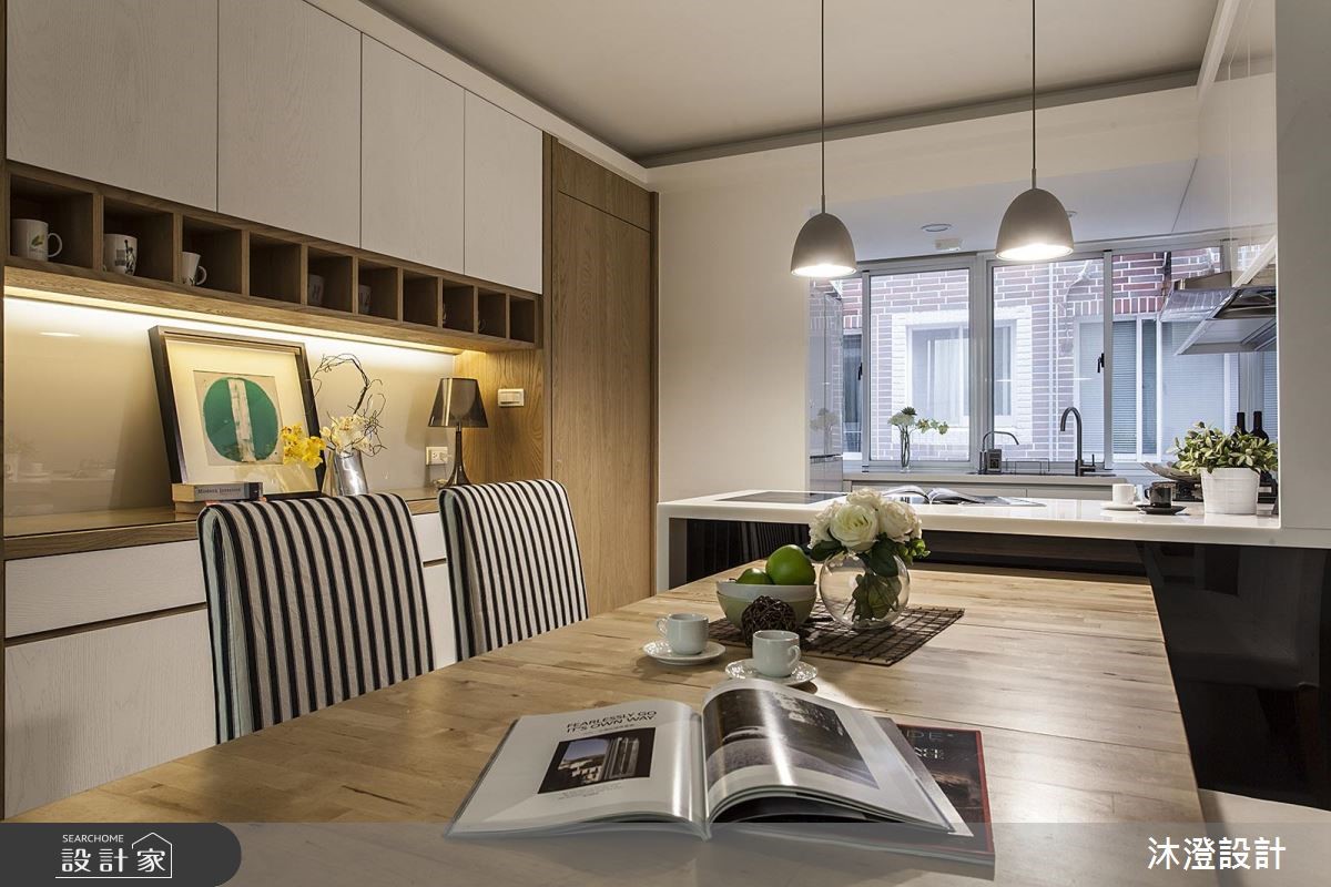 在这户近20年的老宅里,埋藏着屋主对家的浓厚情感,因此透过以人为本的北欧风格描绘整体空间,并移植部分旧家屋的风格与家具,结合崭新的设计工法,重启心底深处对家的无限爱意。【原木质感带来温暖北欧氛围】干净、简约的色系铺陈天际与地坪,一道蓝色墙面攀爬而上,仿佛蓝天白云的惬意景致;挑高的空间里,随着大面采光引进充沛暖阳,明亮视线更添宽敞气势。局部以木纹增添暖度,与跳色家饰的灵活配搭,创造一幅幅令人心动的日常美学。客厅以白色作为空间基底,蓝色系的沙发背墙伫立,创造视觉焦点。电视墙以层次感的立面木纹铺陈,展现流动感的视觉变化。开放的公共空间,藉由原木质感的材质打造餐桌椅,温馨宜人,呼应自然无华的生活态度。