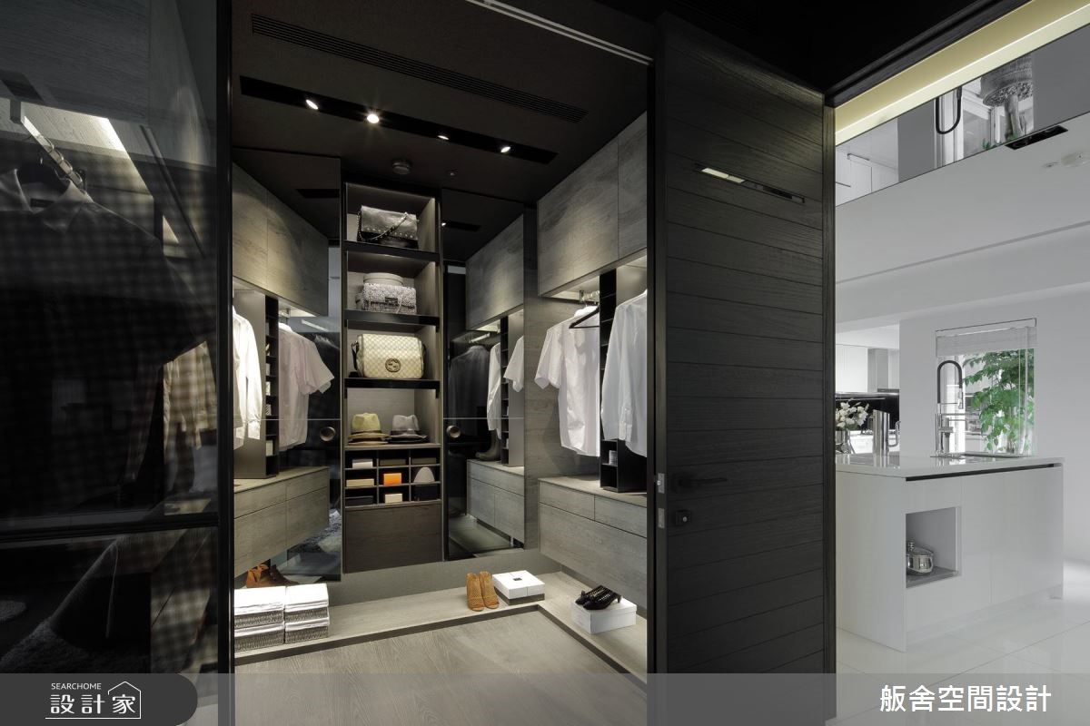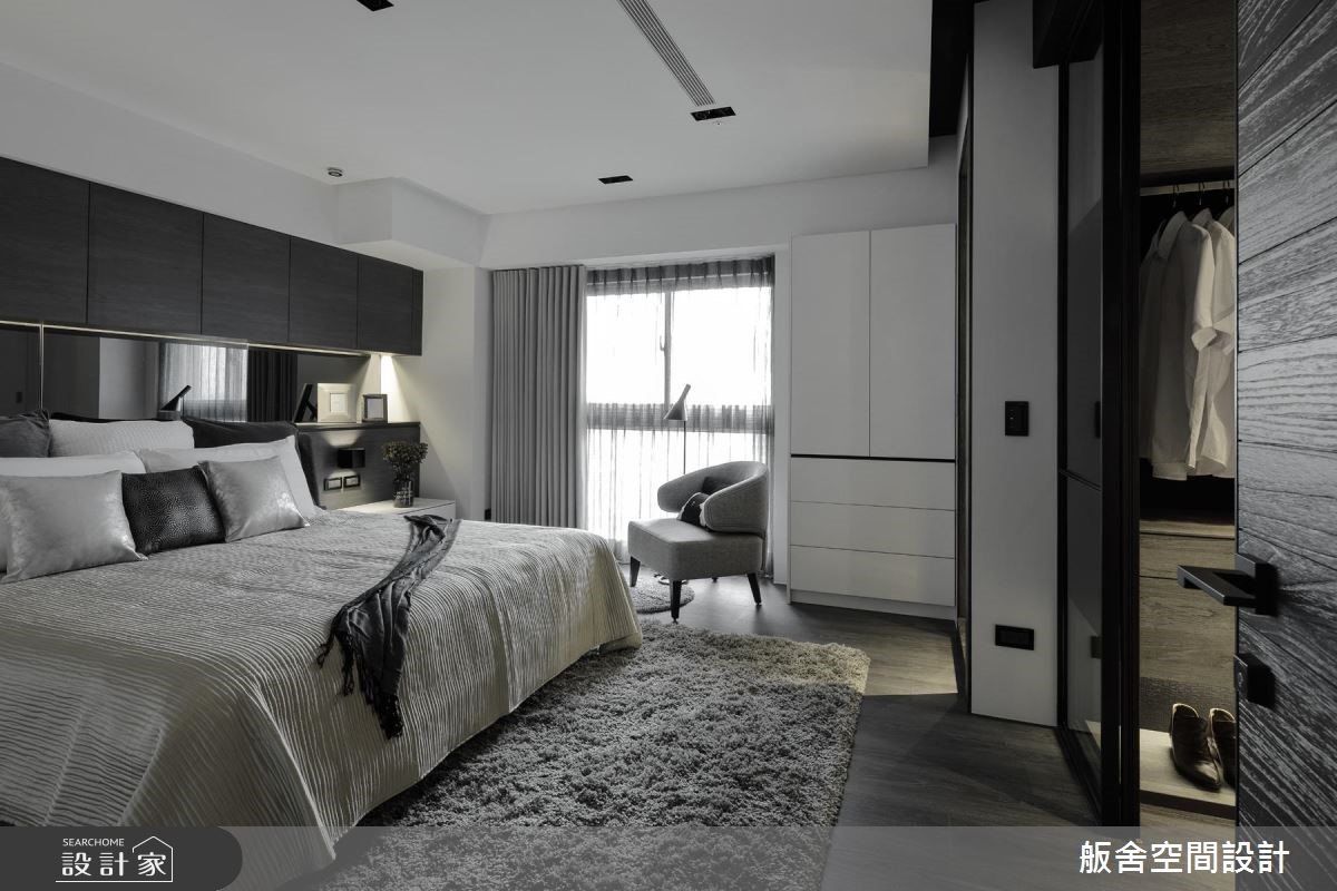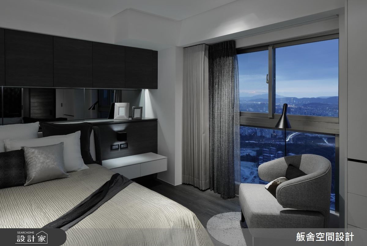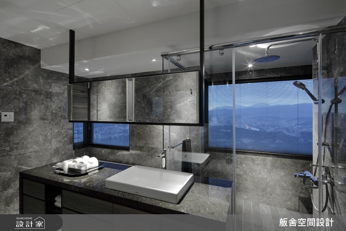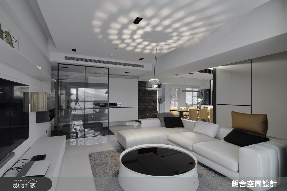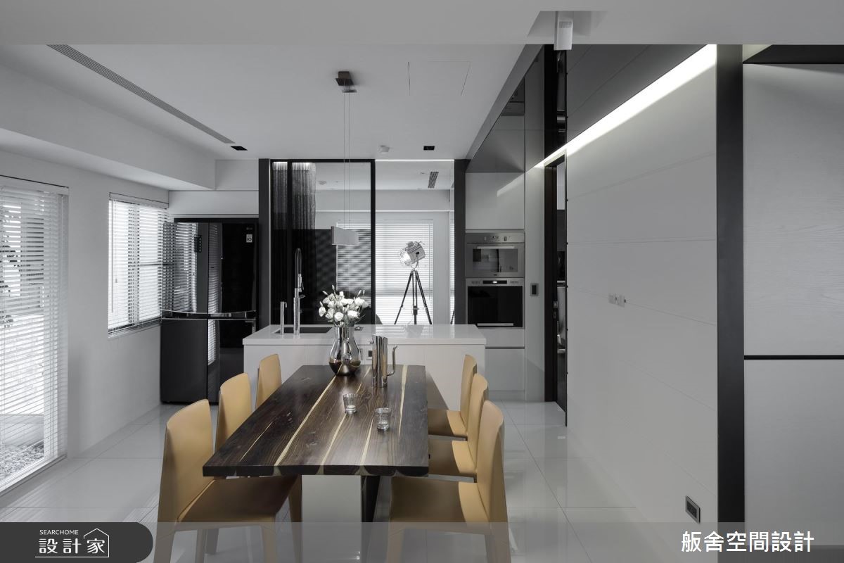 富有品味的年轻夫妻购置位于近郊山区的99平米居宅,屋案有着良好的基地条件,包含大面积开窗及通透视野,却因30年屋龄,有漏水潮湿与格局零碎问题,着请舨舍设计化解老屋问题,打造时尚现代宅邸。 【开放式与纯白色,塑造扩容效果】由于男屋主是3C产品迷、女主人酷爱料理,因此设计师不只重整防水基础工程与格局,将3室变为2室,更以时尚的金属感为主轴,并配置带有完整专业机能的中岛厨房,满足屋主夫妻的想望。玄关以金属漆赋予大门时尚感,佐以穿透灰玻与板岩,打造耐脏的落尘区。公领域以纯白色调为主轴,特别在客厅背墙做出凹凸沟缝设计,制造层次感,并兼顾隐藏收纳柜机能,与电视墙的铁件形成轻重色对比。【利用建材,修饰老屋梁柱问题】由于老屋有梁柱过多的问题,设计师利用包覆金属砖修饰,而中间大梁则反其道而行,采色调凸显手法虚化天花。中岛厨房采石木桌板与结晶钢烤,搭配花岗岩水槽,耐用又富有品味。以仿大理石砖材披覆内建无敌景色的浴室,并以坐式设计融入日式澡堂风格。