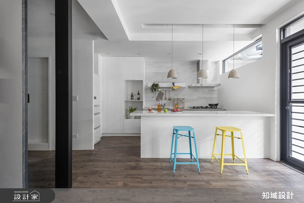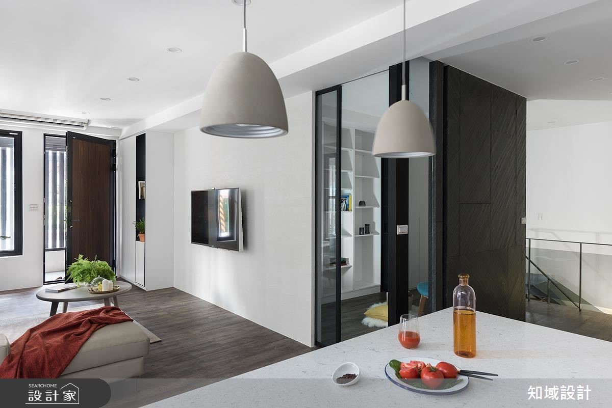 屋主将长期出租的132平方米老旧工厂收回,做为新婚宅用途,原先晦暗、荒芜的老屋在设计师的专业重整下,变身夫妻俩与6毛孩的明亮居所。【纯白基底,打造敞朗明亮空间】设计师将一楼空间规划为开放式公共领域,并以纯白色调为主轴,利用电视主墙的珪藻土纹路与厨房壁面的大理石纹砖,营造视觉层次与特色;而电视墙后方的多功能室除了提供阅读视听功能,更可作为客房,提高使用的机动性。地下室为卧房、更衣间与宠物房等私领域所在,由于无任何开窗,因此设计师采用全热交换机搭配高明度采光,克服零采光与潮湿发霉的问题;并在楼梯设计上将开口加大,且增设宠物坡道,避免上下楼造成的膝盖负担。