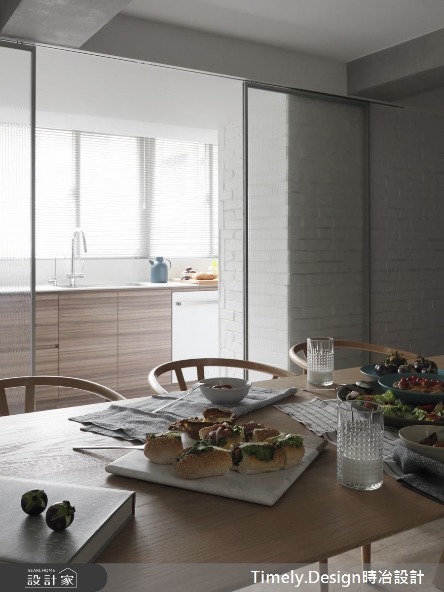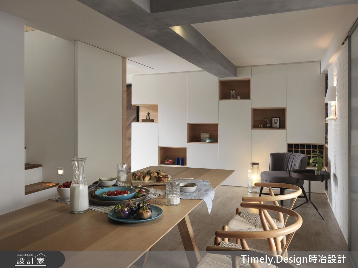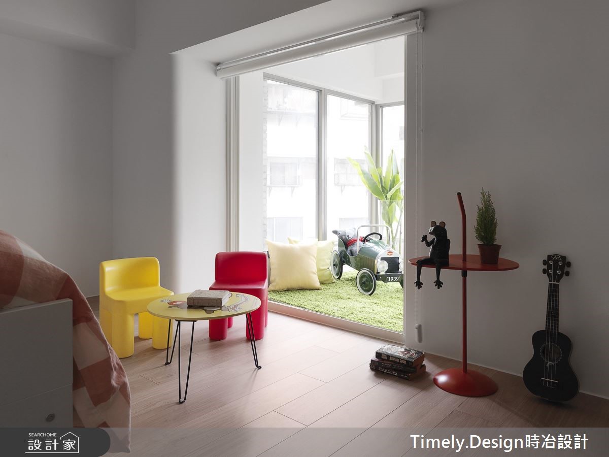 132平老屋有着大面积开窗与挑高优势,但却有格局零碎、机能分散、外墙渗漏、壁癌与厨房无光等众多问题,因此设计师运用专业翻转屋况劣势,给予屋主夫妻与2个孩子独立私领域与宽敞的公共空间。【机能整合,打造高互动性居家】由于建物管道间位于房屋中央,造成动线与格局被拆解得相当零碎,因此设计师利用环状布局,将收纳、卫浴与楼梯集中,与管道间结合,并以玄关为起点,将客厅、餐厨空间设置于外围区块,同时达到相近空间的机能整合,将开窗面皆保留给高互动度的区域。因应一家4口不同的年龄层,以及考虑到孩子年纪增长后的需求,为父母与孩子保留独立私领域,且为了不浪费空间,将柜体沿结构墙设置或取代隔断,并事先规划家具尺寸,达到开阔视野与空间配置。而针对色彩搭配,设计师以清爽的木元素搭配黑、白纯色,并利用植栽、摆件与单品点缀,创造缤纷童趣的玩乐世界,更将阳台打造为儿童房,让一家人享受阳光的洗礼。