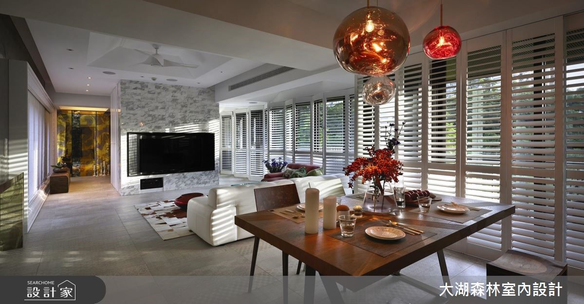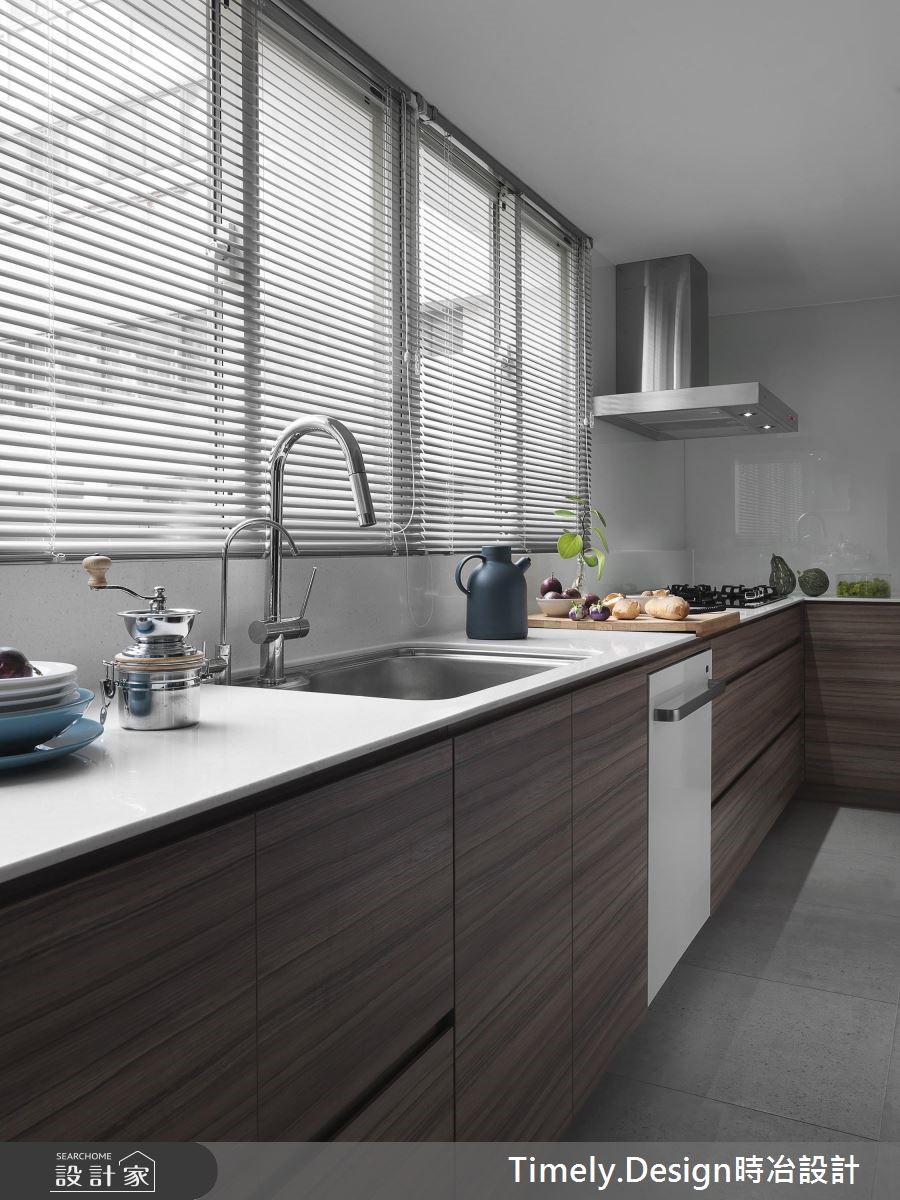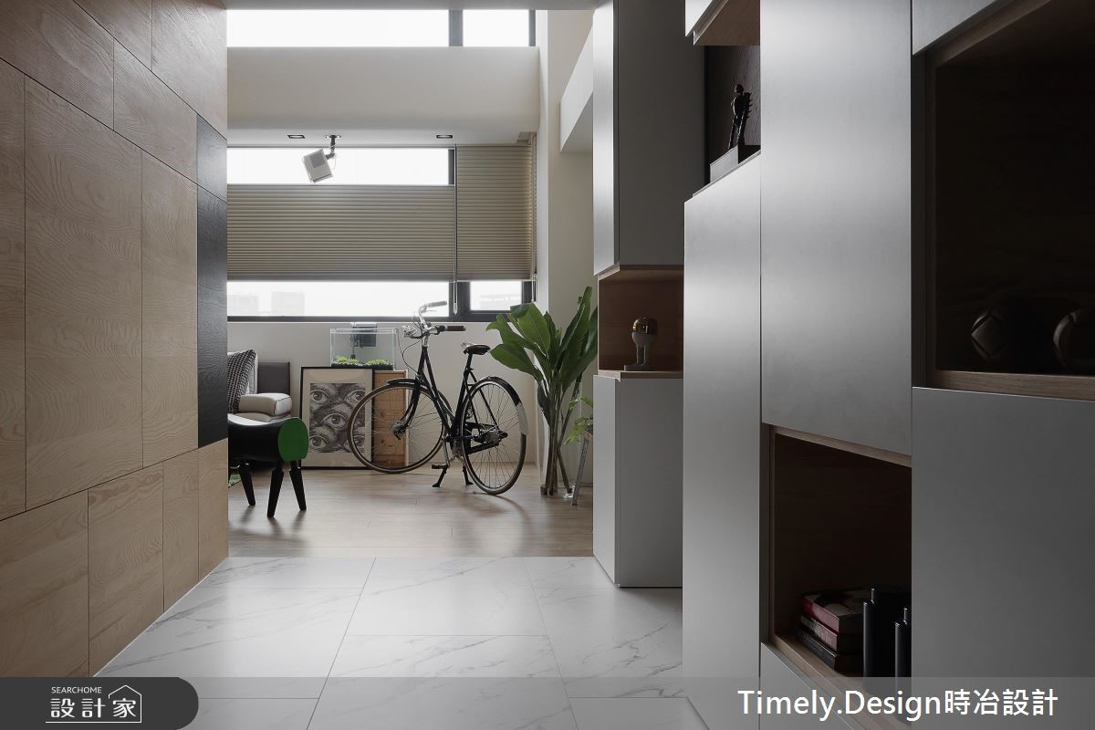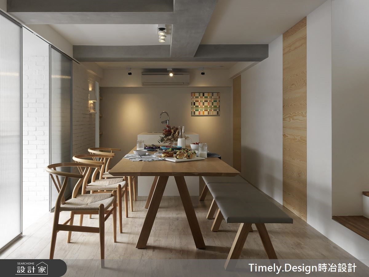 132平老屋有着大面积开窗与挑高优势,但却有格局零碎、机能分散、外墙渗漏、壁癌与厨房无光等众多问题,因此设计师运用专业翻转屋况劣势,给予屋主夫妻与2个孩子独立私领域与宽敞的公共空间。【机能整合,打造高互动性居家】由于建物管道间位于房屋中央,造成动线与格局被拆解得相当零碎,因此设计师利用环状布局,将收纳、卫浴与楼梯集中,与管道间结合,并以玄关为起点,将客厅、餐厨空间设置于外围区块,同时达到相近空间的机能整合,将开窗面皆保留给高互动度的区域。因应一家4口不同的年龄层,以及考虑到孩子年纪增长后的需求,为父母与孩子保留独立私领域,且为了不浪费空间,将柜体沿结构墙设置或取代隔断,并事先规划家具尺寸,达到开阔视野与空间配置。而针对色彩搭配,设计师以清爽的木元素搭配黑、白纯色,并利用植栽、摆件与单品点缀,创造缤纷童趣的玩乐世界,更将阳台打造为儿童房,让一家人享受阳光的洗礼。