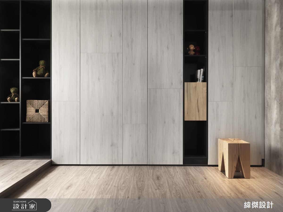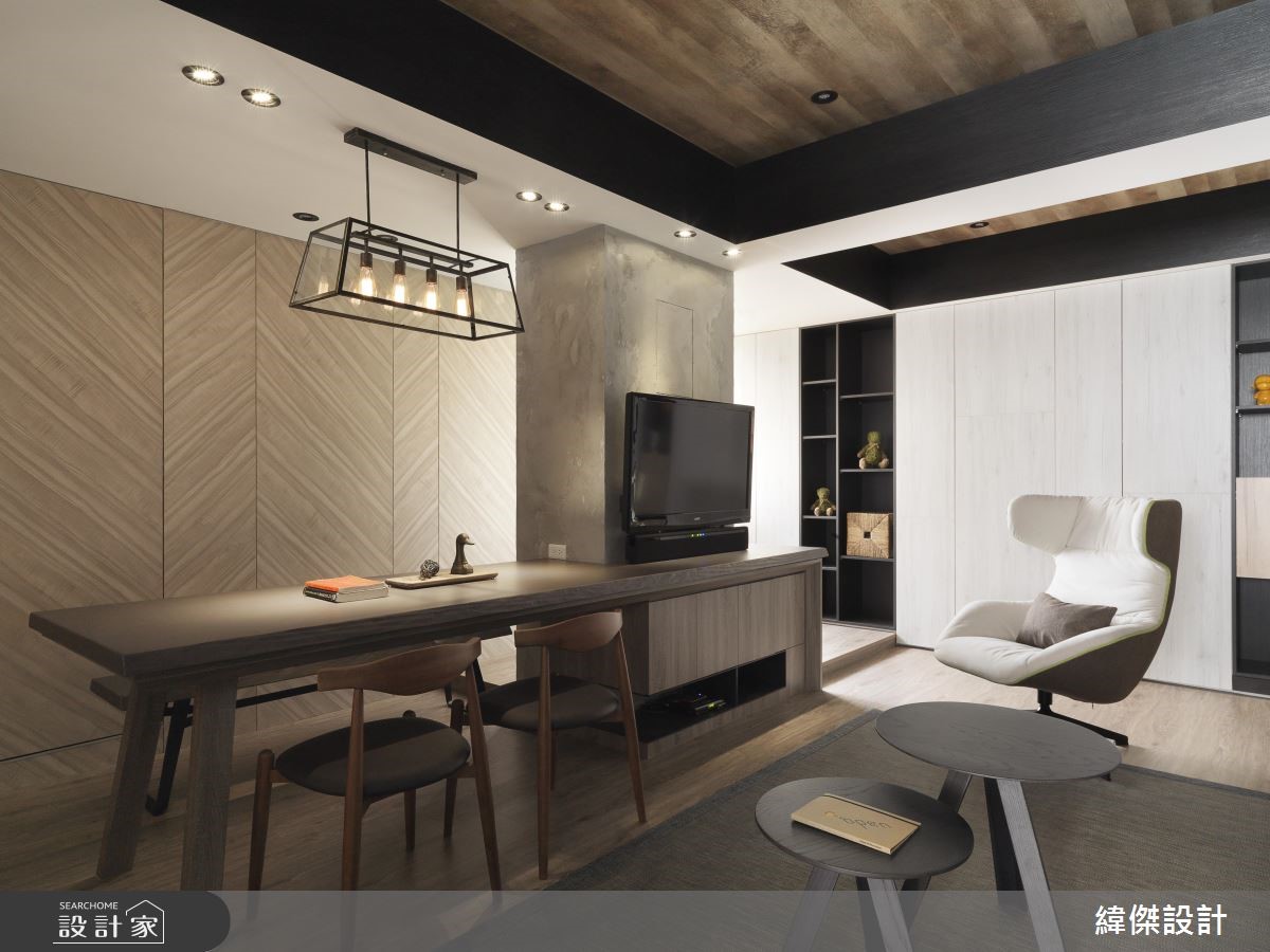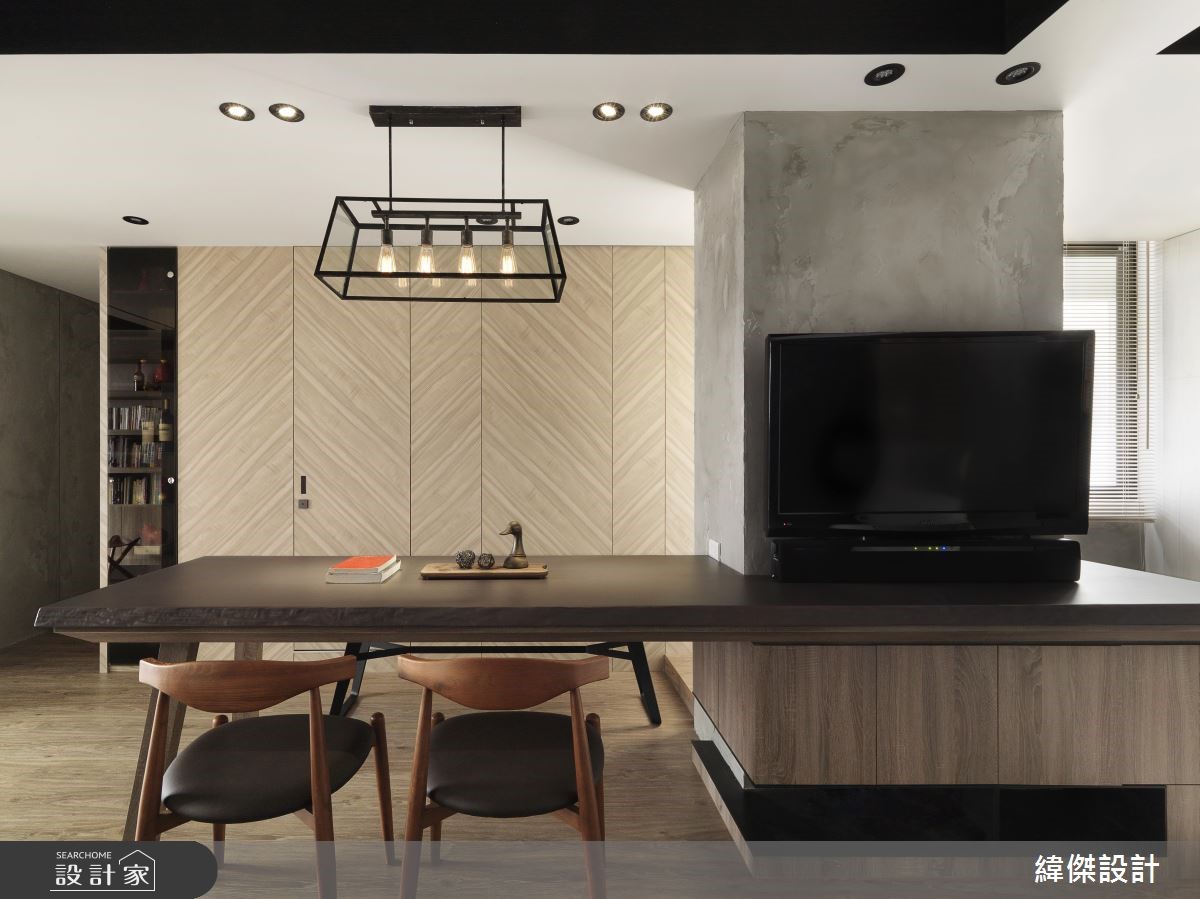79平方米老屋中,设计师透过独特的电视墙、吧台规划手法,创造空间的互动联系,并善用通透规划与采光流动,打造出小空间大视野。而即便在小户型,丰富的收纳机能也丝毫不遑多让。【引入和煦木色,造悠闲氛围】居家透过天花板的框线、高低差区分空间,缔造层次有序的设计。并引入温煦木皮奠定暖和主调,再穿插冷冽的深色,以及多种建材衍生的独特质纹,打造休闲自适的视野。同时利用突出的结构柱,将其转化为特色,巧妙结合电视屏幕,瓦解一般电视墙的制式印象,并连结吧台、收纳柜体等,模糊客厅与餐厅的界线。且搭配周边书柜的配置,让餐桌不仅仅提供用餐,也兼具书桌机能。而公私领域的柜体皆呈现出清简俐落的风格,运用浅色调的着墨,并简化多余的线条干扰及复杂的把手设计,使表面尽可能保留朴实表现,创造出每一道大方且俐落的柜面风貌。