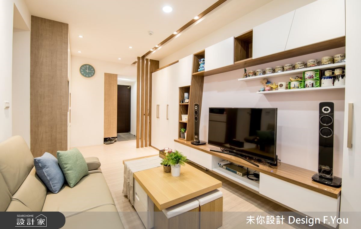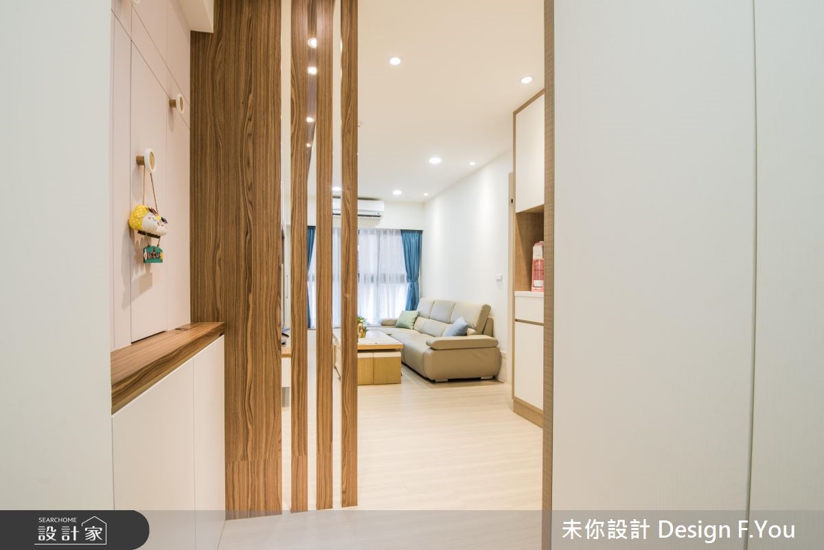 仅有59平方米的居宅,却充满着强大的收纳机能,设计师简化繁复设计,在浅色元素与格栅线条的妆点之下,型构无压、舒适的生活氛围,快跟着小编一起来看看吧!【利落线条,打造美型收纳设计】玄关区,于墙面安置柜体挹注收纳机能,并兼具装饰柜的美化效果,地坪则藉由材质差异与高度落差,区分出室内及落尘区域,同时搭配格栅的配置,让廊道段落更显层次,表现出入门场景的深邃感。步入公共空间内,则可见到电视墙结合收纳展示柜的规划,给予活泼利落的线条刻划,缔造美型兼具实用收纳的墙面风貌,且善用窗边空间,加以L型沙发的陈列,网罗更多的坐席位置,而桌几底下亦暗藏置物空间,替小小的厅区拓充了收纳潜力。