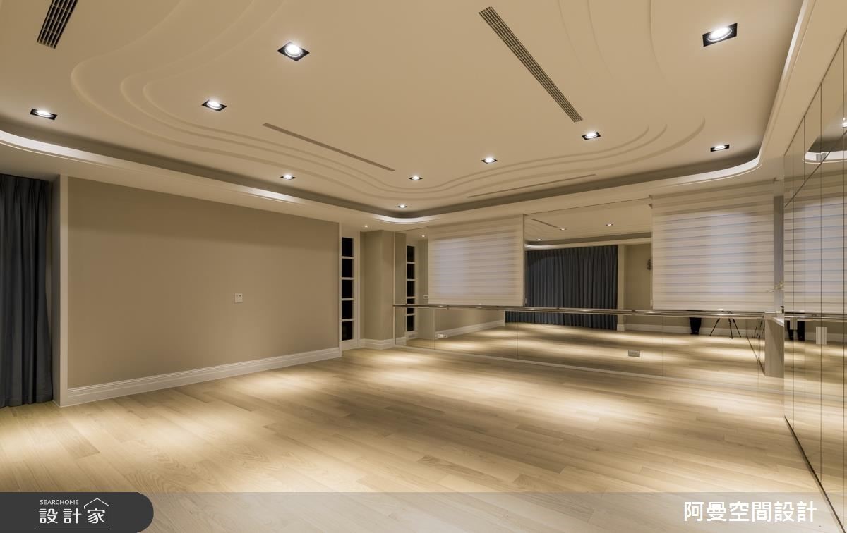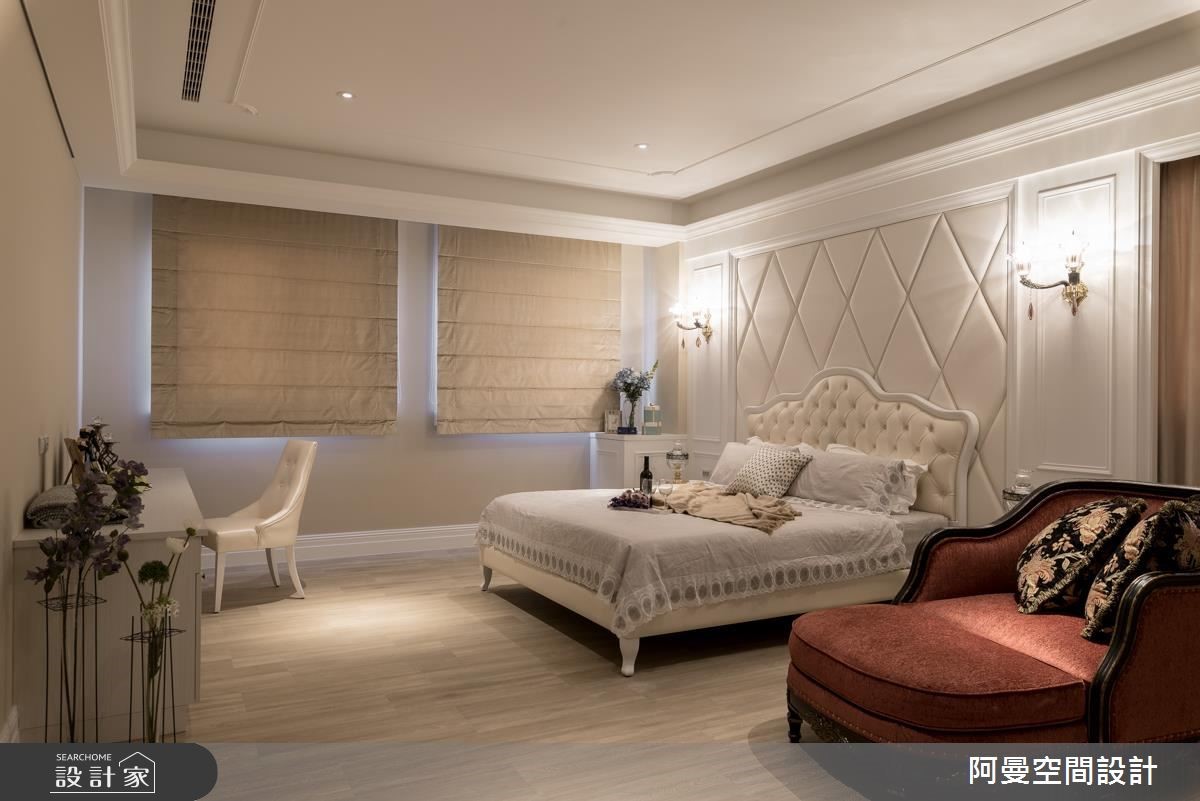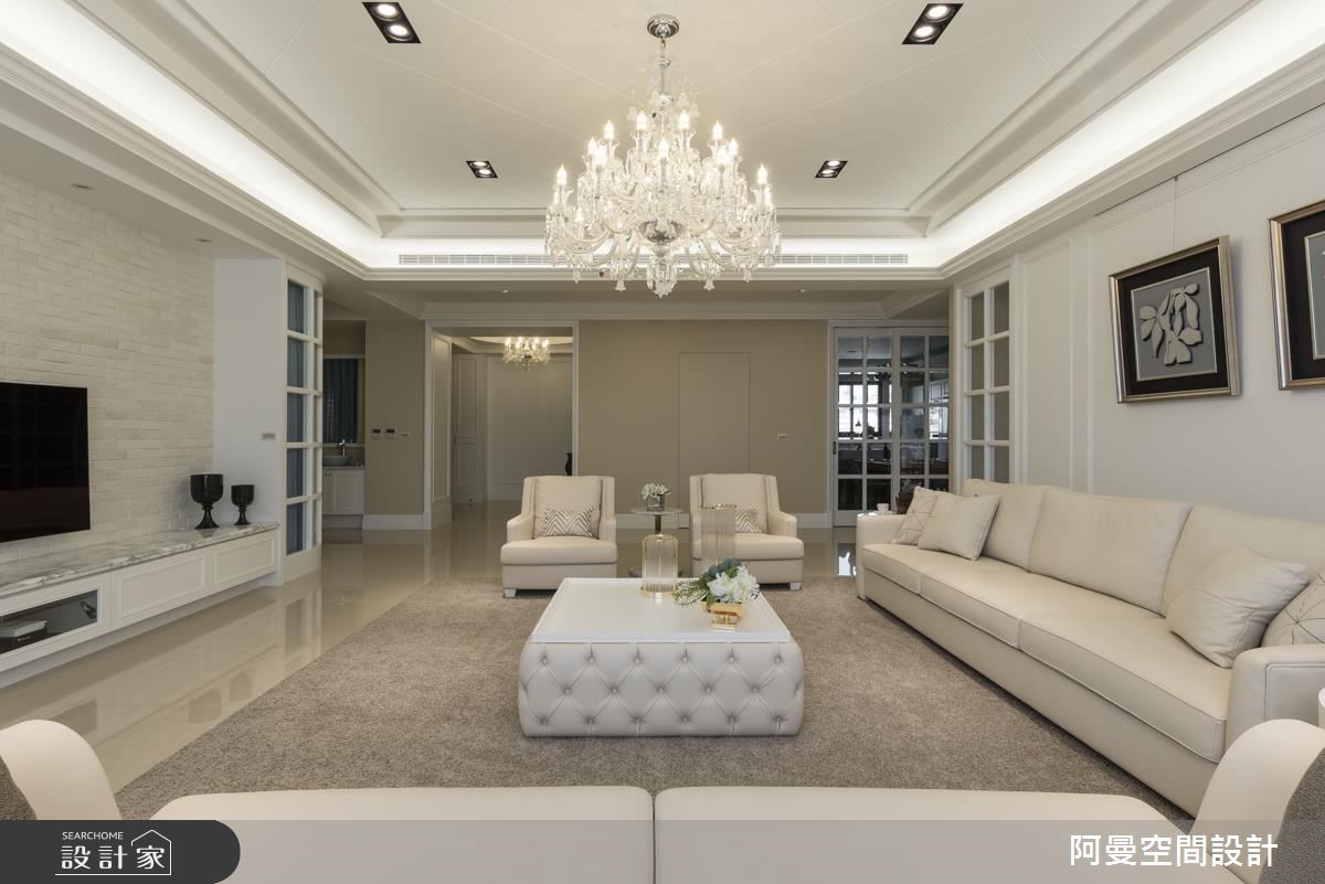 347平方米的自地自建大宅,设计师延揽居宅先天的良好采光条件,并于室内加入白色烤漆线板、方格窗及柔和的藤色水泥漆等,营造出经典的美式乡村风韵,让居宅充满着明亮雅致的气息。【善用灯饰、天花,营造美式质感】玄关区利用烤漆壁板、水晶灯及圆弧天花营造美式乡村的细致感,搭配深蓝色的玄关桌,凝聚入门口的视觉焦点。来到客厅,则可见菱格天花的细致设计,且让电视墙采以文化石搭配石材台面、两侧结合玻璃橱窗,创造大器与机能性。餐厨领域则备齐了一切实用收纳机能,呈现通透而方正的格局,塑造流畅的使用情境。主卧加入了更衣室,运用白色烤漆、线板、菱格纹裱皮革搭配水晶壁灯,彰显女性化的纤细表情。