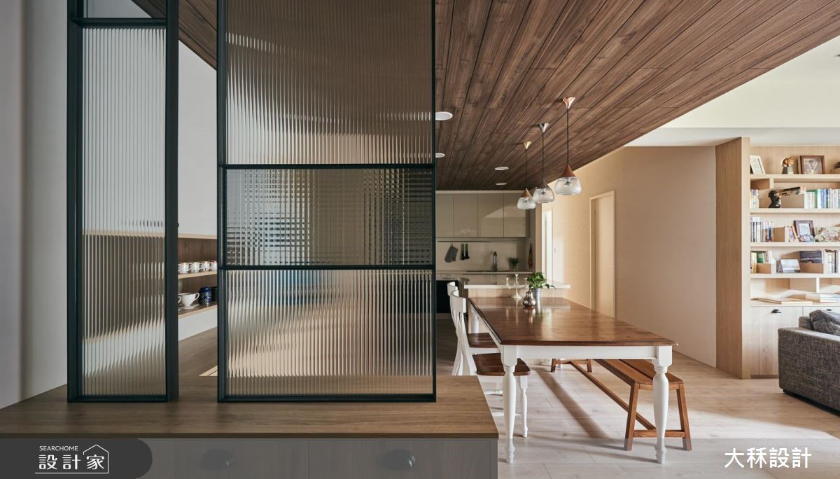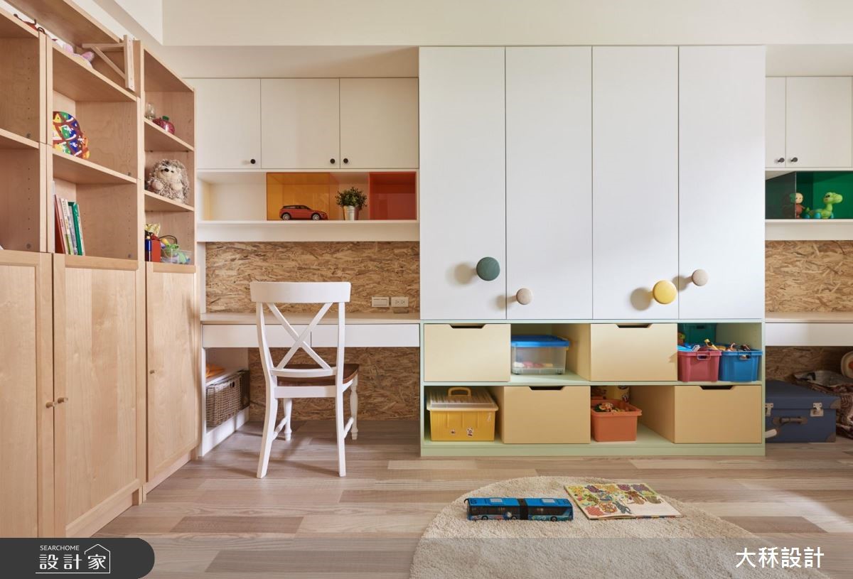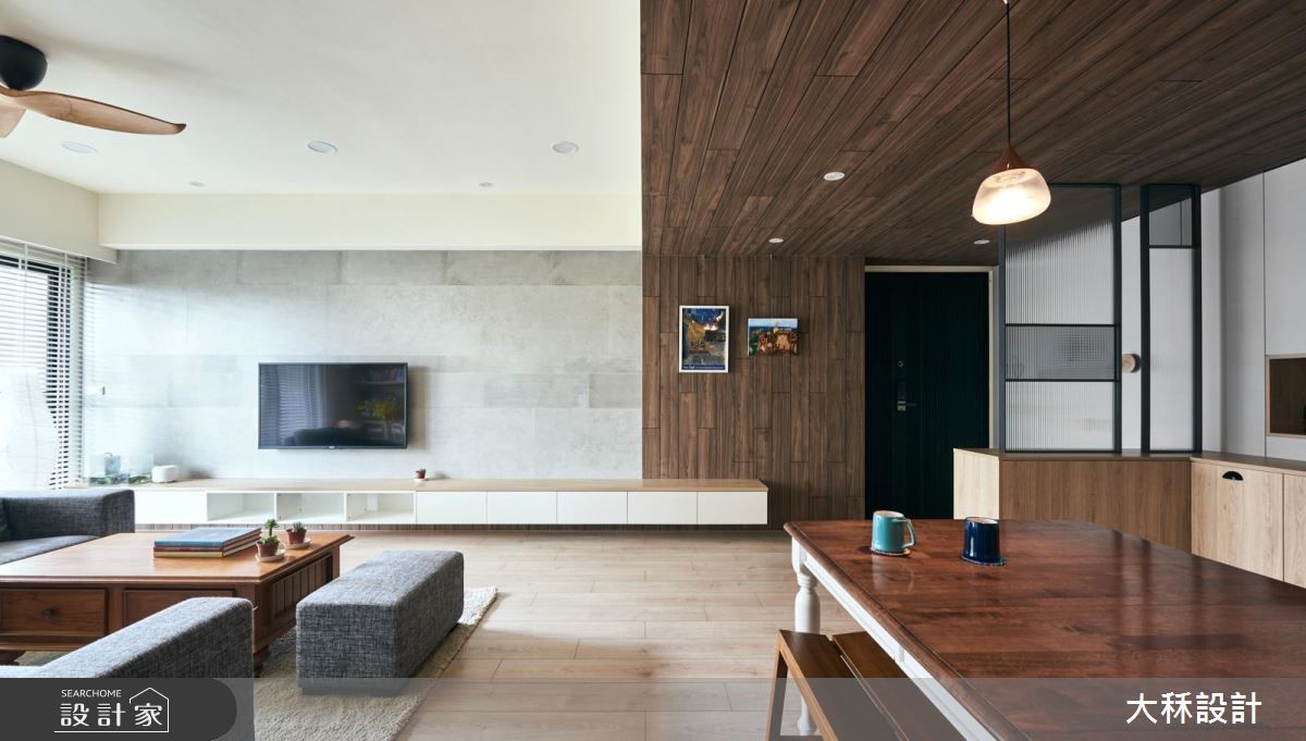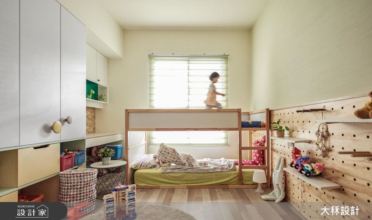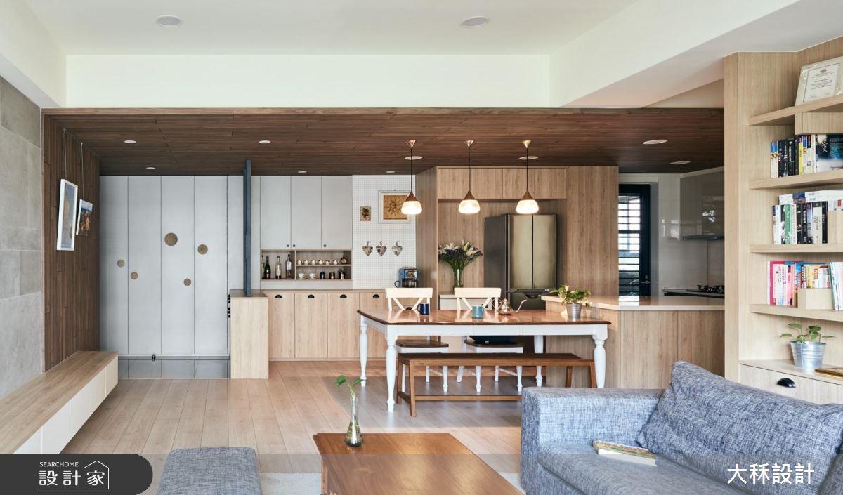 126平方米的居宅,设计师拆除既有的厨房隔断,将客厅、餐厅、厨房融合成一个大空间,并以清爽的美式乡村风作为风格导向,打造出集收纳、游戏意的美型实用住宅。【开方式空间,让家人情感更凝聚】开放式的公共区域大量使用原木色与灰色调,搭衬百叶窗所筛落的日光,交织出清柔淡雅的空间色彩。而一旁广阔的用餐领域,则让餐桌、吧台、厨房等一体成型,提供家人共聚交谊的地方,勾勒出充满情感意义的生活画面。在儿童房的规划上,设计师利用洞洞板及木作,打造出一面让孩子自由发挥的创意收纳墙,而柜体的规划更以玩具收纳为考虑,运用开放展示与抽屉的相互搭配,并点缀彩色把手,开启柜体的趣味创意风貌!