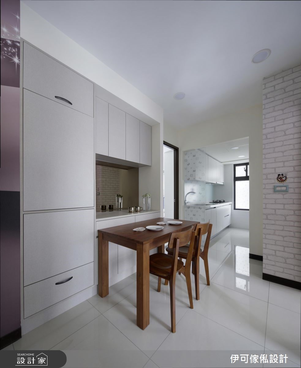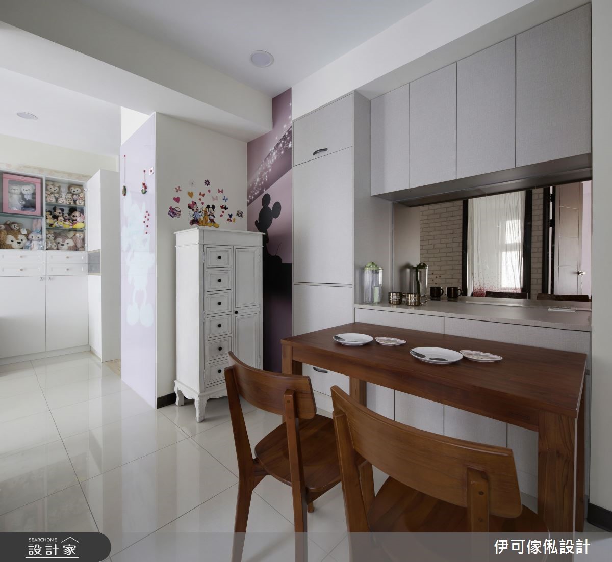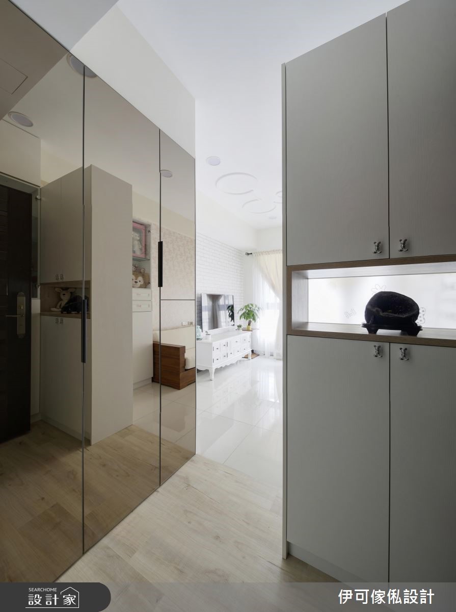 53平方米的新婚宅,设计师除了拓展小空间,发挥收纳机能外,更考虑到女主人喜欢童趣风格,于是让收藏品与元素化为风格一部分,同时挹注顺畅动线,预留未来孩子成长空间,完成夫妻的梦想住宅。【藉由镜面扩容入口的空间感】玄关处,设计师规划了整面镜面柜,不仅提供穿衣镜机能,更藉由材质反射、扩容入口的空间感;公领域则保有充裕采光与对通的气流,并依循生活需求,创造组合家具的完善机能与应用型式,再加以款式多样的进口墙纸铺叙墙面,达成美型简约的风格营造。【童趣墙贴,打造活泼的居室环境】碍于空间有限,设计师将餐厅与厨房整合,以小面通透隔屏做出简单界定,并开启合宜的动线擘划;居室内,则呈现浓浓的个人风格,运用童趣图案的墙贴,让天花、柜体到墙面皆充满一致的主题性,道出生动的起居气氛!
