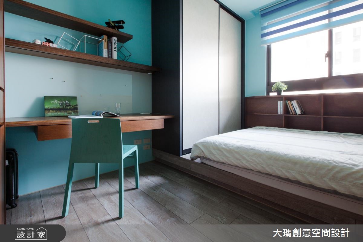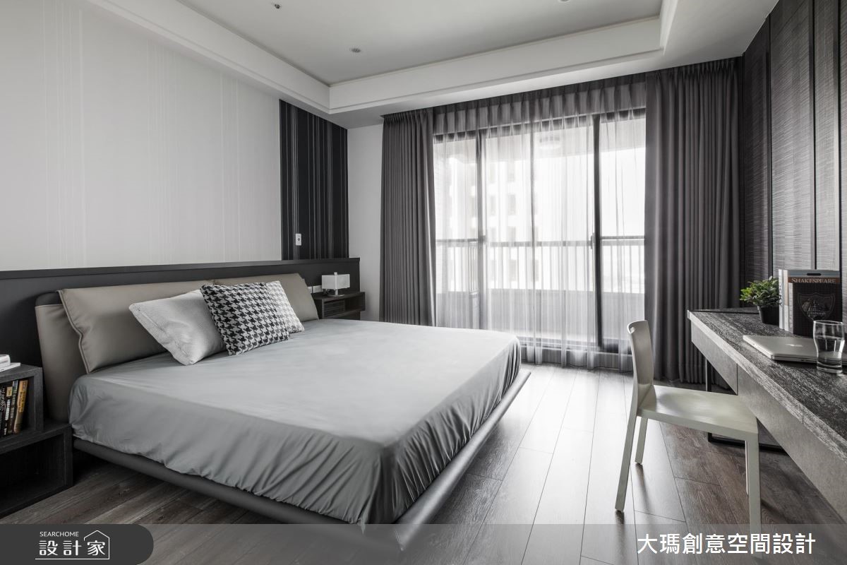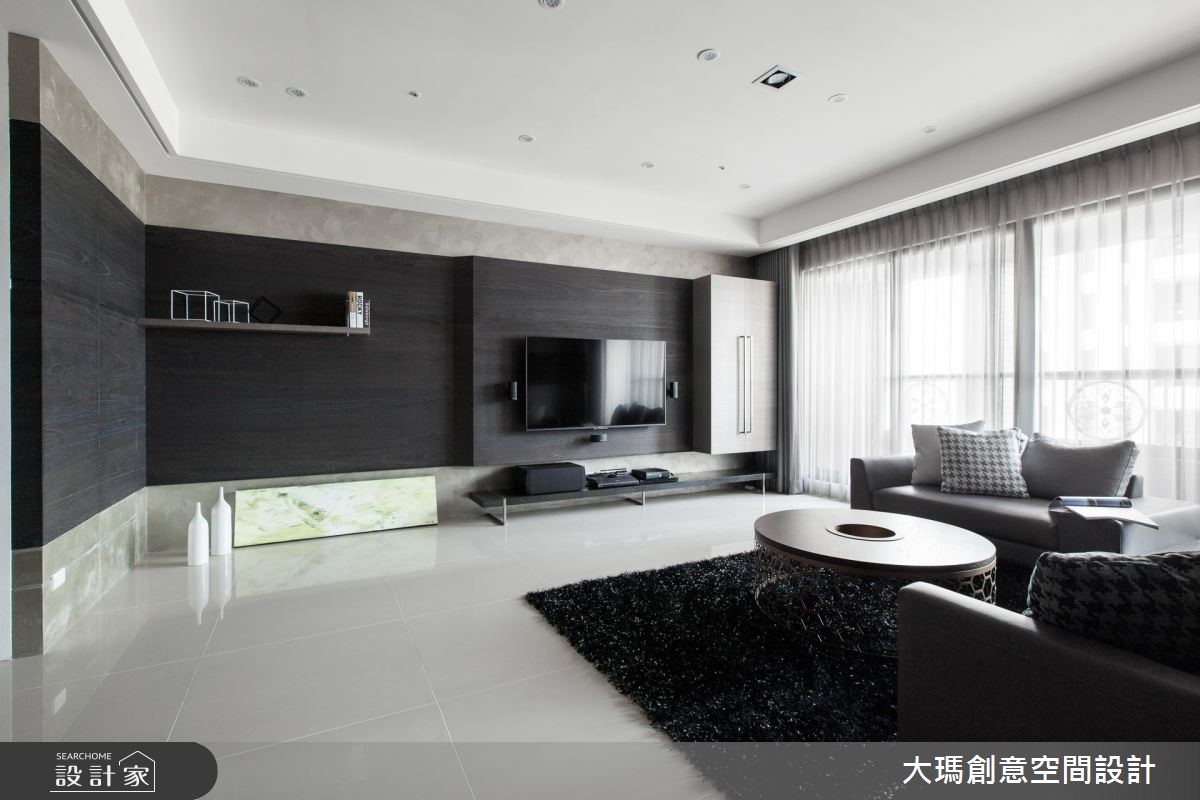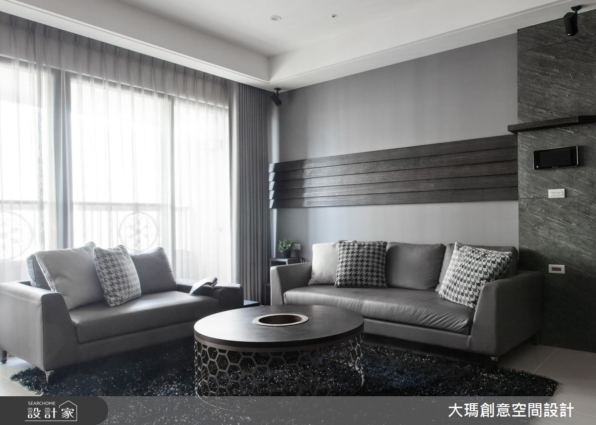 119平方米的新成屋必须同时融合三代的使用需求及品味,因此设计师利用黑、灰、褐色等深色调交织,适当的安排色彩比例,并利用多元建材打造层次感,呈现出沉稳却不显老气的家,更让一家四口同时拥有宽敞的欢聚时光与各自的私密天地。【善用色彩,营造质感生活空间】 入门处利用结合格栅的双面柜作为收纳与划分领域的角色,而公共区域则利用大量的钢刷木皮结合石材,以简洁利落的色彩搭配创造视觉层次。餐厅由延伸至天花的L型隔栅框设,并结合餐边柜,为屋主提供充裕的收纳空间,并特别定制专用酒架,让屋主得以展示搜藏。厨房以玻璃拉门打造具有通透感却不会使油烟溢散的烹饪空间,更拉伸了整体的视野。串连公私领域的廊道则以温润的木皮包覆,不只暖意十足,更中和公共区域的冷调感。主卧区利用明亮的纯白色彩,带入摩登品味;而一双儿女的私人天地则分别依据两人喜好及各自的需求,分别以壁板、壁纸与明亮的跳色展现在柜体或墙面,形成活泼的个人特色。