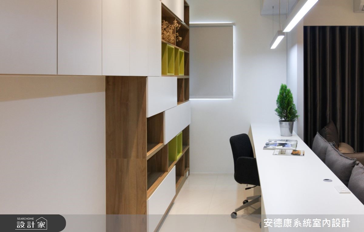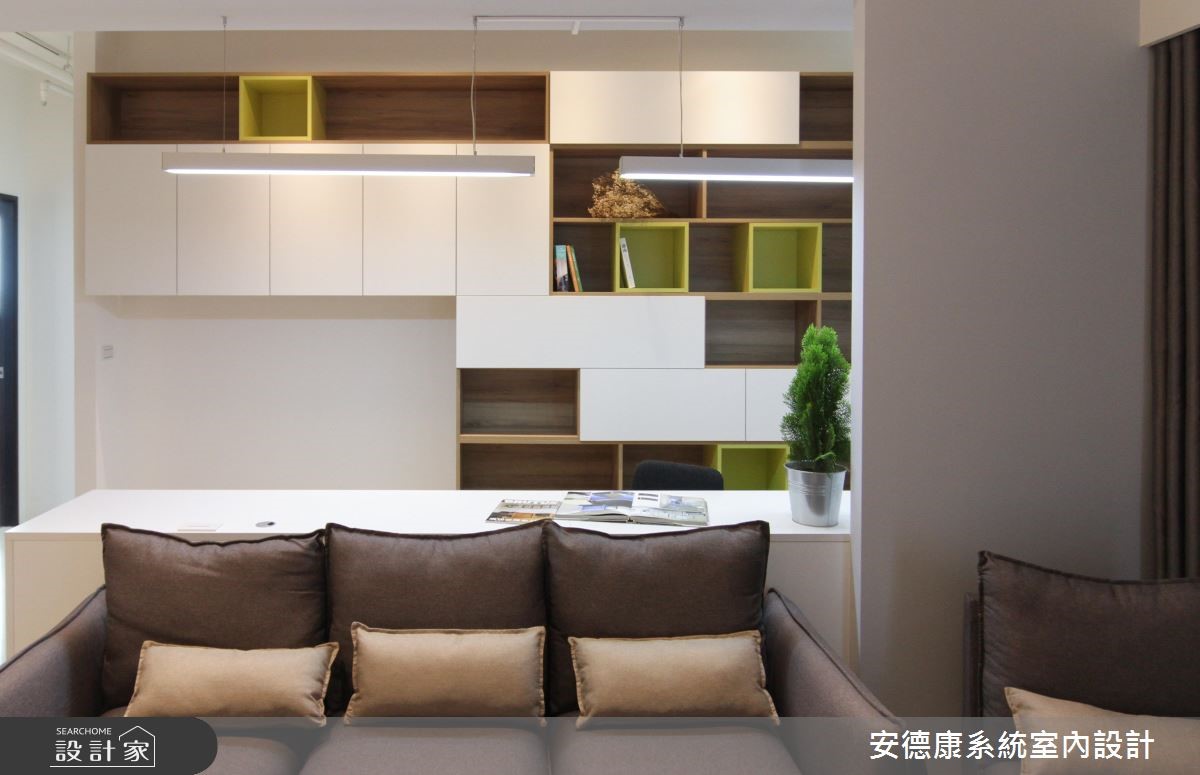 73平方米简约风住宅,设计师变更原先格局、缩减一房,重新赋予明亮放大的公领域视野,并让客厅、书房呈开放连结,增添空间的互动,缔造纾压又清新的居家氛围,快跟着小编一起来看看吧。 【书墙跳色,空间有活力】居家适当的留白设计,保留简洁概念,舍弃过于繁复的线条,使用全白素色的柜体营造轻盈的居家本质。并利用书墙做出跳色变化,木皮、白色、苹果绿展现色彩层次,加入植栽点缀、明亮采光,打造清新生动的生活质感。藉由开放式格局手法,破除书房与客厅之间的隔阂,以充满装饰性的书墙造型凝聚焦点,不仅提供收纳展示机能,亦成为整个空间的吸睛焦点。搭衬内敛的灯光设计,将居宅整体变得更为轻盈。