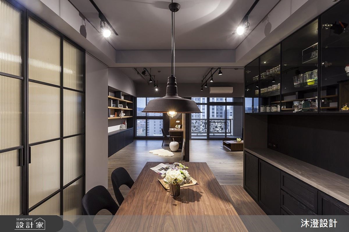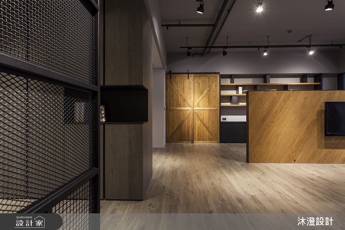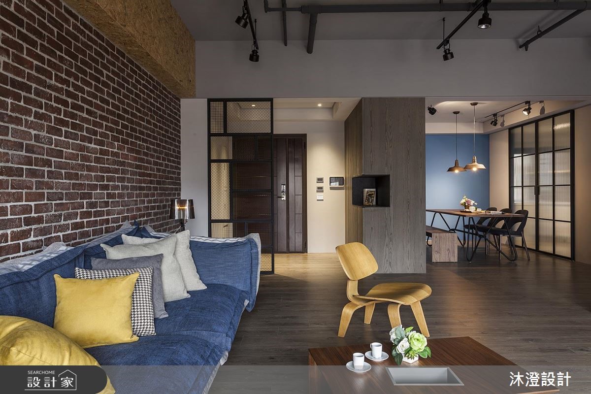 224平方米的单身大宅,设计师以工业风定调空间,营造出有如特色咖啡店般的氛围,并在红砖、铁件、木作材质与家具的陈列下,塑造风格别具的居家表情,快跟着小编一起来看看吧!【红砖墙为主景,带出浓厚工业风】进入空间,强烈的风格迎面而来,以网状铁件作为玄关隔屏,将界定机能结合金属的刚硬表现,演绎个性化的视觉风景。公共厅区内,以木地板铺陈全室,采用轻盈的浅灰色妆点墙面,并运用红砖墙作为空间主景,包覆整座沙发立面,创造复古工业感。电视矮墙兼作书房隔间,动线与光影流通,打造互动的生活场景。后方书柜更连结谷仓门造型,发挥Loft风的地道精神。餐厅在一整面蓝色墙面中凝聚沉稳静谧的氛围,一侧配置立体直纹玻璃门片,轻盈地将餐厨作出区划,维持视觉与光线的穿透。