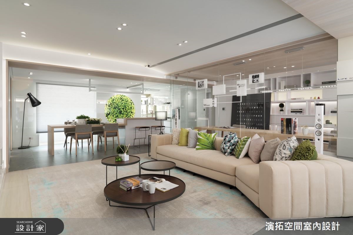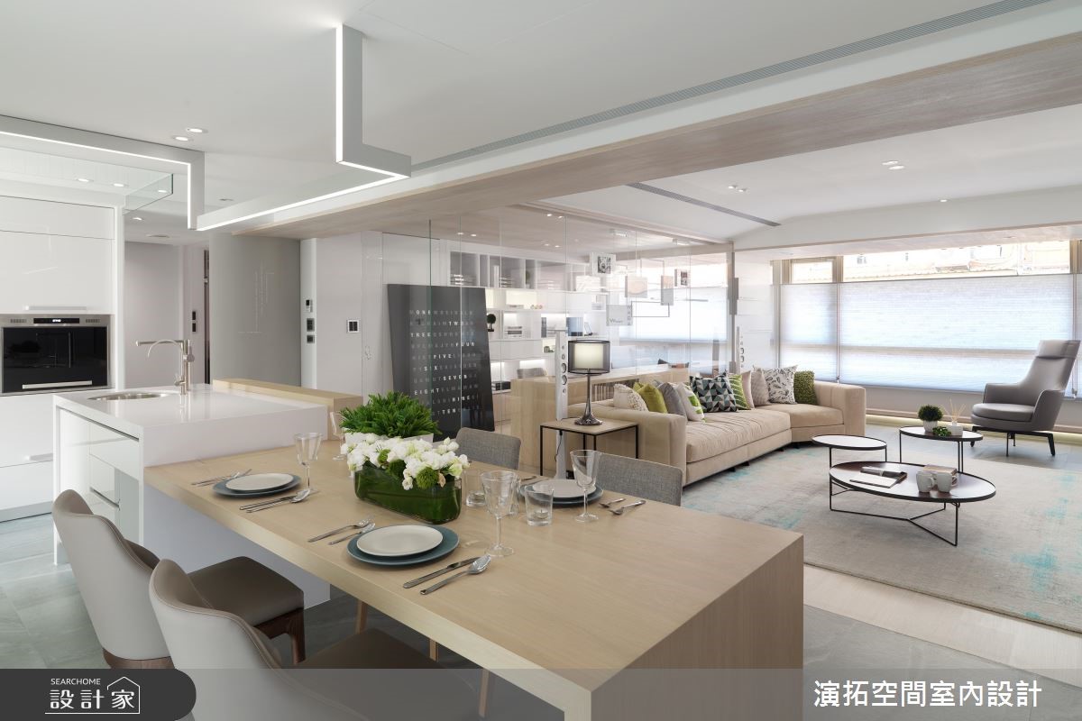 36年的老房子,原本屋况不但狭小,也十分阴暗,为了生活的舒适度,屋主夫妻决定进行装修改造,找设计师阶段时,还特别召开家庭会议,夫妻俩和儿子共同选出了他们理想中的演拓设计团队,为他们达成现代风新家的梦想!【打破格局界线,引注充足光源】改造后的房子,像是设计旅店般时尚又舒适,拥有清新又明亮的空间质感,让人十分惊艳。设计师打破空间的界线,透过格局的重整,让光线更能充沛的分布室内,也改善了通风条件,促进了空间的流通。【透明玻璃隔断,创造开阔感】客厅后方的书房运用透明玻璃隔断,去除了既有的格局封闭感,让视线可以穿透,整个空间就有扩容的效果,也因为全家人都喜欢看书,设计师将书桌延伸,全家人便有了可以共同阅读、活动的空间。【加设检测仪,兼顾居家安全】除了美观设计之外,开放式的厨房也加设烧水灯、漏水、一氧化碳检测仪,兼顾居家安全的考虑,另外全室也装设除湿系统,大幅度地提升空间的舒适度。