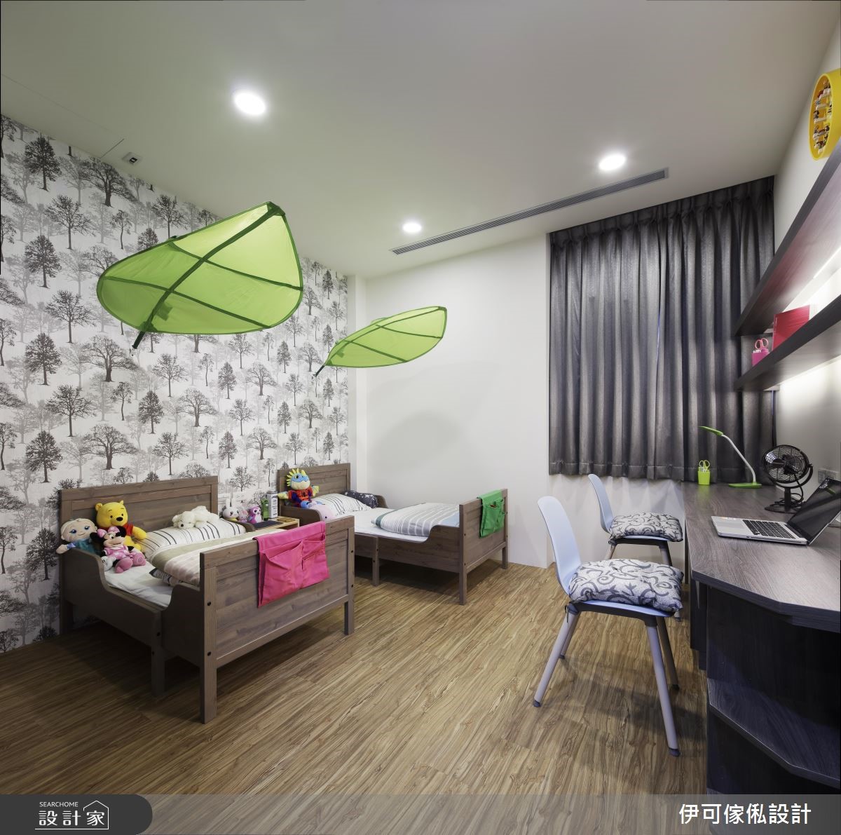 巧用蓝绿色彩与花色墙纸,打造凉感度假宅