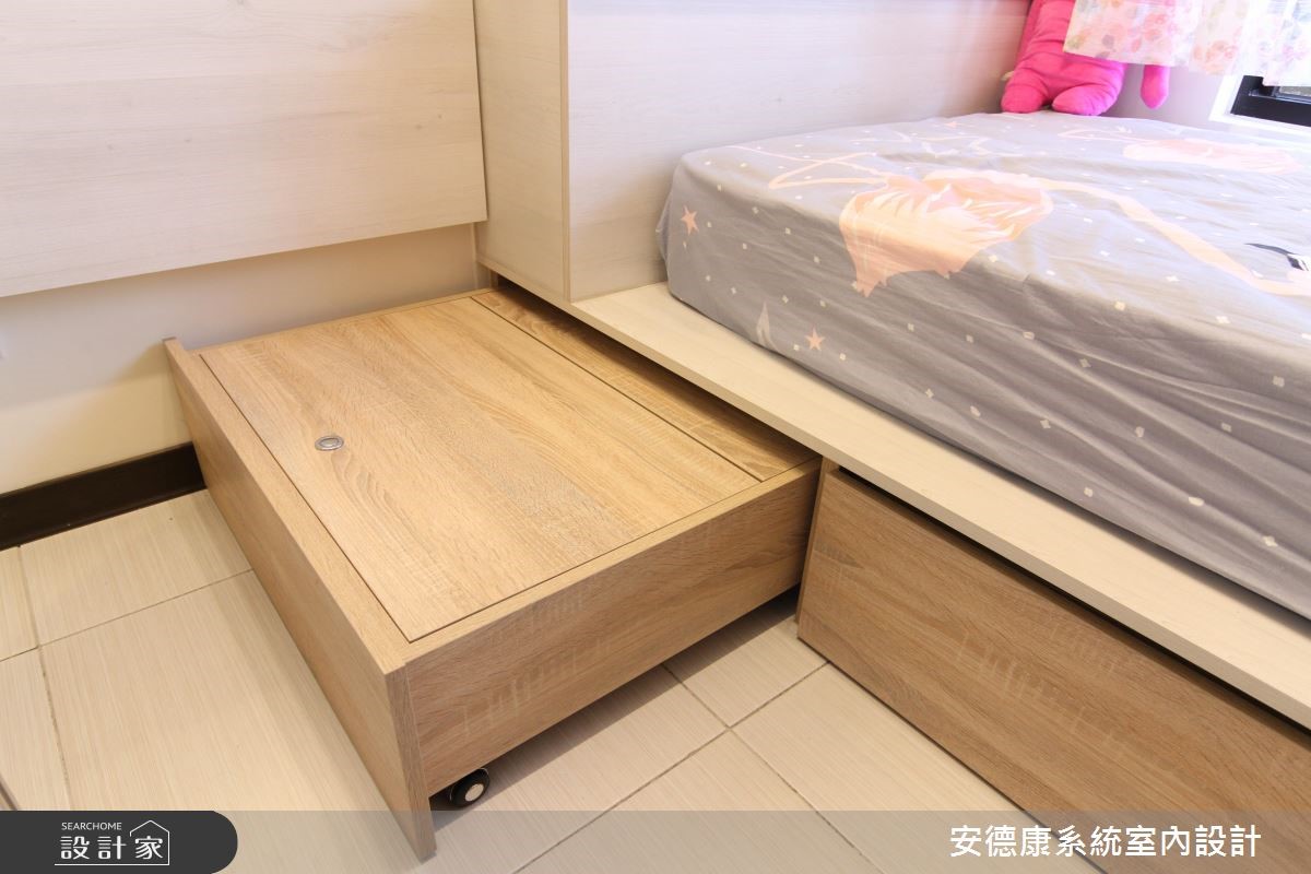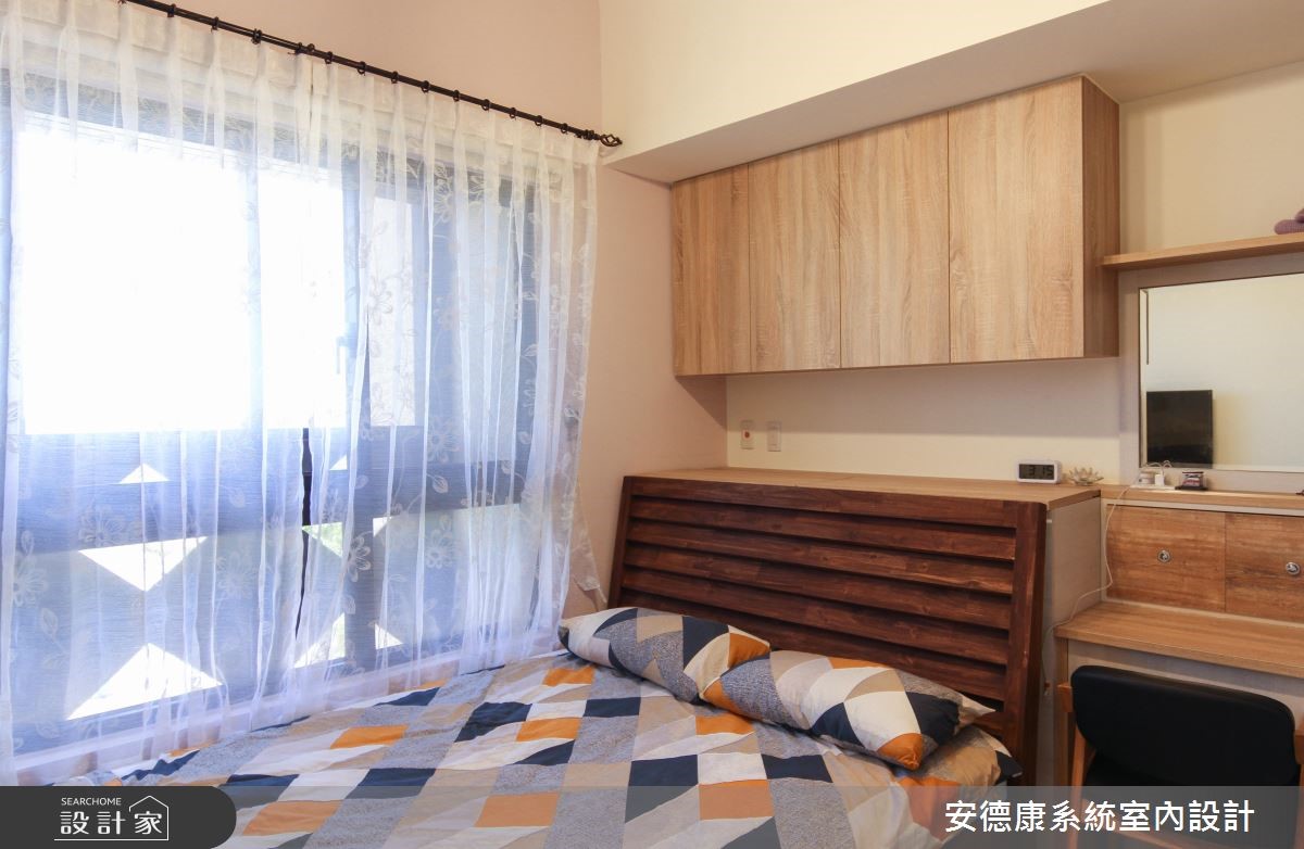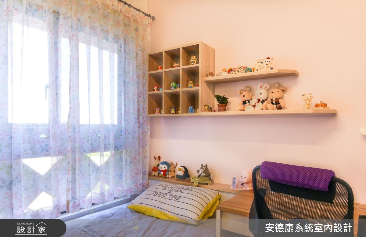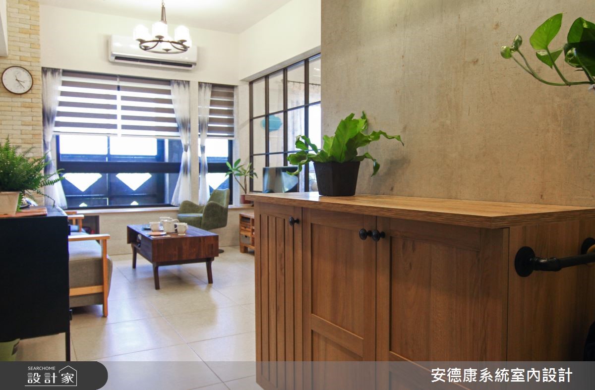曾经从事服装设计的屋主,喜爱乡村和轻工业的混搭风格。设计师运用铁件、木质调和明亮的暖色系,让73平方米的居家空间既可展现工业风的个性感,也带有属于家的温暖质感。 【收纳结合造型,营造居家温馨感】因为屋主家中有两位孩子,需要较多的收纳空间,也希望格局的配置可以让孩子拥有游戏空间。经过多方讨论,设计师利用铁件格窗将私领域和公共空间分隔,辅以卷帘设计可以视需求调整隐私性,让整个空间看起来更大。走进家中,于玄关后方特别将地坪架高,并增设了小巧的桌面和坐垫,可以是平时放松休闲的空间,也能和孩子在这里一起喝杯下午茶和点心。搭配木作造型和灯光,让这个小角落显得更加温馨。为了增加收纳空间,客厅窗边加设飘窗,既可以充当临时座位区,下方更可储放物品。而卧室也利用梁下做床头收纳,搭配一整面衣柜和床下收纳,满足使用需求。次卧则配有阅读桌,并由床头延伸一道斜向线条,更具有一致性,也为展示隔板增加了活泼个性。