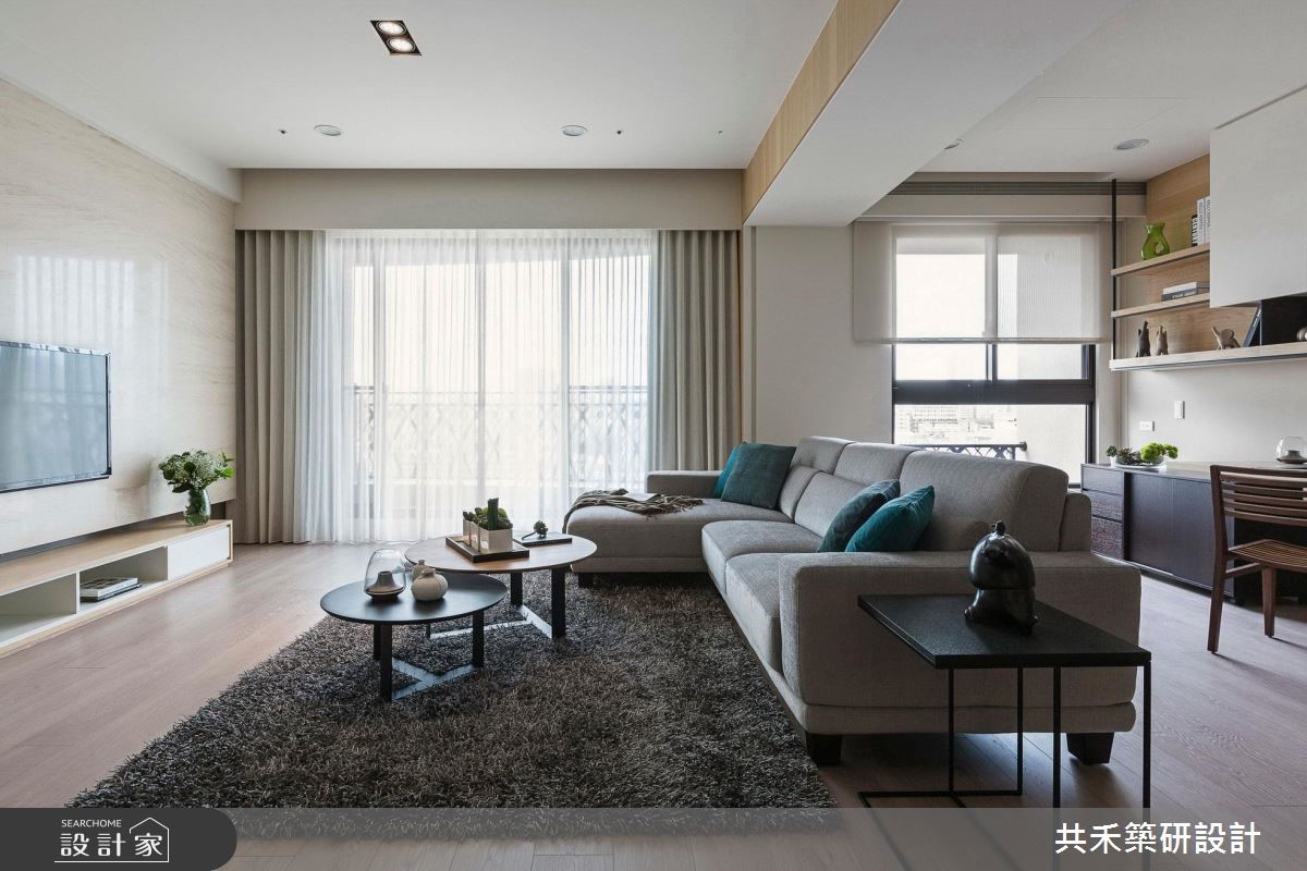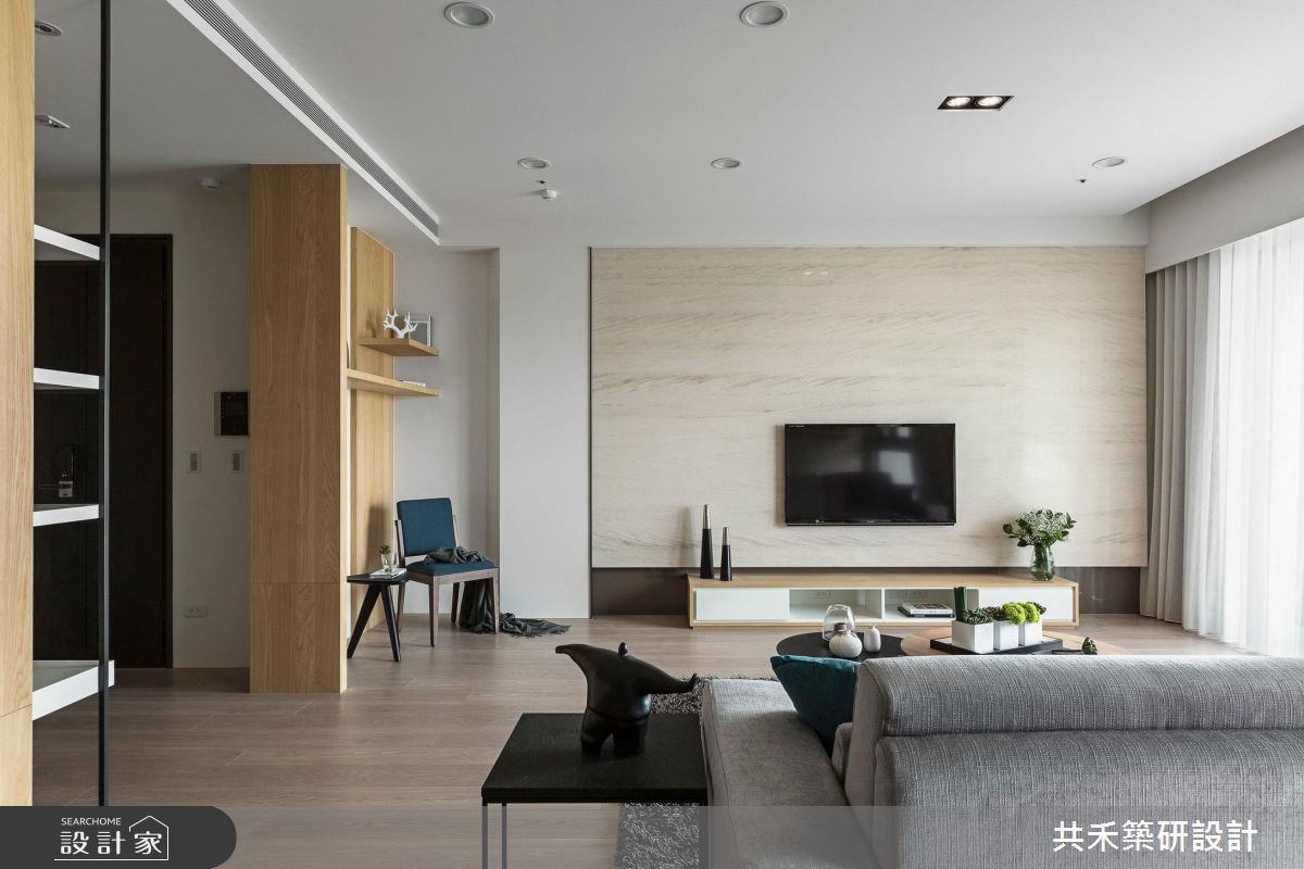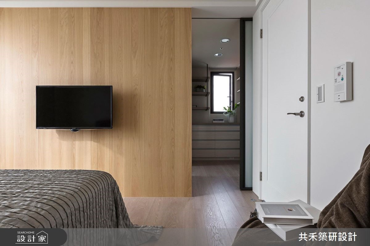 客变后格局还是有问题怎么解?电视半墙创造多元机能,主客卧对调优化动线,59.4 平米新成屋化身质感文青宅