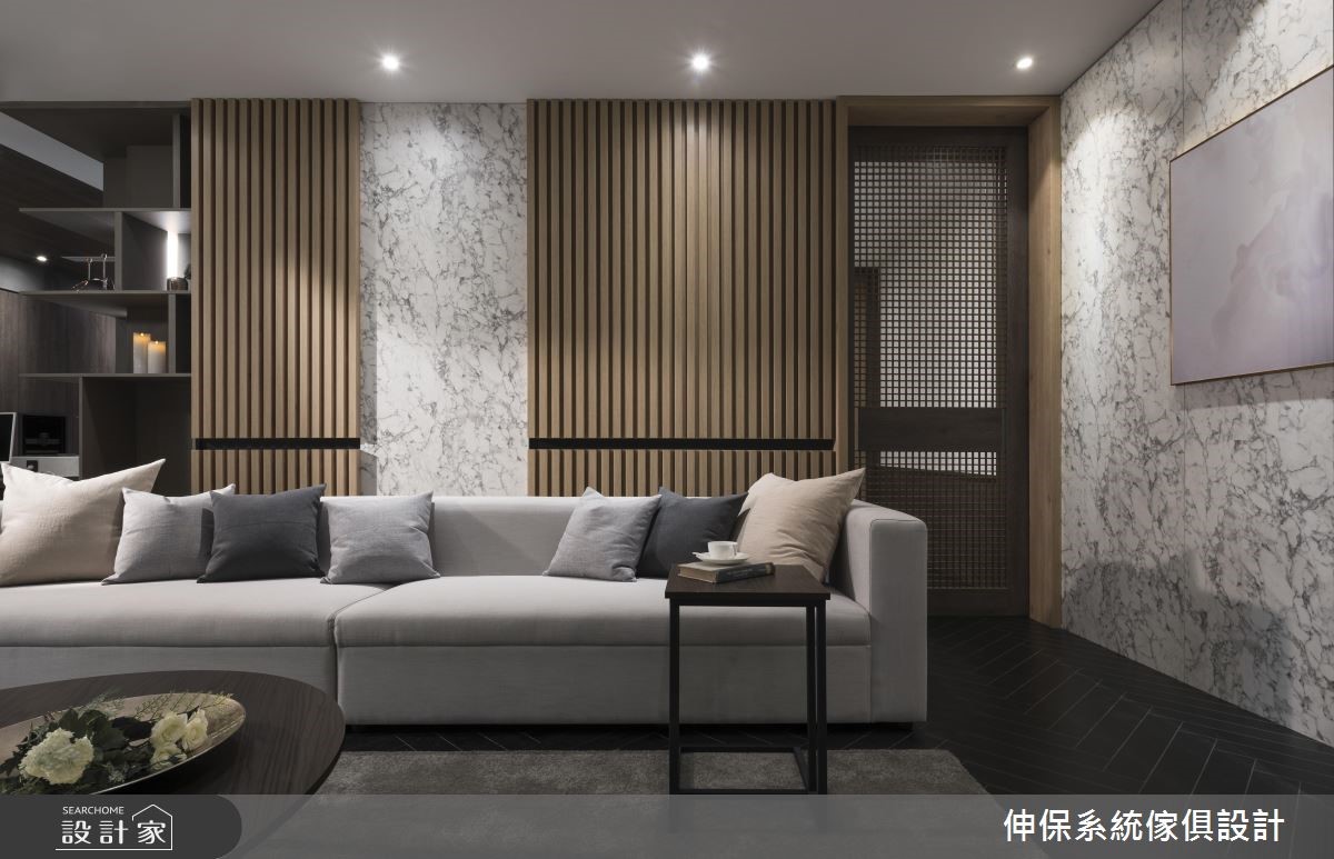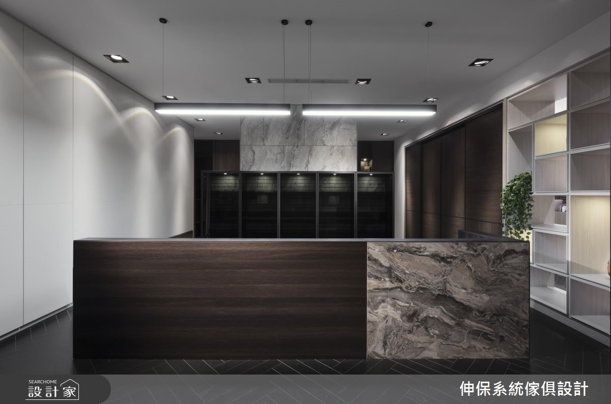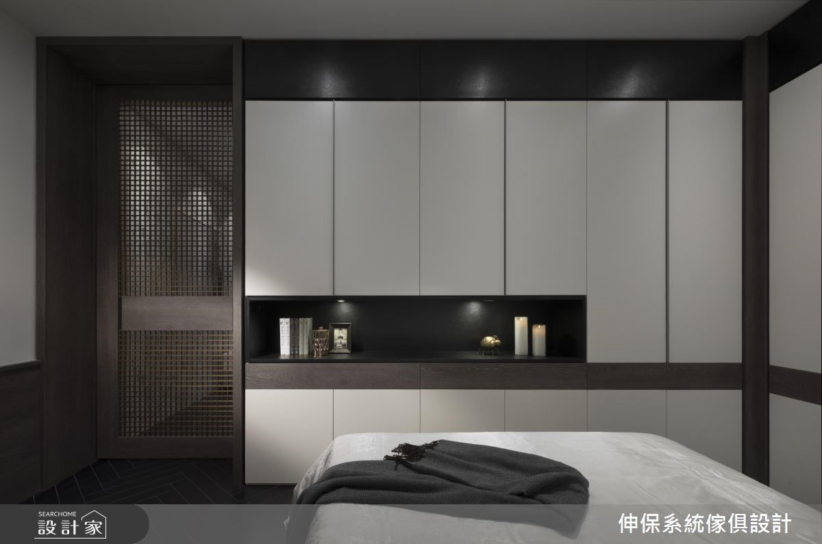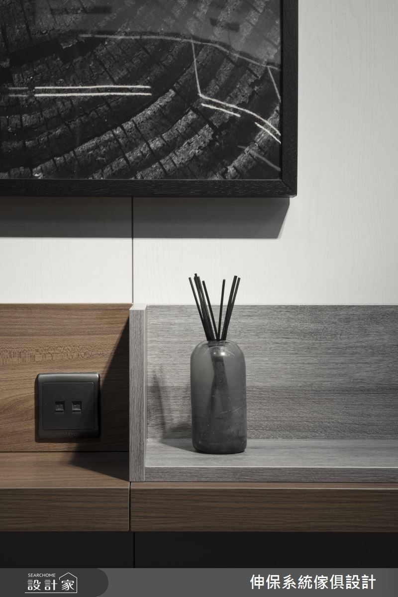 本案为伸保Raysonic的北京门市金源店,空间以室内设计美学角度出发,让顾客可现场体验系统板材建构的精品级居家美学。延伸系统收纳的实用机能,透过石材、五金、色彩混搭,与隔板的灵活定位等,成功突破系统柜的制式印象,缔造令人耳目一新的居家新场景!【沉稳色系,造宁静舒适氛围】空间以优雅低调的色系烘托材质的独特纹理,像中性色调的亚麻棕、细腻的灰色调展现,或于电视墙铺陈大面积的灰网石纹,皆传递出静谧氛围。运用冷暖材质创新混搭,呈现全新板材的设计新意,像木纹格栅搭佐石材壁面,以纹理与木作酝酿日系禅风的幽静。餐厨展示区内以深色木纹铺陈壁面延伸至天花,创造空间气势,备餐柜则保留沟缝细节,结合开放隔架与收纳门片,柜体造型更丰富。卧室藉由米色系为基底,壁面规划门板排列搭佐床头画作,酝酿舒适气息,再搭配深咖啡面板的网纱造型推拉门,替空间带来透视感。