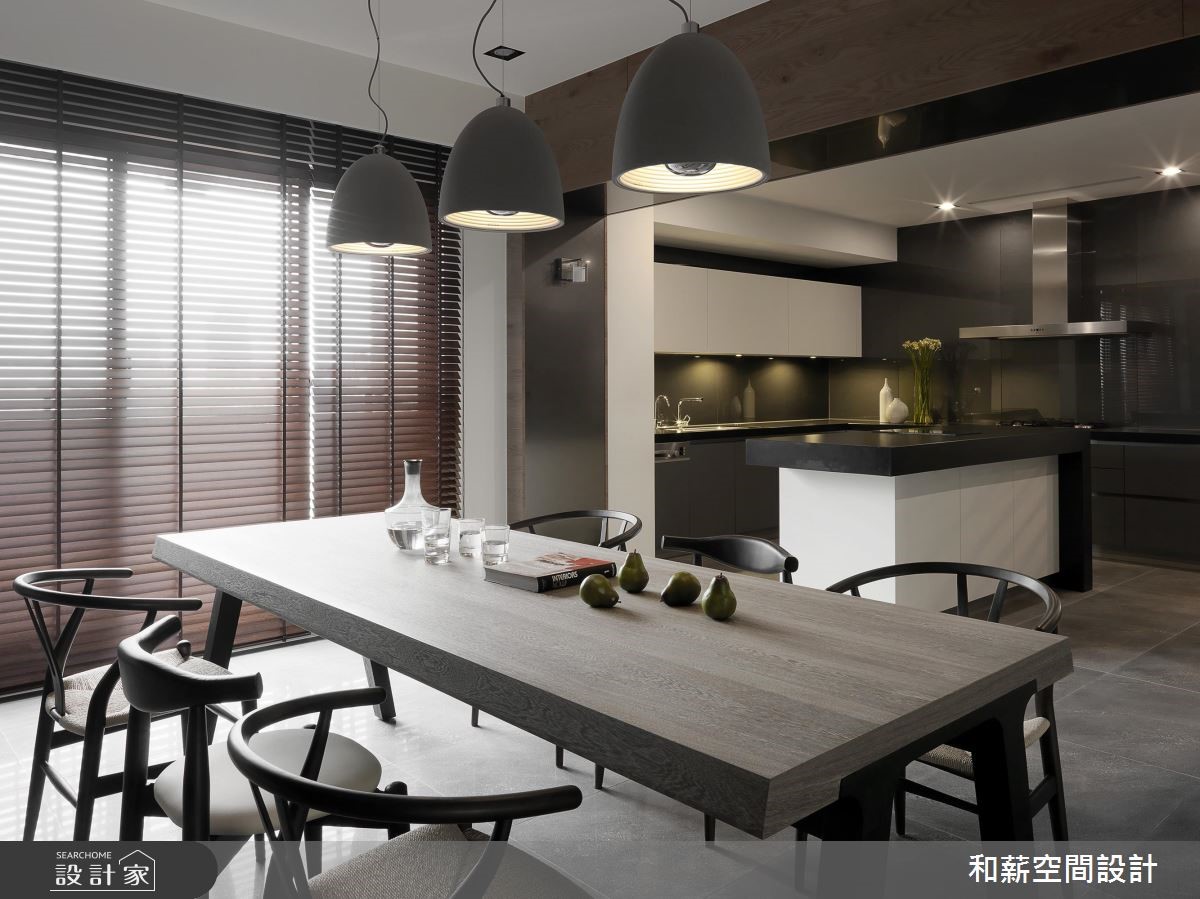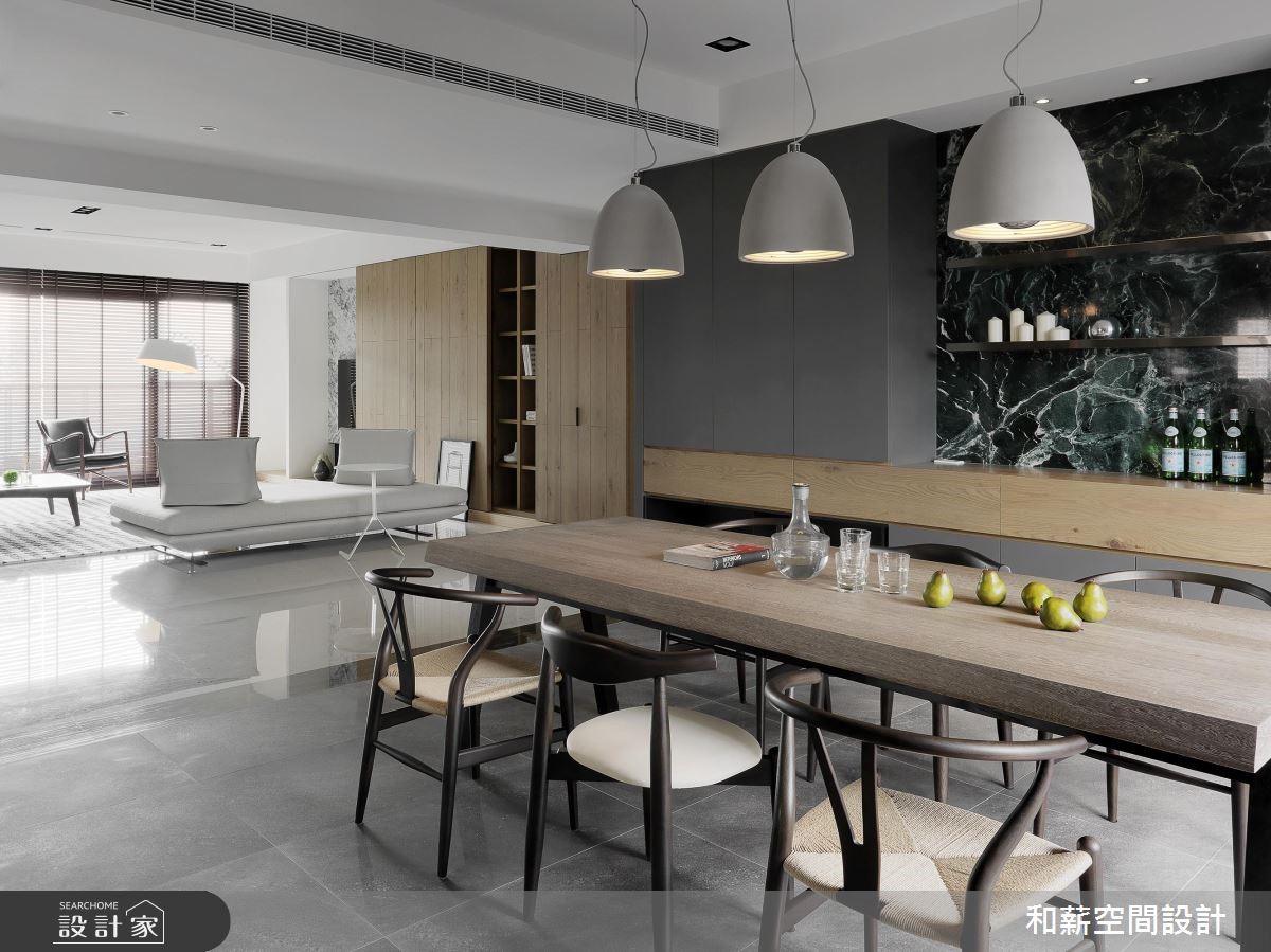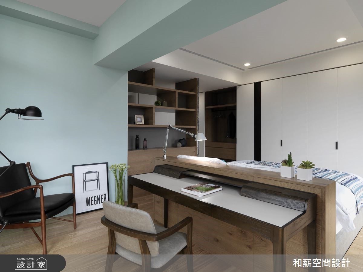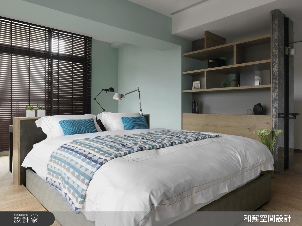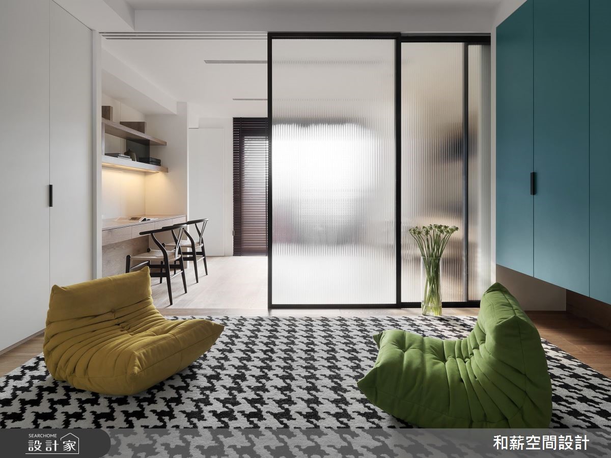 拥有315平方米,相当宽敞的新成屋坐拥高楼层优良视野,将户外的大幅绿地尽收眼底。设计师应用新颖的"日字型动线"规划,让一家四口与来访长辈皆能享受动静皆宜的居家空间。【善用推拉门,切换空间需求】顺应屋案本身位于中心的走道,切分为左侧的开放多功能书房,右侧则为孝亲房,达成动静皆宜的格局分界。左侧延贯穿居家动线的大面积落地窗,打造串连公私领域的平行走廊,与书房形成日字型动线,搭配推拉门的开阖,随时切换开放与隐私需求。开放公共区域以灰阶色调作为视觉主轴,巧妙利用长椅摆向与书柜门片,让使用者创造当下的所需情境。相较于制式家具,在欢聚时刻更能提供大量弹性的需求。此外,针对色彩搭配,运用家具家饰点缀,更在游戏间与主卧以明亮、清新的蓝绿色调,创造丰富视觉意象。