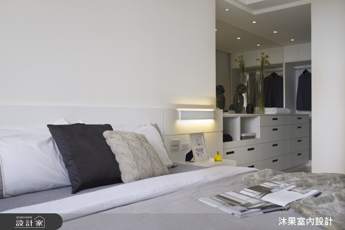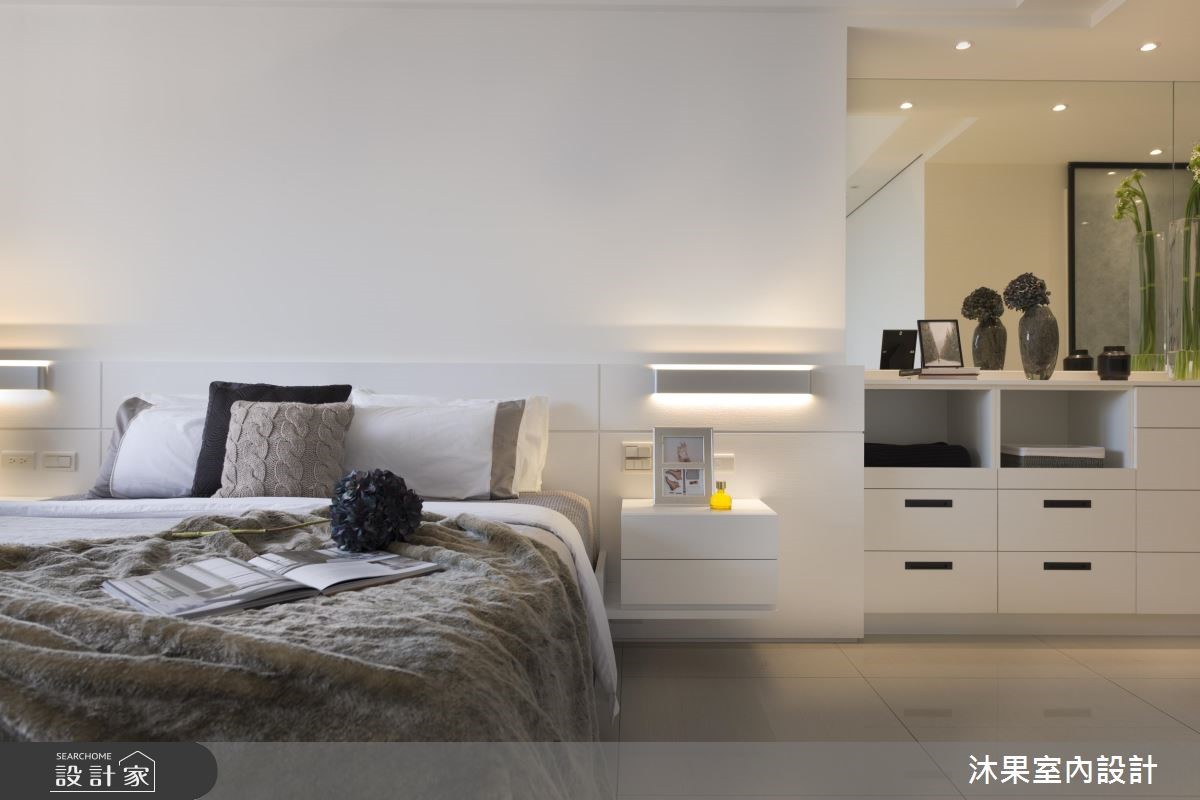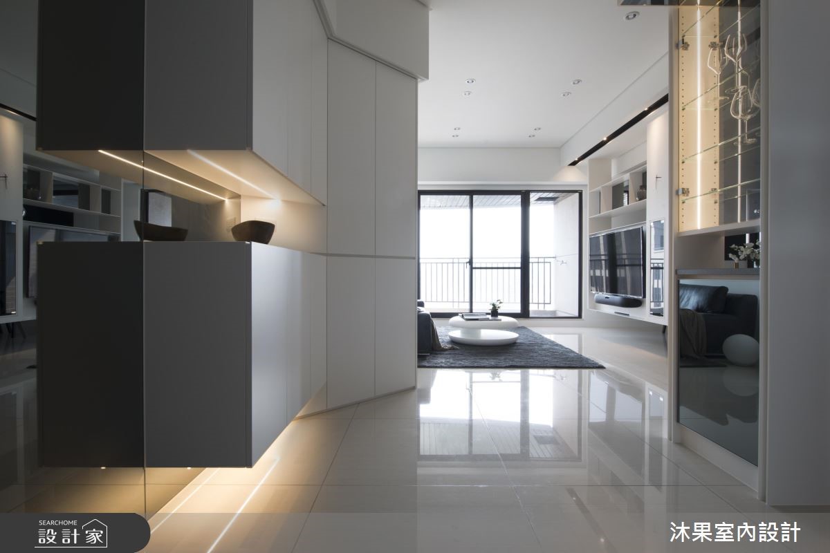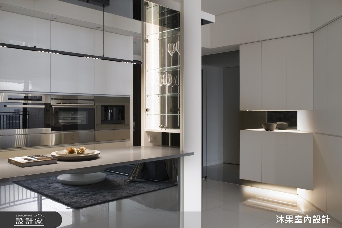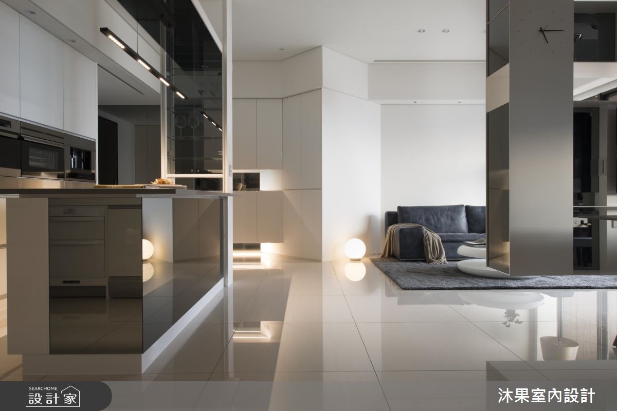 夫妻两人与四只爱猫即将在新居展开生活。由于喜爱简约俐落的现代风格,男屋主带着自己规划的平面图找上沐果设计,几经沟通后经由设计师的专业建议,找到属于家的崭新样貌。【电视柜转向,获得开阔视野】设计师改变了餐厨配置与电视墙的方向,更利用客变拆除隔断(客户变更;建设公司在施工阶段依照屋主需求,预先提供变更格局、设备等服务),利用玻璃隔断开放视野。调转电视墙,搭配悬吊式设计,便能将沙发安排在采光充足的区域,也能向外眺望,视野更开阔。虽是开放餐厨空间,设计师依据机能性,将餐厅与吧台区拆分,将电器柜与吧台、酒杯柜结合,让用餐、小酌皆能有充裕空间。设计师更看见男、女主人有各自的喜好与需求,分別设计了男女书房,让两人皆能拥有阅读、练琴的私人空间。