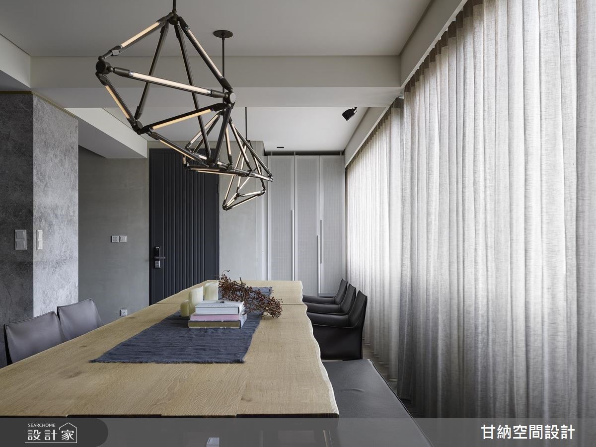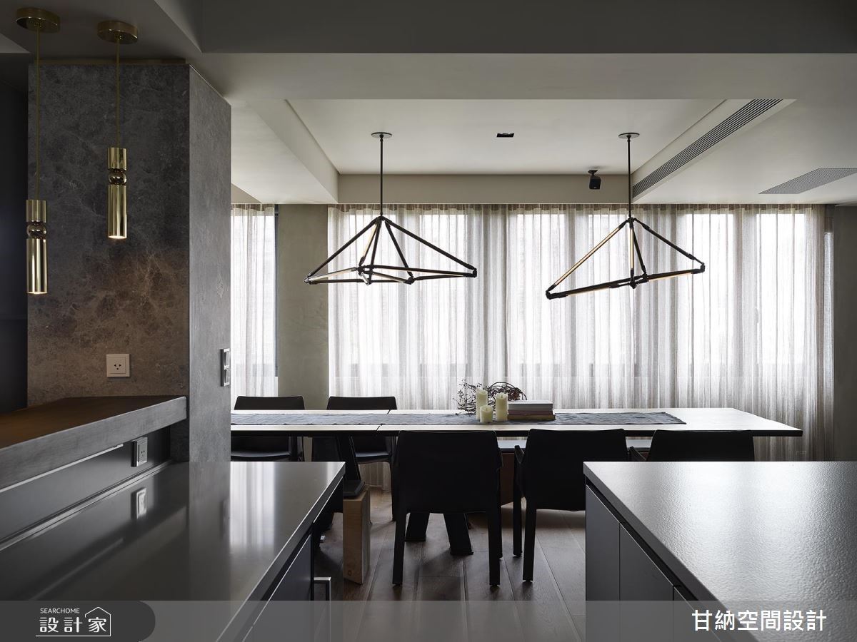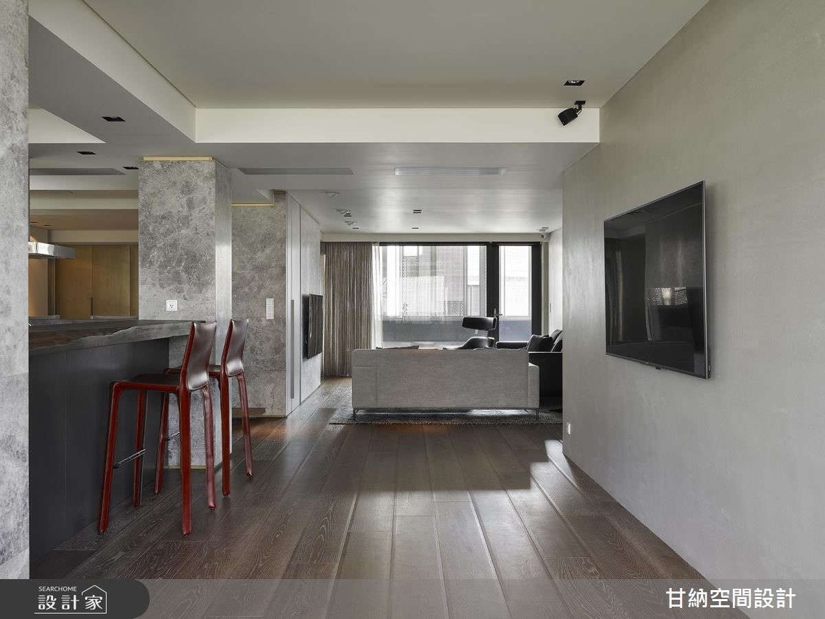 135平米老屋,为屋主的旧宅,基于以往那份成长的情感,在许多年后,屋主买回此处,并将本案装修为休憩居所,作为与亲朋好友一起重温美好时光的空间。【混搭装饰黑灰木三色调】设计师透过黑、灰、木色三色作为全室基调,透过混搭风的挹注与开放格局的擘划,利用建材与家具做出配置,界定区域的功能差异;吧台区着重于线条的表现,在餐桌上方加入灯具呈现不规则的立体几何感,藉此破坏暗色调的沉重感受,同时缔造用餐区域的不凡质感。【惬意微醺视听品酒区】家庭剧院区则以沙发摆设定义空间范围,让屋主可在此专心享受视听体验;走至后方的品酒区,则不同于前两区鲜明的线条表现,此区刻意于家具加入圆型元素,搭佐半月型沙发,型塑柔和慵懒的氛围,让屋主可惬意地休憩与品尝美酒! 【流动线条空间创意】空间中所分布的梁与柱,无形中形成了绝佳的空间架构,设计师化阻力为助力,透过梁体与柱体的分布型构流场动线,开启生活视野的最大弹性!
