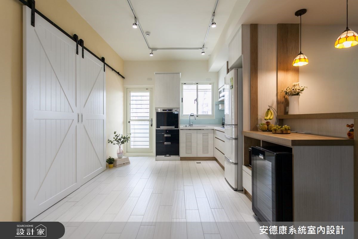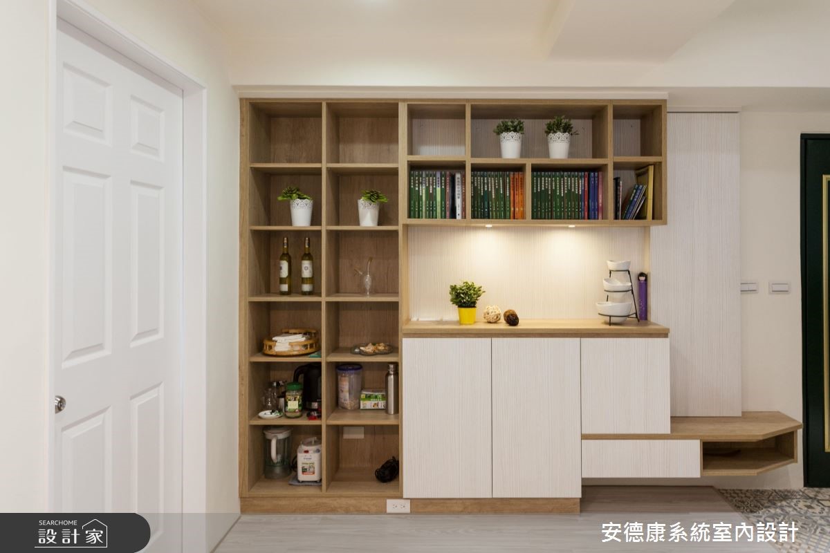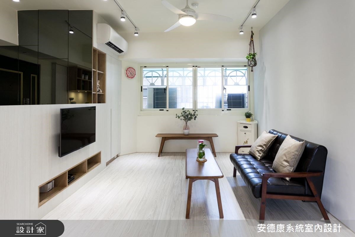 为了就近照顾长辈,久居国外的屋主选择回到台湾定居。不过屋龄约15年的老屋,虽然有着宽敞的公共空间,原始动线却不适合日常生活的使用。因此设计师更改了房门位置和电视柜方向,搭配木质、纯白色调,带来温馨舒适的居住环境。【刷白木地板,打造纯净风格】开放式的居家空间以简约舒适的北欧、日系风格为主,运用大量木质和纯白色调,营造清新温润的感受。玄关处运用花砖和收纳柜,打造出实用且美观的印象,客厅以温润的木地板接续,转至厨房则改用耐用、耐水的木纹砖,平时也能更容易整理。因餐厨区原有另一卧室的出入口,造成动线和家具家电安排的不便,另外也有卧室内床头紧邻浴室的问题。因此设计师针对原有格局动线进行修改,并以系统柜隔出了小型的更衣间,扩大的卧室空间,也能融入阅读和多功能区,挹注多维机能性。