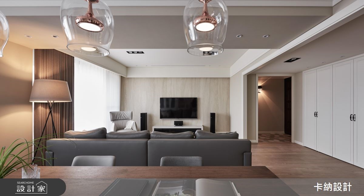 在这处149平方米的美式风居所,卡纳国际设计团队大量使用了疗愈温和的木色和藤色,融入现代风的简洁舒适,以及美式风格的优雅大方。并将原有的4室改为3室,让生活空间更加开阔和舒适。 【美化结构梁,拉高视野更显开阔】走进这处温馨、大方的美式风居所,玄关处以复古六角砖铺设地坪,划分出入口处的落尘区。搭配纯白色的衣帽柜、储物区,并衔接后方的餐柜设计,赋予充裕的收纳机能。为了减低空间的压迫感,沙发上方大梁运用藤色、纯白的层次,拉高视觉的空间高度,营造挑高感。同时,打除靠近廊道处的隔断,以玻璃隔屏界定餐厅和书房,并为餐厅区引入充裕的自然光线。临窗处则为开放式的钢琴演奏区,增进生活的互动。