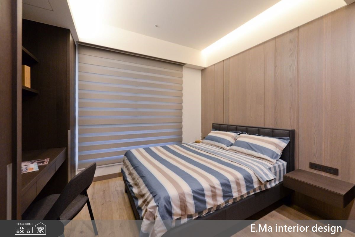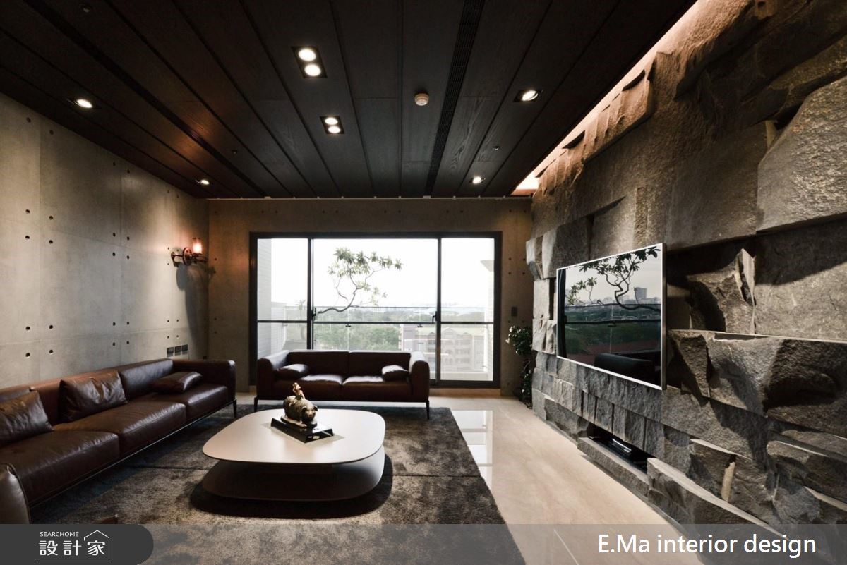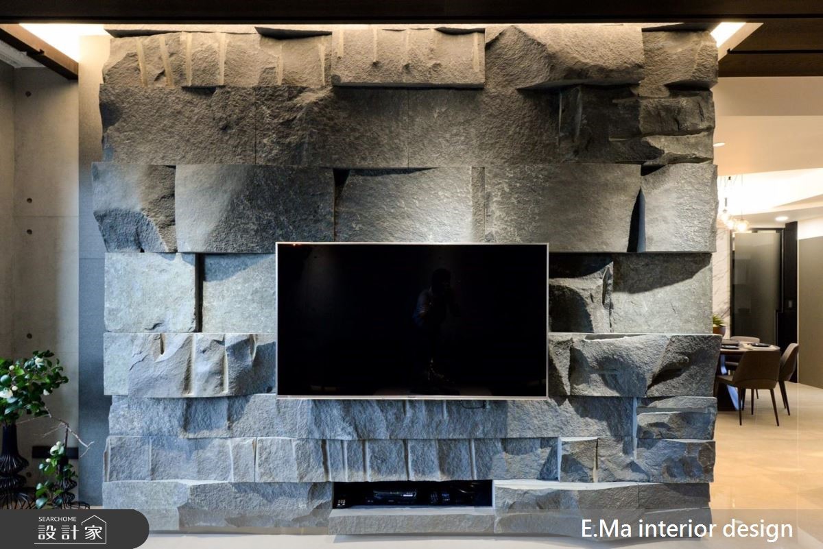 艾马设计团队执手,善用优良的格局优势,为室内设计师的三代之家规划居家空间,打造充满自然元素与浓厚个人特色的公共区域。【干式施工方式,破解载重问题】因业主为室内设计师,对自身与家人需求相当清楚,而屋案拥有优良的格局配置、通风与采光,期待生活中满溢自然感,设计师采用大量石材,并将结构与载重纳入前期考虑,利用铁件固定大梁位置加强结构,以及采用干式施工方式加强安全性,解决石皮过重问题。【清水模涂料,创造休闲气息】设计师希望回到家后能拥有全然纾压的空间,除了石皮电视墙以外,更采清水模涂料,放松又耐脏,巧妙利用大面积开窗引景入室,搭配天花钢刷木皮板,打造能抚平杂乱思绪的沉淀所在。【私领域个性化,依需求量身定制】主卧采用立面线条与灯光设计打造摩登氛围,儿童房更考虑到孩子未来的成长需求,采用通铺设计免除改装困扰。长辈房更结合阅读休憩机能,让全家5口的私领域皆拥有符合需求的设计。