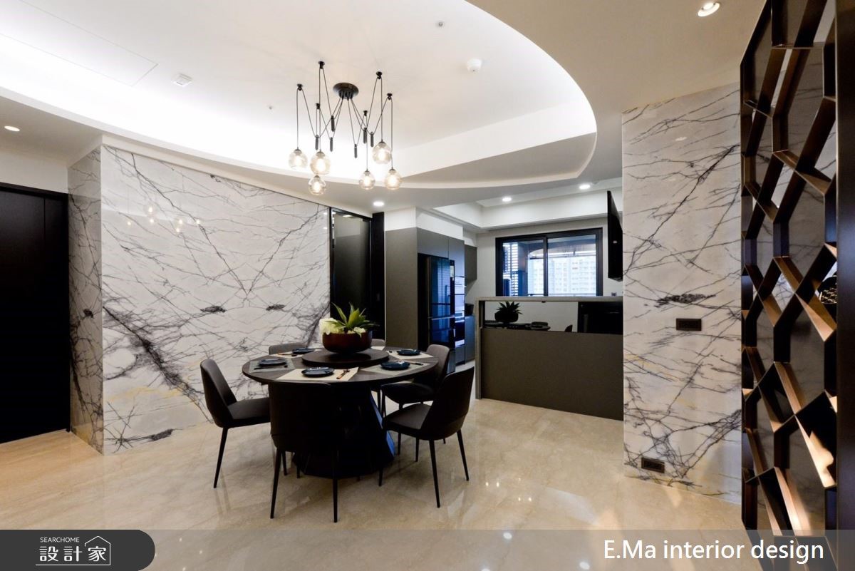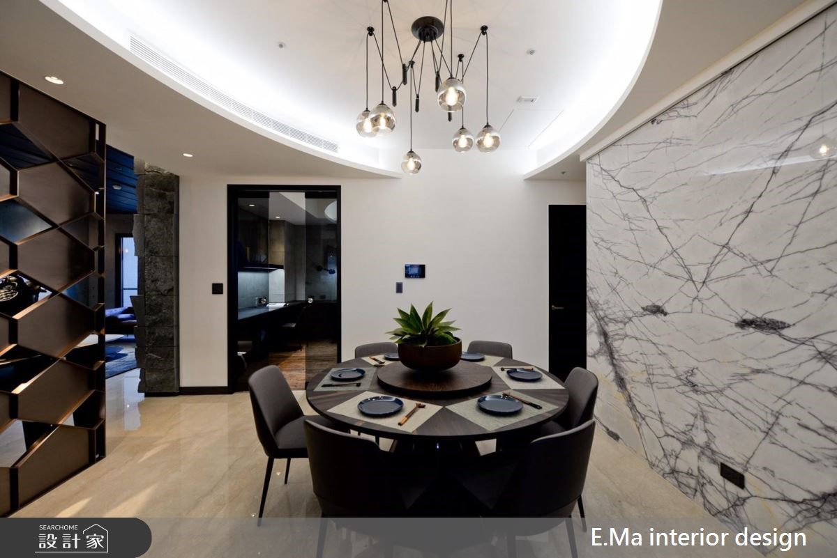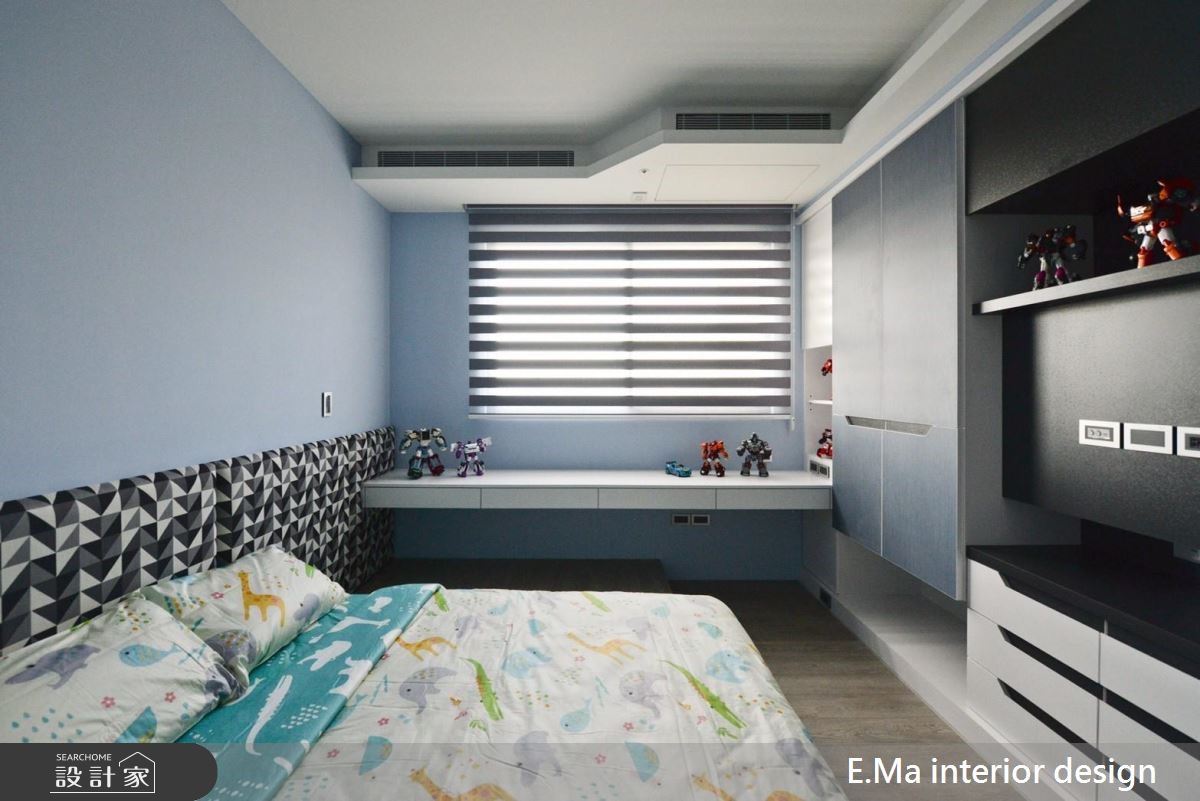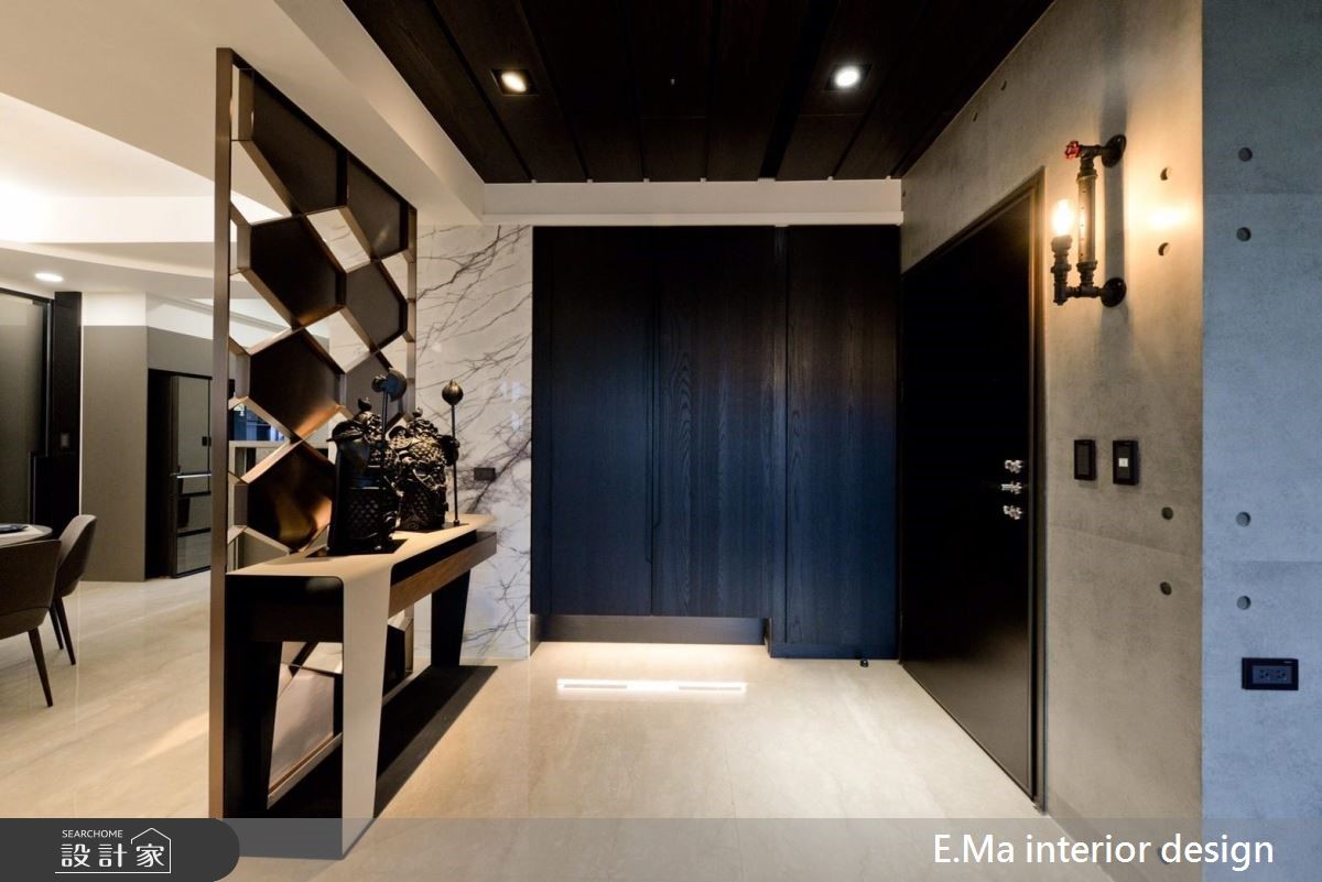 艾马设计团队执手,善用优良的格局优势,为室内设计师的三代之家规划居家空间,打造充满自然元素与浓厚个人特色的公共区域。【干式施工方式,破解载重问题】因业主为室内设计师,对自身与家人需求相当清楚,而屋案拥有优良的格局配置、通风与采光,期待生活中满溢自然感,设计师采用大量石材,并将结构与载重纳入前期考虑,利用铁件固定大梁位置加强结构,以及采用干式施工方式加强安全性,解决石皮过重问题。【清水模涂料,创造休闲气息】设计师希望回到家后能拥有全然纾压的空间,除了石皮电视墙以外,更采清水模涂料,放松又耐脏,巧妙利用大面积开窗引景入室,搭配天花钢刷木皮板,打造能抚平杂乱思绪的沉淀所在。【私领域个性化,依需求量身定制】主卧采用立面线条与灯光设计打造摩登氛围,儿童房更考虑到孩子未来的成长需求,采用通铺设计免除改装困扰。长辈房更结合阅读休憩机能,让全家5口的私领域皆拥有符合需求的设计。