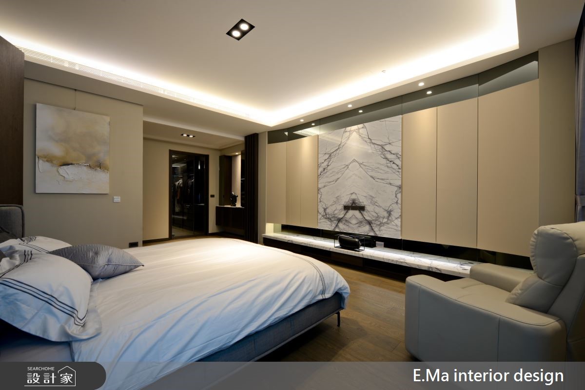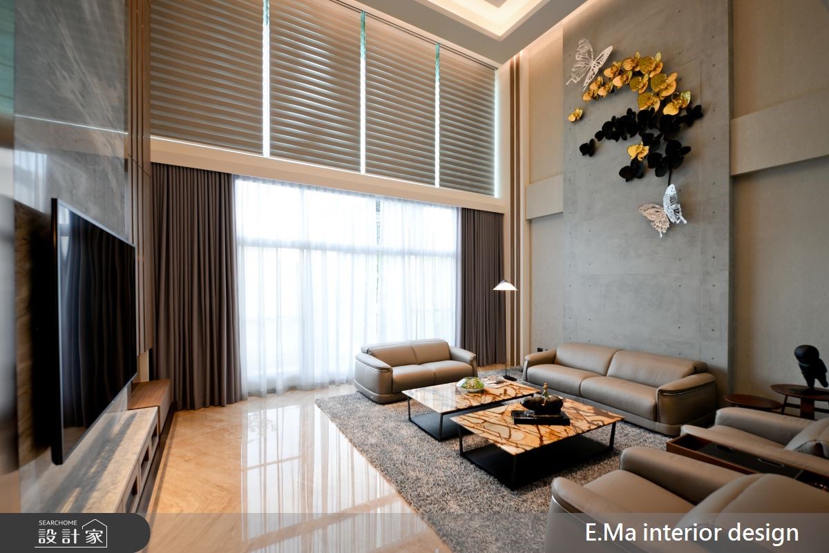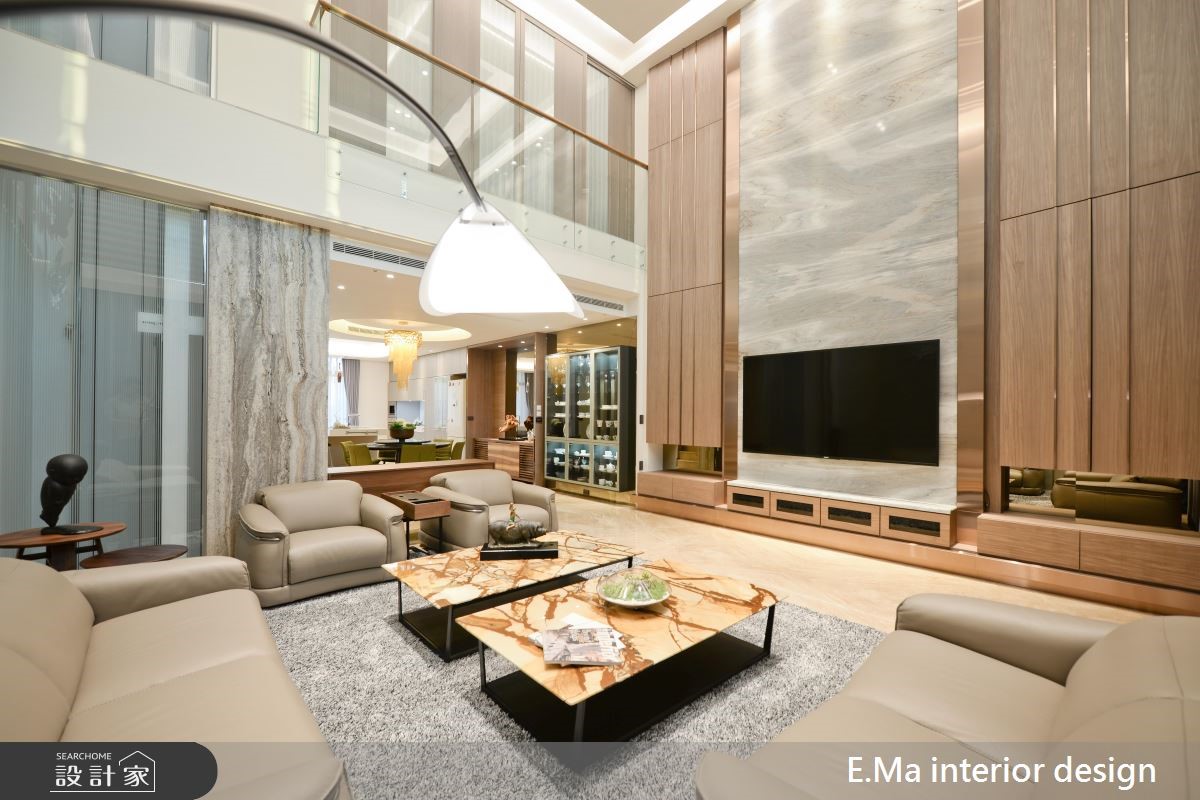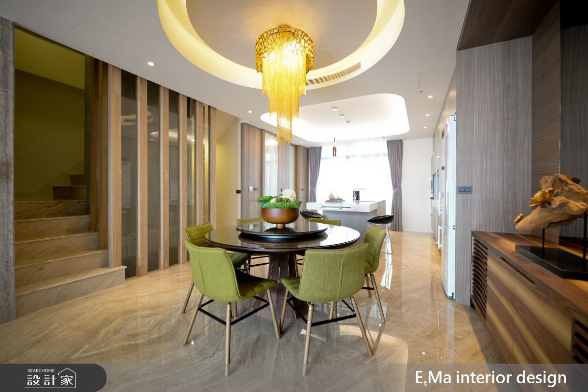 6层楼的别墅,虽曾有完整装修,却不是屋主想要的风格,经由朋友推荐,以及参观设计师的工地现场后,决定全部重新装修,并邀请艾马装修设计规划,设计师透过细心、专业的设计思维,为屋主打造出梦想中的奢华风新婚宅! 【优雅兰花壁饰,打造精巧亮点】在装修的沟通过程,设计师细心的发现屋主喜爱美式、奢华等较为大器风格,因此特别融入屋主喜爱的兰花壁饰、带有水波纹的石质等建材元素,打造出别致精巧的视觉亮点。【钛金属饰条,更添精致时尚】公共空间采开放式设计,挑高的客厅拥有大器的电视墙设计,设计师在温润的石质、木质元素中缀入钛金属线条,更添时尚利落;另侧则规划为用餐区,并利用玻璃柜呈现屋主的餐具收藏,营造出精致、高贵的餐饮氛围。