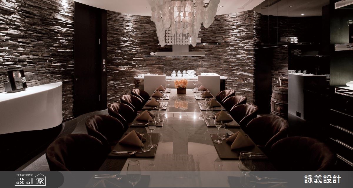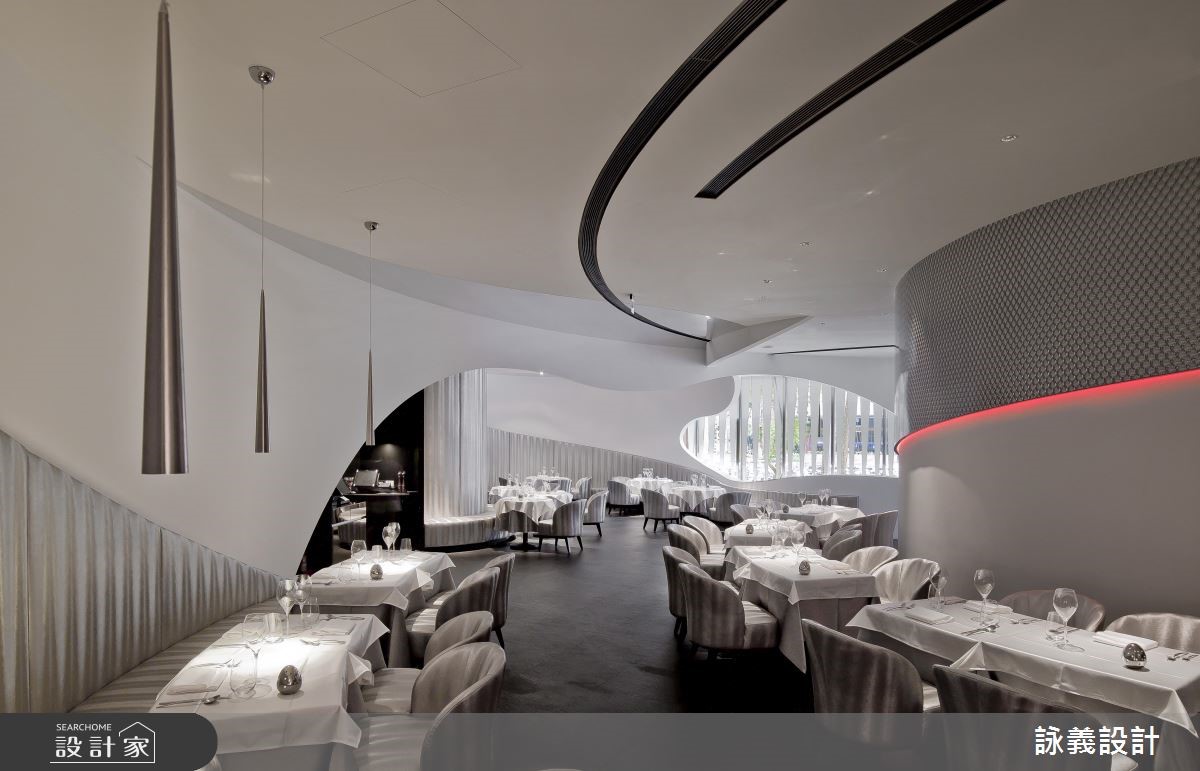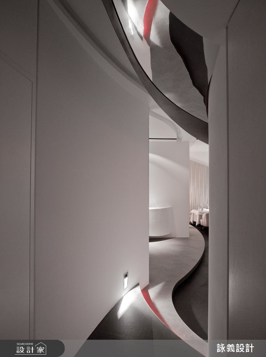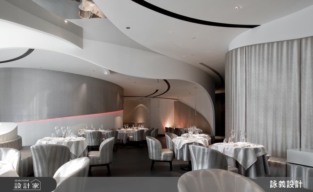 看似蒙太奇般的绚丽表象,其实蕴涵着深邃的理性解析,设计师透过层次的建构,由紧密到开展、由内部而外部,有秩序地将空间分配出各种机能属性,透过环状层次的交叠,衍生出雕塑性的空间氛围。【善用材质,转换空间相异感】整体除去多馀的色彩,采以繁复流体与曲线构建"幕与幕"、"景与景"间的关连,并善用材质转变,如金属、木质、石材等缔造丰富的感受,在流动空间感中,让视觉重现而反复,不时穿插细微的突变,让各空间保有私密,又无限向外扩散,犹如时间河里共存的小宇宙。空间中亦注入流动的时间感,展现出细微的时间差,如页岩石材围裹的椭圆型包厢,象征初心与过去,而在具体的穿梭之中,反映现在及当下,同时运用流动的视觉与色调,诠释未来和科幻。