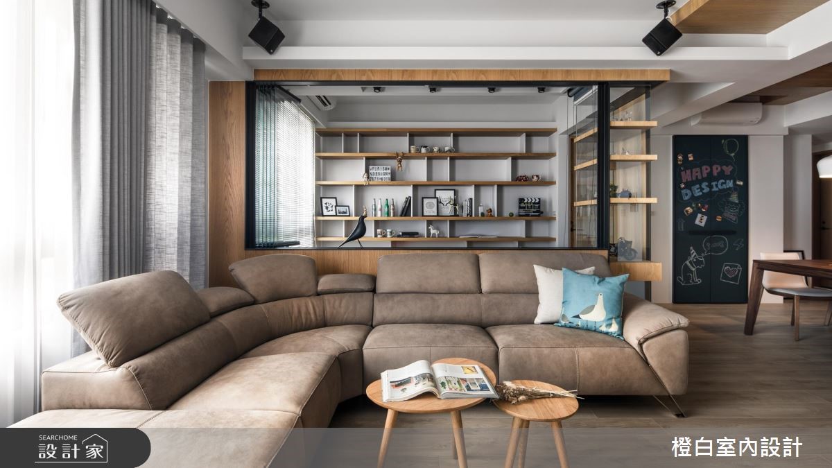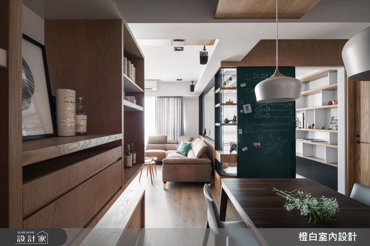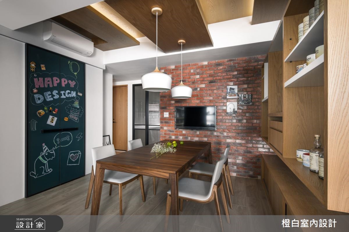 设计师替112平方米二手房重新进行整合规划,不仅一改先前屋况,透过木质肌理塑造朴质气息,运用黑板墙、复古红砖、轻透隔断等设计,缔造流畅的生活,快跟着小编一起来看看吧!【清透材质做隔断,串起空间互动】为让一家人保有自在互动,整体布局呈现开阔明亮的视野,并藉由清透隔断构筑流畅的光照路线,让每个角落都能享受到采光照拂。并在轻盈休闲的风格下,结合轻工业设计手法,透过木作修饰天花造型,无形中划分每个领域的范围。同时,书房运用铁件、木质和玻璃作为隔断,延展厅区的空间感。餐厅则安排复古红砖墙,造就风韵独具的乡村怀旧氛围,加上机能柜体的配置,使此区作为一家人凝聚情感的中心。加入大面积黑板墙,赋予孩子自由创作的园地,替生活勾勒趣味风景。