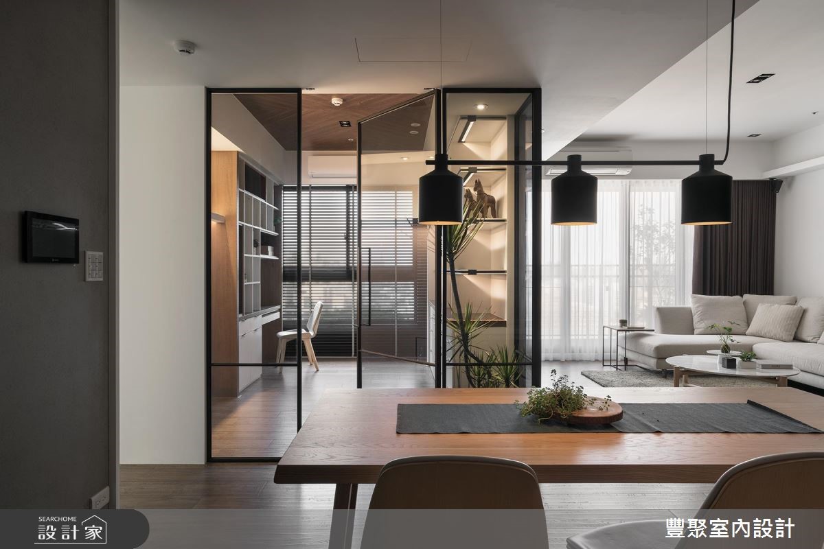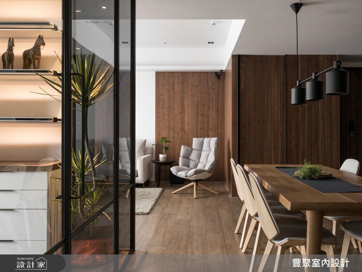 喜愛旅遊、環遊世界的屋主,設計師依循其居住需求,打造一間現代風居家,不僅延攬好採光,亦加入獨立書房與儲物收納機能,在溫潤的木質感底調中,將屋主收藏加入設計之內,快跟著小編一起來看看吧!居宅以白色、木色作為基底,除了以木質當作壁材,刻意表現清晰自然的質紋,讓牆面形成匯聚目光的焦點,也在客廳電視牆後方加入一個玻璃盒子,作為屋主專屬的書房空間,以鐵件為框架、玻璃為建材,導引視覺與光線的流動,內部挹注許多收納展示櫃體,以燈光烘托擺放的收藏物件,讓空間有如一處精品展示間,跳脫個性化的氣息;寢臥內,於床頭加入沉穩色調,與大面積的白色櫃門形成對比,搭配明亮寬敞的整體視野,交織出高雅的場域景致,並加入略帶美式感的壁板線條,給予床頭櫃與梳妝檯機能,圍塑出令人感到安定的實用情境!小編的最愛設計師在每個領域穿插綠意植栽,與木作肌理形成美好呼應,讓居家變得富有溫度與情感,充滿著活力及自然意象!