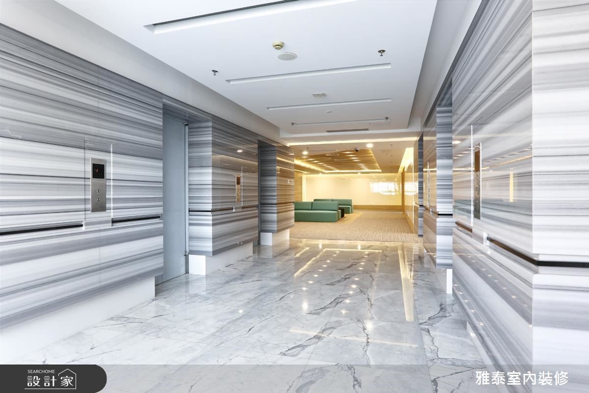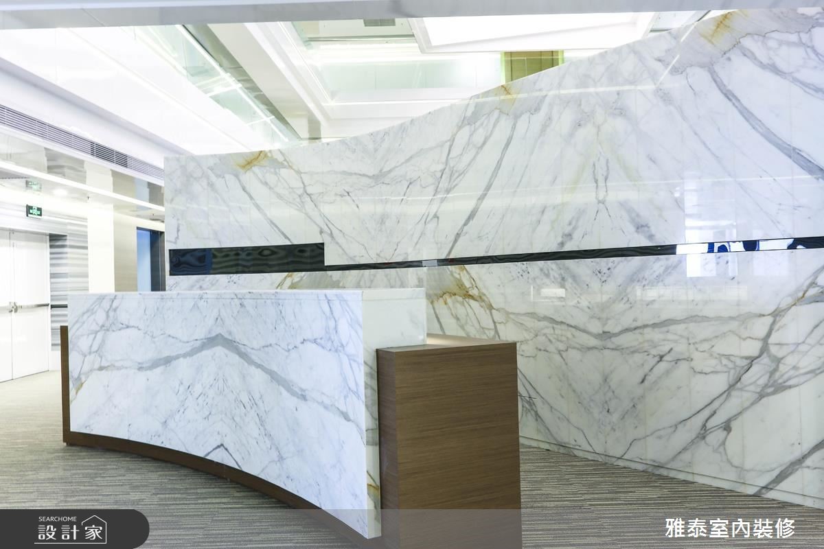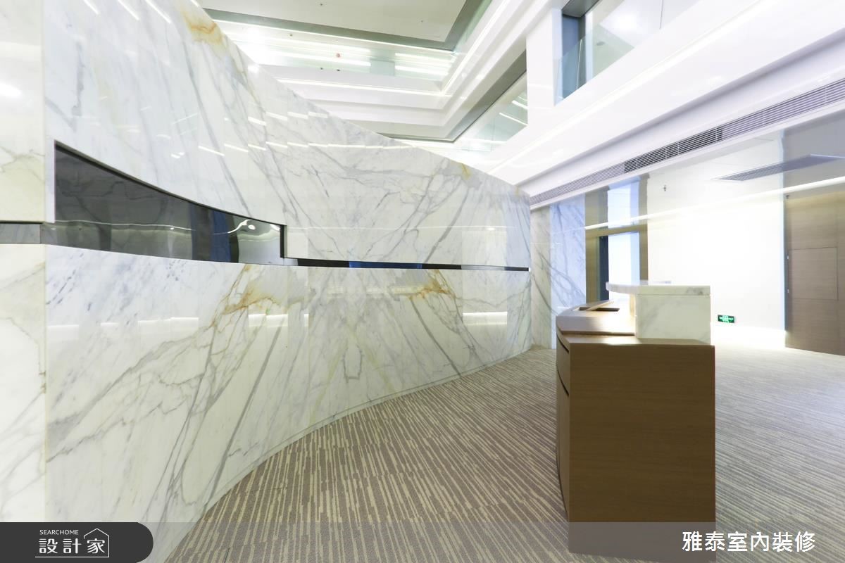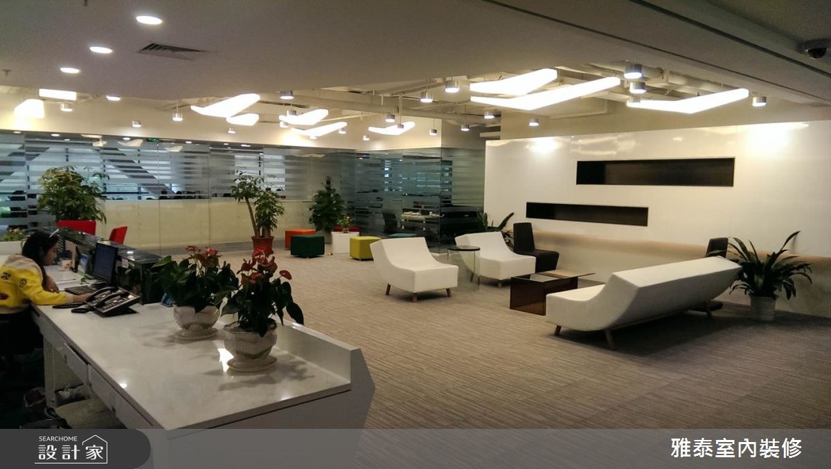 位于深圳深南大道的30层私人商业大楼,设计师依循建筑的主体架构做出美化,让空间更加立体与实用,并跳脱既有结构的深色沉重感,选用亮色系建材,搭配四面采光的优势条件,再造大器轩昂的企业形象。【清爽色调,营造宽阔大器感】设计师跳脱原先规划的深色风格,改以明亮的白色为主调,不仅扩大视觉感受,也凝聚高科技的公司印象。大厅的四根柱子为空间中醒目焦点,设计师加入水平向的线条设计,呼应整体的灰白色大理石地坪,如此修饰不但减轻柱体的压迫感,更彰显了挑高的气派感。中庭区域则藉由桌椅的安排,规划许多小型的讨论区块,且透过充满雕塑感的手法打造隔断,以自由流线的量体造型,让各个讨论区互相串联也保有适度区隔,演绎有如美术馆般的艺术视野!
