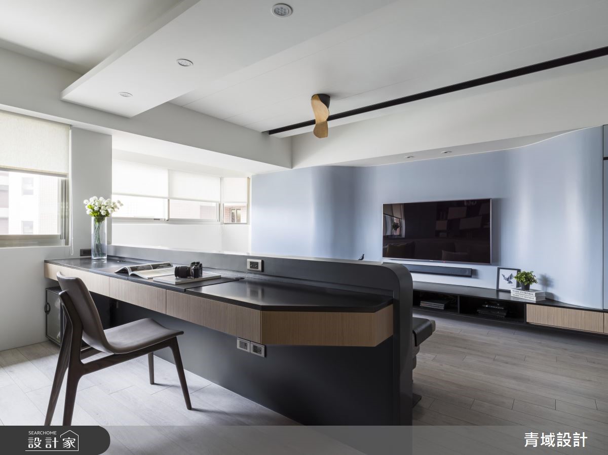 家里要收纳的东西不断增加,是不是也让你很困扰,这处89平米现代风居宅,屋主夫妻特别在意鞋子、厨房的收纳需求,因此设计师在公私领域,皆安排了大容量的收纳设计,并运用隐性美学,让居家空间保有整洁又清爽的面貌! 【柜体同时兼具收纳与隔断机能】老房子既有的粗大梁柱结构,让视觉上有很大的压迫感,设计师运用弧形的墙面造型设计,包覆了冷硬锐利的柱体线条,同时也让收纳柜从玄关可以一路延伸至客厅,满足大量鞋子的收纳容量。玄关旁则以柜体隔间划分领域,另外也更加强了厨房的收纳需求。【弧形设计,营造柔和的视线】男屋主希望在书房阅读工作时,也能看到客厅的电视墙,设计师藉由开放式的设计手法,增加开阔明亮感和空间的互动性,后方的书墙也成为了客厅的展示风景,而书桌矮墙同样采用弧型设计,化解边缘的锐利棱角,不但看起来更加柔和温润,并兼具了使用安全考虑。【主卧以木质搭配色彩打造简约风】主居室以简约明亮为主,以浅色木质和淡紫色营造出清爽柔雅的氛围,并善用梁下空间进行收纳规划,达到舒适与机能的完美展现。