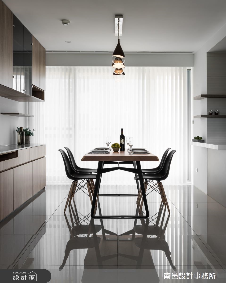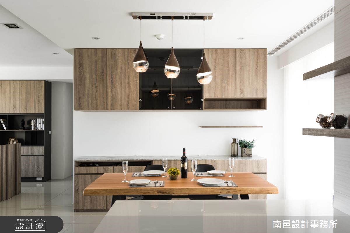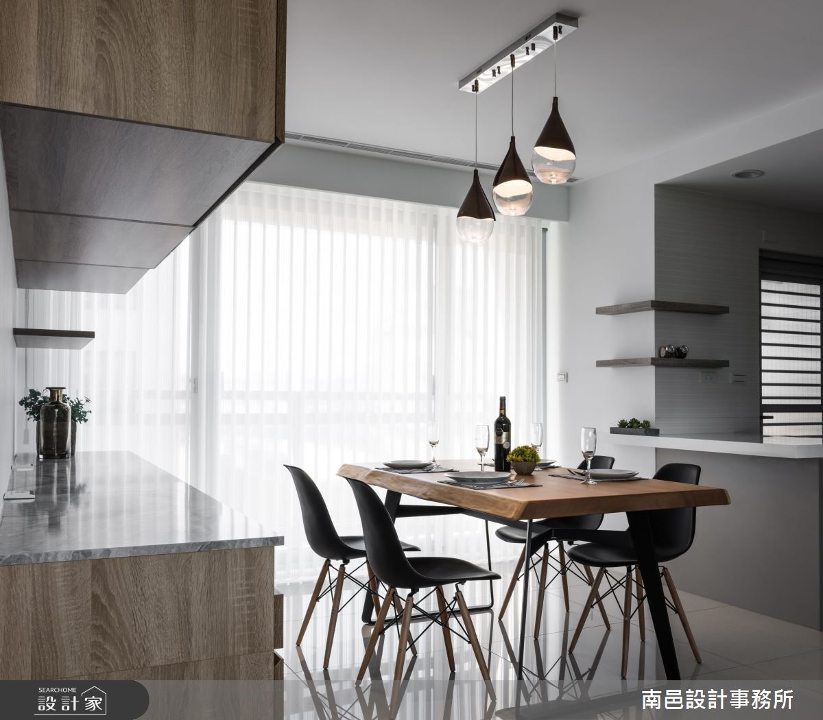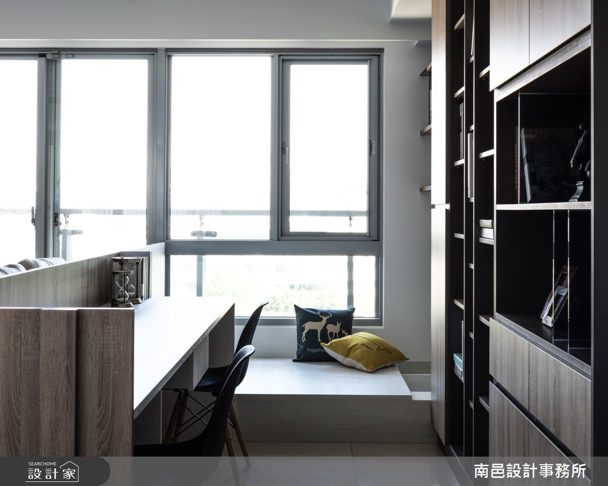 一家三口搬进116平方米的空间,展开新生活。由于预算有限,又有大量的收纳机能需求,于是与南邑设计合作,微调格局,注入收纳机能,打造温馨又实用的精省好宅。【黑白灰三色,造简约风格】由于预算有限,设计师排除地面施作,更保留原始天花与格局,将重点放在家具与动线规划。客厅电视墙以带有淡雅纹理的石材打造,搭配纯白沙发与跳色抱枕,呈现清爽的北欧气息。全室采用黑、白、灰三色,让视觉更显俐落单纯。客厅后方的书房,采用半高墙面区隔,维持视觉穿透性。一旁飘窗更增添了休闲气息。开放式餐厨与客厅及书房位置对应,同样以清爽淡雅的纯白色调与木元素构成。针对收纳机能建置,电视墙后的玄关利用几何门片、书房大面积柜体及餐厅餐柜满足每个区域的收纳需求。
