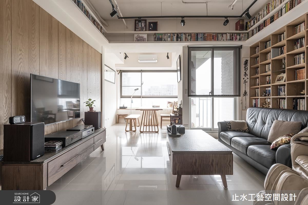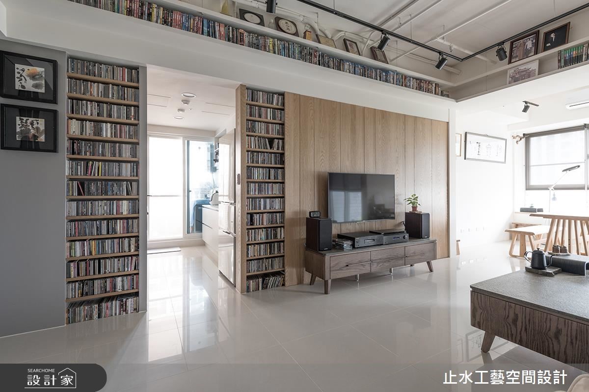 132平方米的现代风家居,为作家夫妻的生活居所。为了让上千本的藏书、上千张唱片得以收纳,设计师善用一切可利用空间挹注超量机能,结合简单、优雅并略带禅韵的设计,让住宅成为屋主的灵感孕育宝地,快跟着小编一起来看看吧!【定制柜体尺寸,完善机能】将沙发后的大面书墙作为主视觉焦点,运用墙面高度的柜体规划,连天花都不放过,满足多样化的书籍陈列。在书本与温润木质的交错之下,展现深厚的人文氛围。与之相对的电视墙周边,则铺陈插入式的 CD柜体,定制尺寸,空间不浪费,也方便物品取用与收纳。格局分配上,赋予开放式规划以及适度的留白表现,营造视野广度,型塑开阔氛围。随处可见书法字画妆点,结合男女主人收藏的古董老件等,围塑文青感十足的生活情境。卧室内透过家具延续饱满温厚的木色,显得细致而淡雅,时刻与书香气息相随。