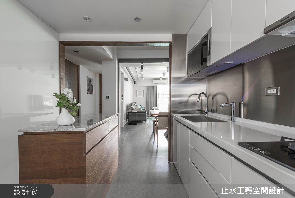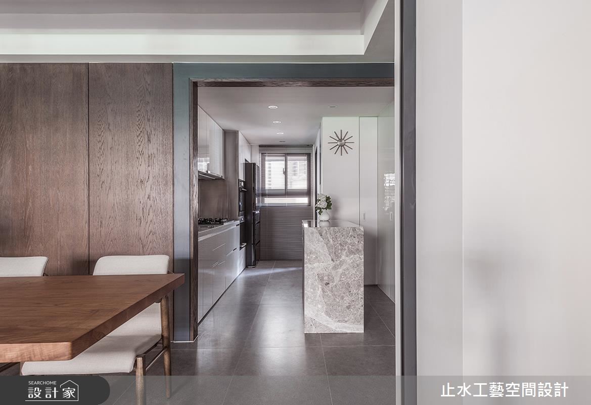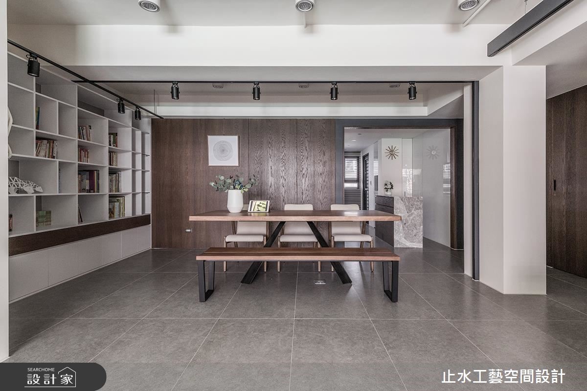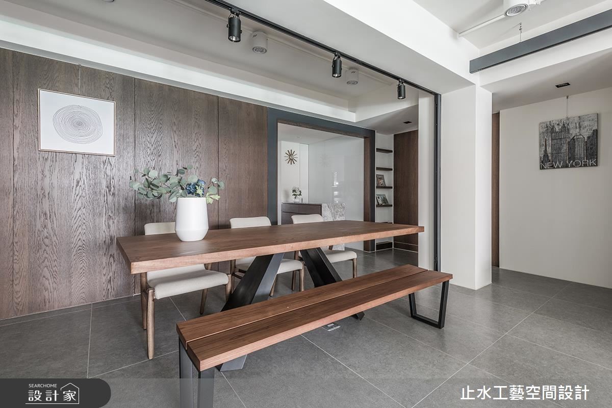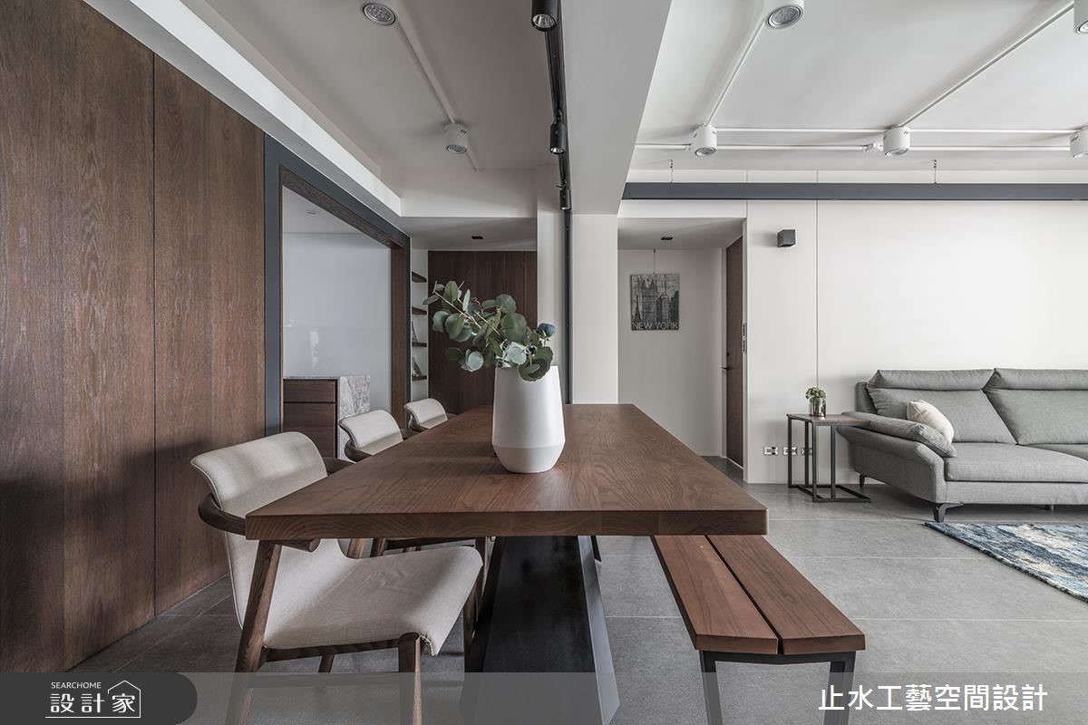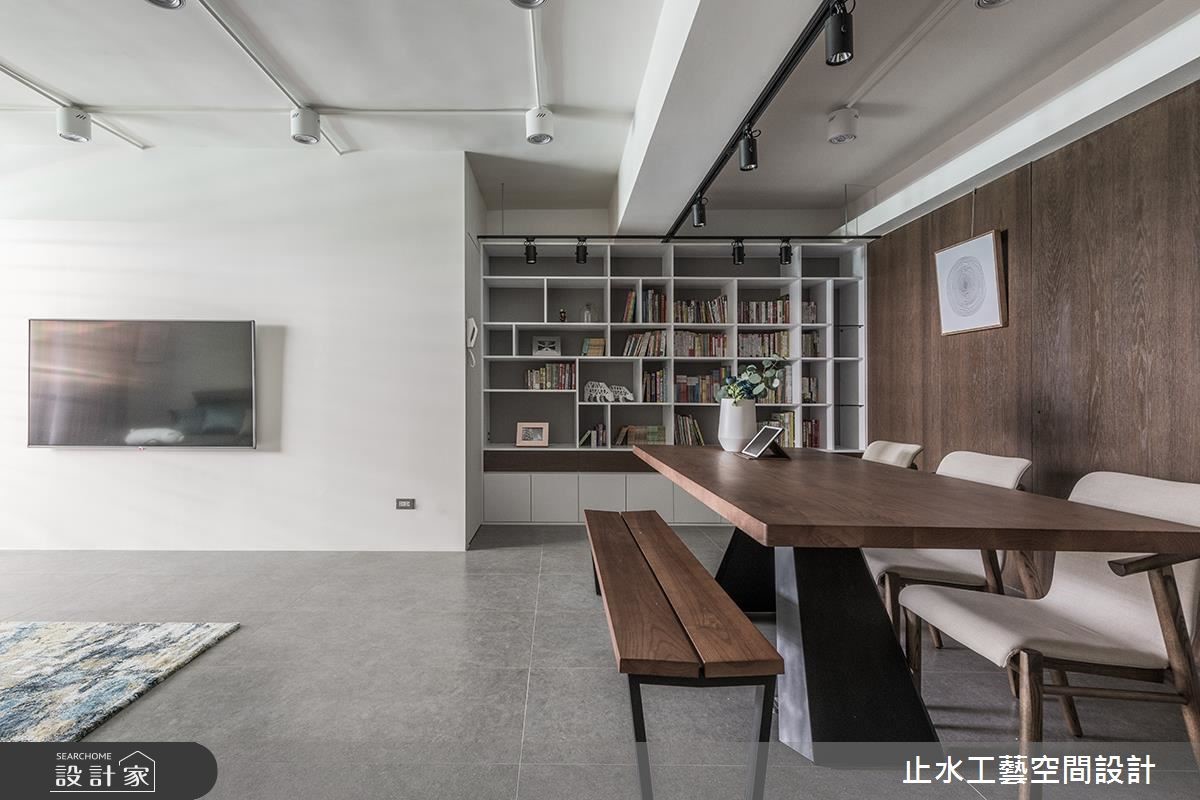 132平方米的老屋已有30年屋龄,除了典型的格局分配不均、拥挤昏暗,还有着梁柱破损、漏水的结构问题。因此设计师大刀阔斧,去除不必要的隔断引入光线,更微调格局,让空间比例适中,老屋重获新生。【去除隔断,视野有效延展】由于空间中间有结构柱,造成动线疑虑。设计师也发现卫浴过小、走道过长与后阳台光线不足的先天缺失。拆除餐厅隔断,消除狭长廊道,形成开放客、餐厅的明亮空间;同时调整房间与卫浴空间,扩大比例,使用更舒适。并进一步化缺为优,轨道灯由大梁延伸至结构柱,不仅框设空间、更成功放大既有视觉。全室以纯白色调为基底,搭配沉静的灰色家具与温润的木地板,抹除老屋原先阴暗潮湿的致命问题,多了阳光的暖意与惬意的放松空间!