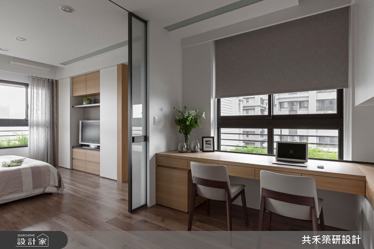 客变后格局还是有问题怎么解?电视半墙创造多元机能,主客卧对调优化动线,59.4 平米新成屋化身质感文青宅