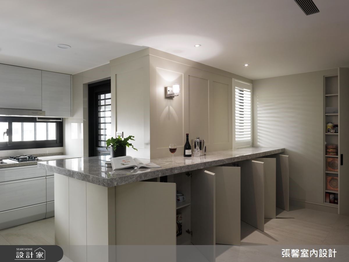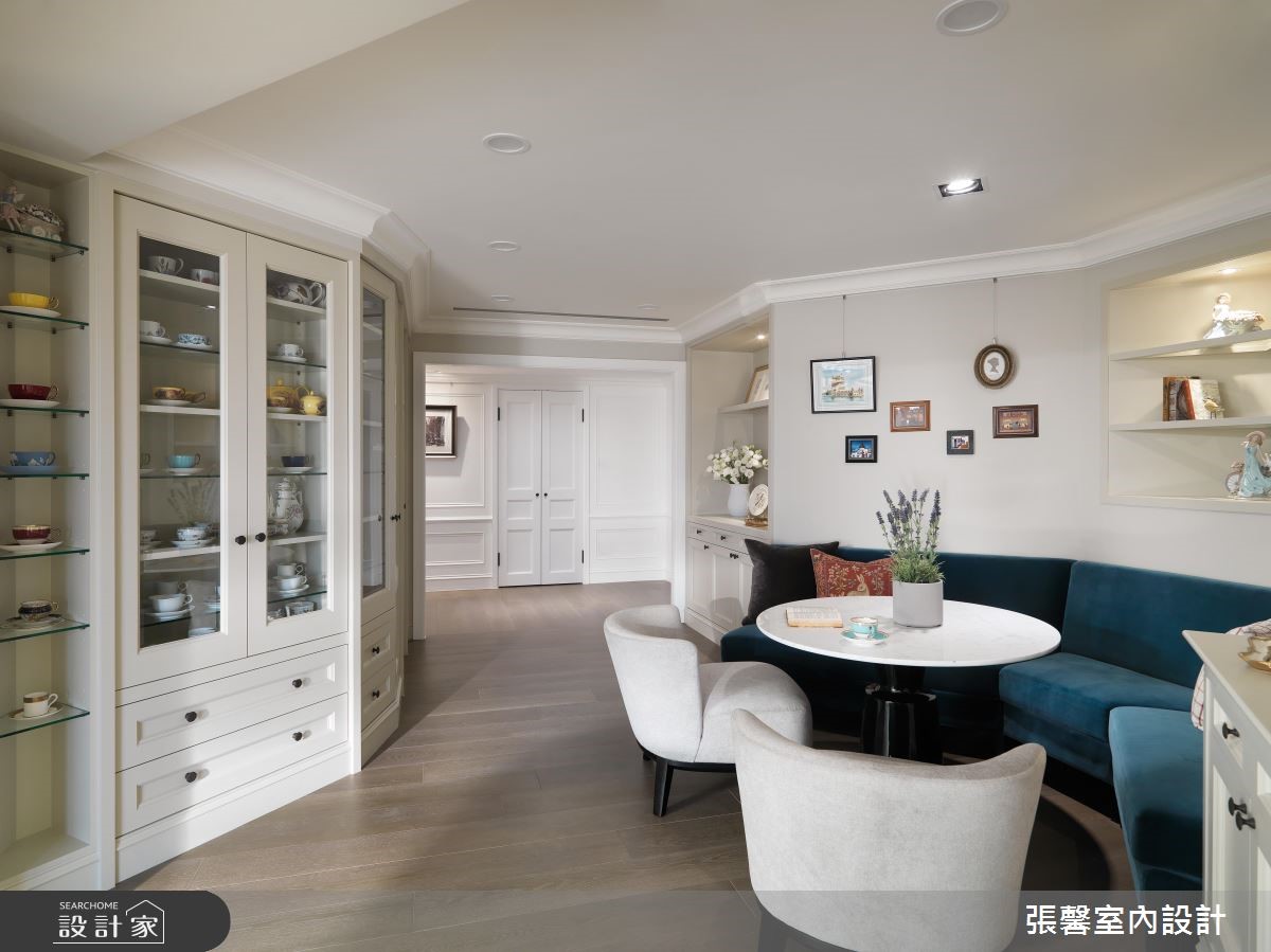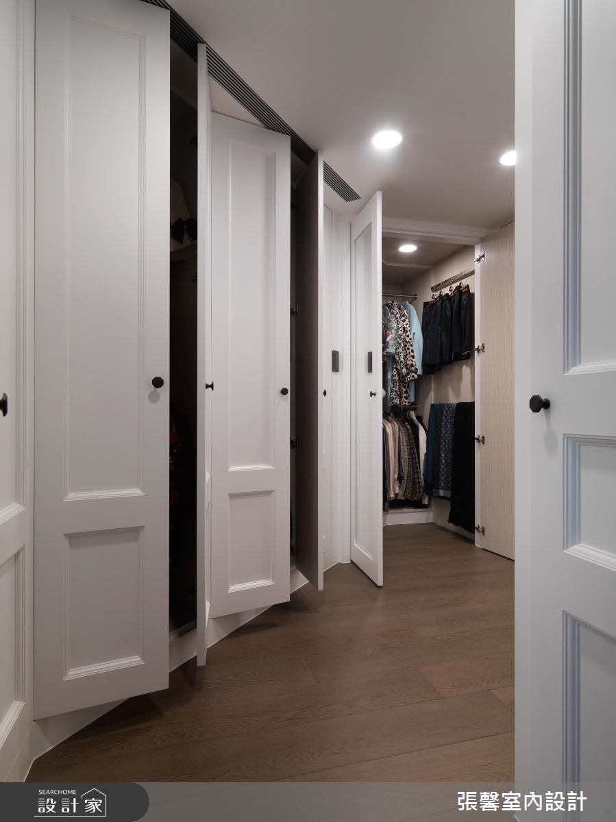 208平米欧式古典风家居,设计师完美切割钻石型格局,因应着多边型的畸零地,打造强大的收纳机能,无论是玄关的过道,或特为屋主规划的更衣室、精品鞋柜,都完美体现了女人们的梦幻想望,快跟着小编一起来看看吧!设计师透过收框方式串联每个场域,运用白色线板的延伸,导引渐进式的生活动线,并架构出不同的场域範围,且在轻盈浅色基地中,穿插着隐约的色彩差异,如淡灰、白色、米白等,在扩容感之馀,也带出细緻的层次变化,同时引用「582设计概念」,留有5成的设计轮廓,再搭配家具、软件等8分布置,最后将2分空白留给居住者,成就最具舒适感、呼吸度的视野,同时突破既有的设计思维,将沙发背墙与窗景结合,佐以浅灰的窗帘陪衬,加深整体的明亮氛围;餐厨则依循既有架构,沿着墙面配置 L 型吧檯,底下更加入强大的置物空间,在有限条件下创造最大的使用效益!小编的最爱无论是收纳可观的鞋柜,或量身打造的更衣间,甚至每个转角令人惊喜的展示风景,从公领域到私领域,设计师皆充分瓦解格局逆境,让不规则住宅发挥空间最大价值,重新坐拥动人新风貌!