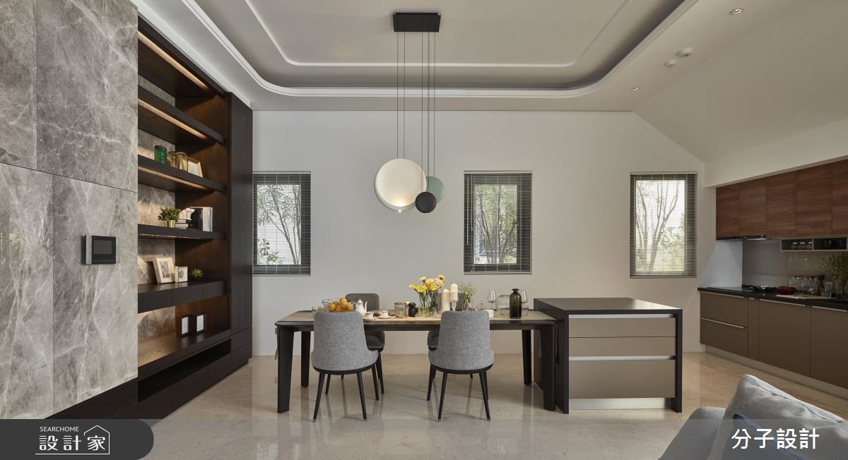 屋主为50岁左右的已婚妇女,因为常需出差,于是选择了此间透天别墅,作为自己独享的休憩兼接待亲友之处,设计师首先改善格局狭隘、装饰材过多等问题,并改造收纳机能,加入清爽干净的现代风格,让屋主随时可于此享受自在步调,快跟着小编一起来看看吧!设计师改善原屋况的老旧装饰,舍弃老气的面材,将风格与建材重新翻整,首先让客厅兼做视听区使用,融入良好的採光,透过灰色电视墙与沙发色调相互呼应,搭配着明亮地毯提点彩度,展现舒适情境;并于电视墙旁衔接一道展示柜,以此作为用餐区的美好端景,同时把厨房变为开放通透的格局,增添厅区的互动性与空间感;二楼则作为主卧室,在天花、壁面轻覆简约线板,彰显白色的淡雅内敛,且于床头后方安置更衣间,藉由隐形门片维持立面的完整性,并将主浴隔断局部改为玻璃、变为一小面室内窗,型塑场域更延伸的观感,搭佐着百叶帘的弹性屏蔽,同步维持使用隐私!小编的最爱 四楼规划为瑜珈室兼客房,给予大量留白,挹注流畅的动线,加以木质格栅的铺排,营造出悠閒禅韵,让人可在此尽情纾压!