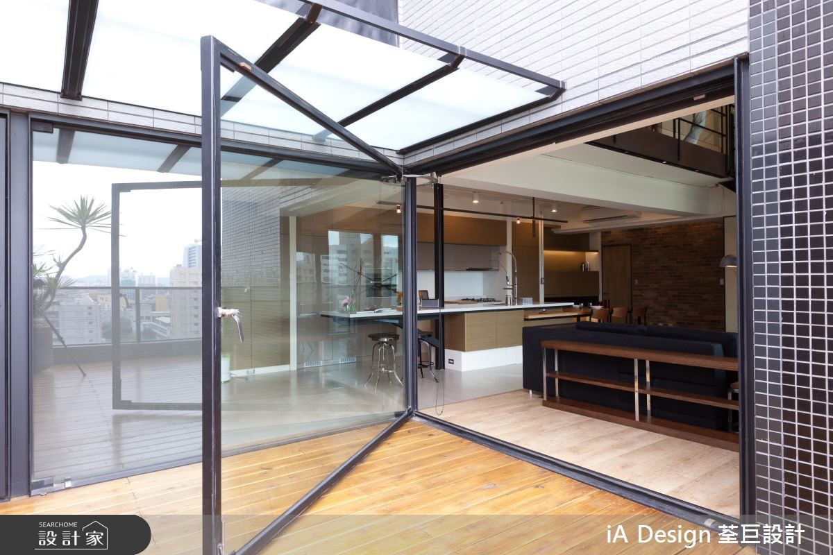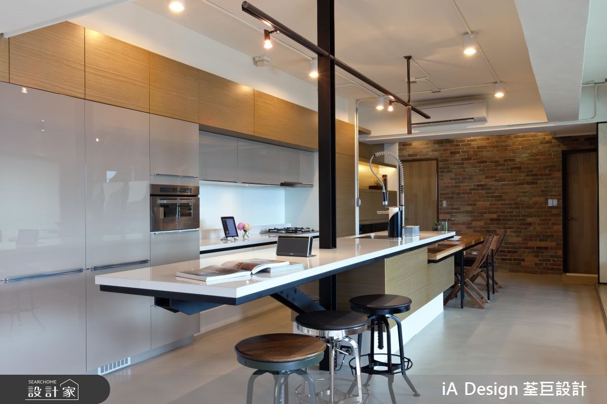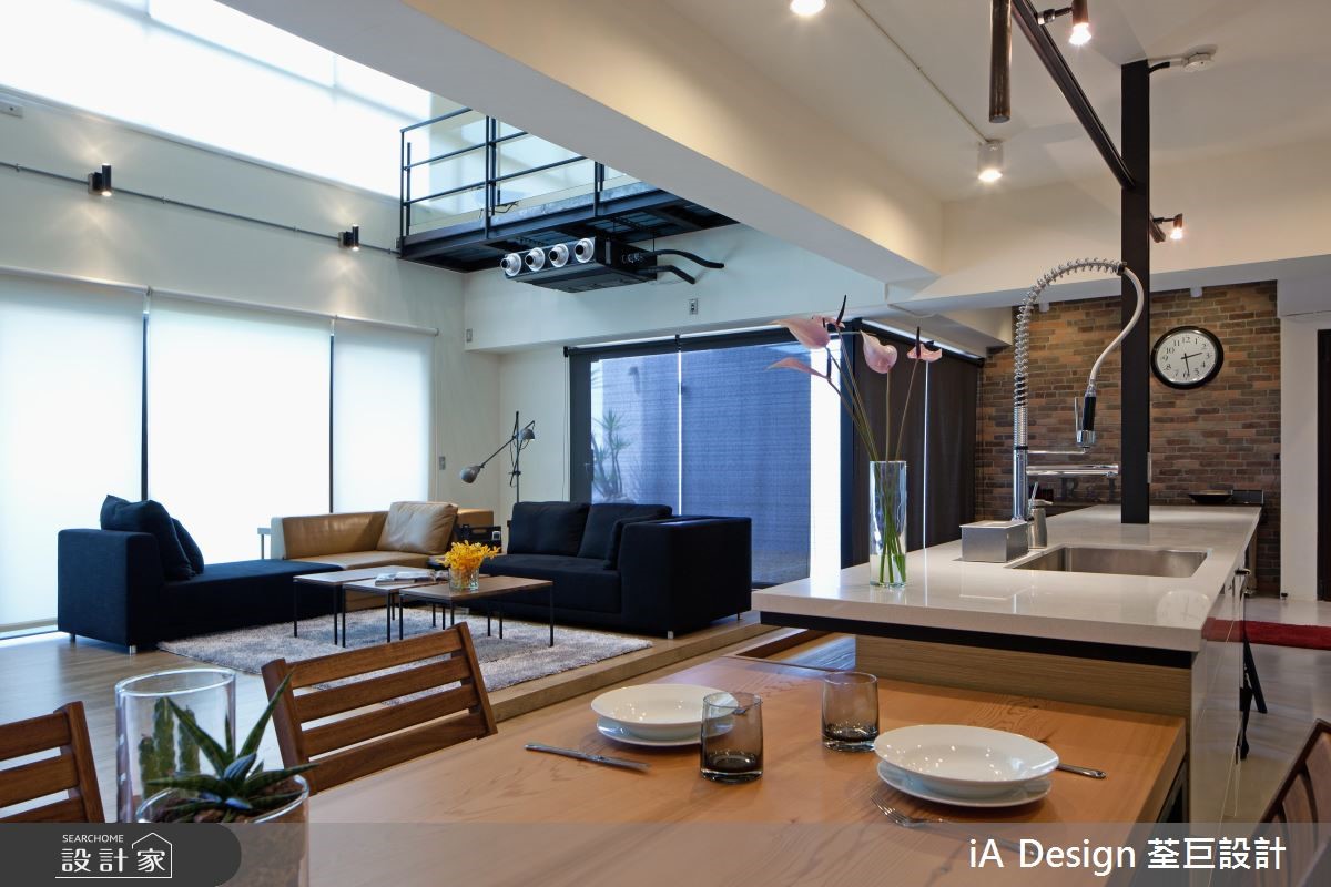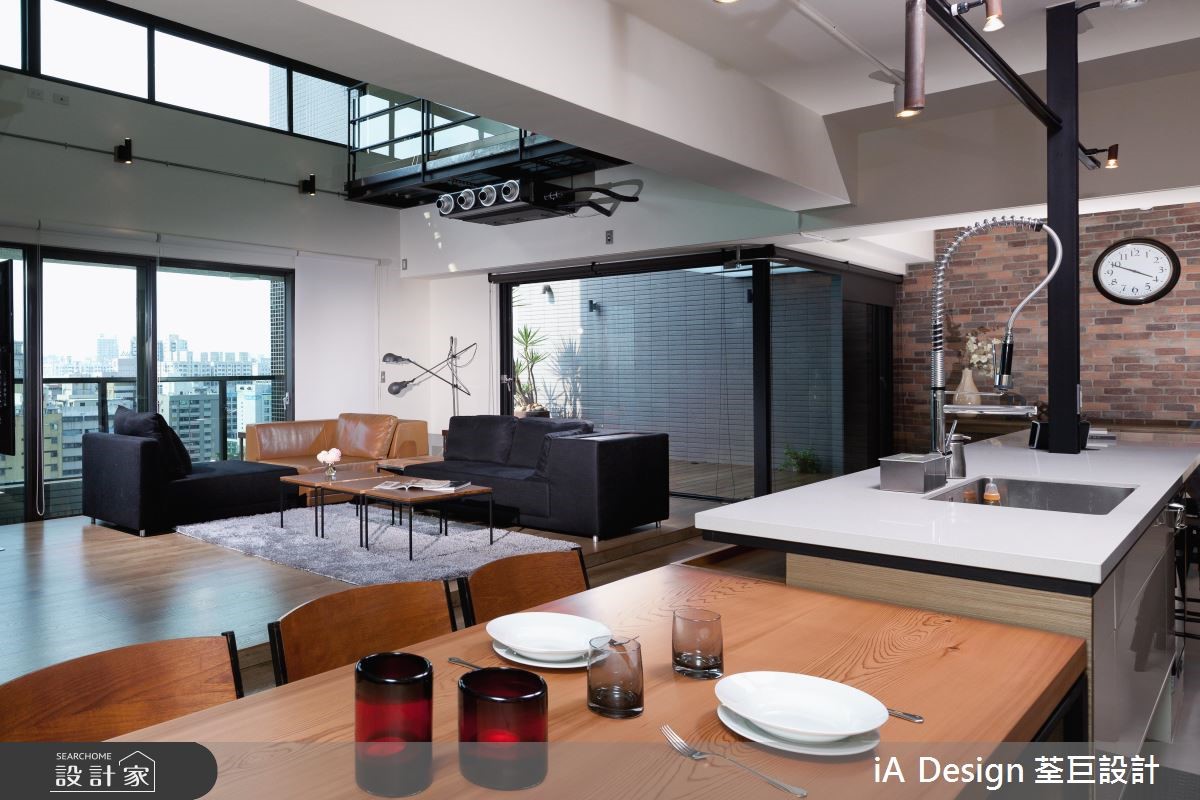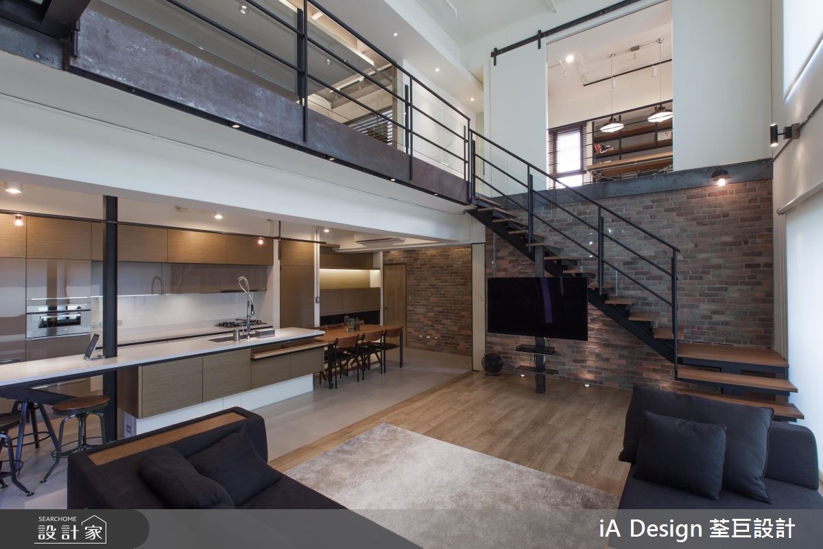 屋主购置了位于高楼层、本身拥有挑高、採光等优良基地条件的 231 平米新成屋案,进一步克服楼中楼的施工困难,依据屋主需求变动格局,明确划分公私领域。 1 楼敲除原本的封闭格局,以开放式设计串连客厅与餐厨空间,仅巧妙以地平方米材质与高度划分功能区块,并增设了与餐桌结合的中岛吧台。不仅打开空间视野,更放大了既有的採光与挑高优势。客厅并未以极富穿透性的铁件取代制式电视墙,佐以大面积红砖墙,完成个性与俐落兼具的工业风格。通往 2 楼的黑铁楼梯搭配玻璃,成功创造通透感,私领域同样透过调整格局,将 2 小房改为 1 大卧,以帘幕取代隔断,巧妙将最明亮的光线保留给卧房。书房则利用白色穀仓门片维持个人隐私、以及节省空间。 小编的最爱 刻意让阳台与客厅地平方米材质与高度一致,并以大面积落地窗抹除内外界线,成功打造无限延伸的视觉效果。