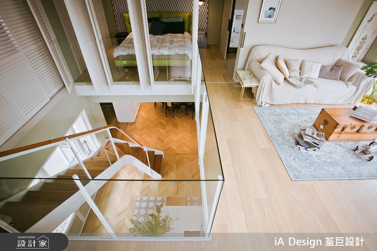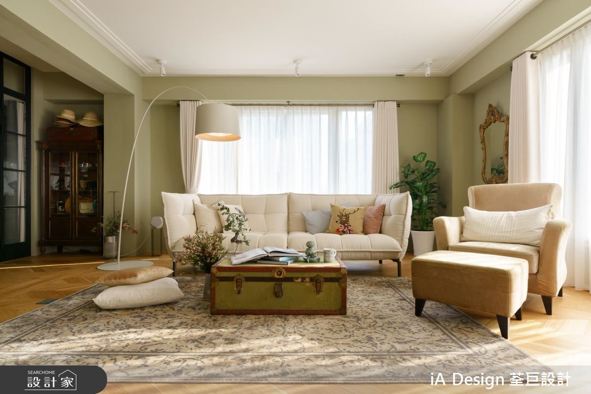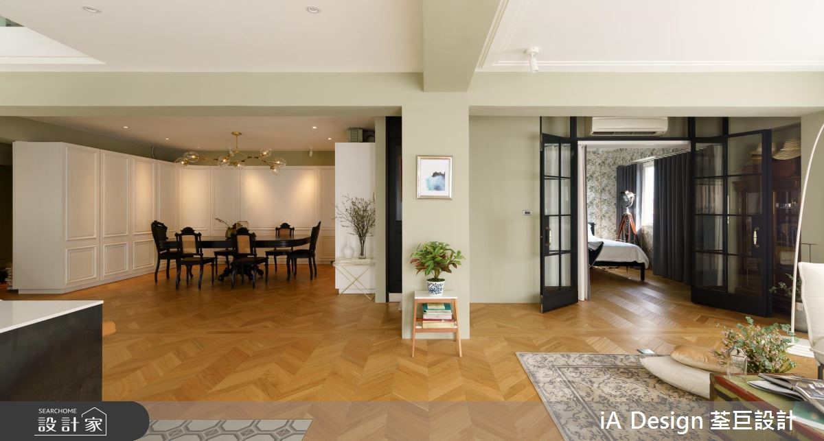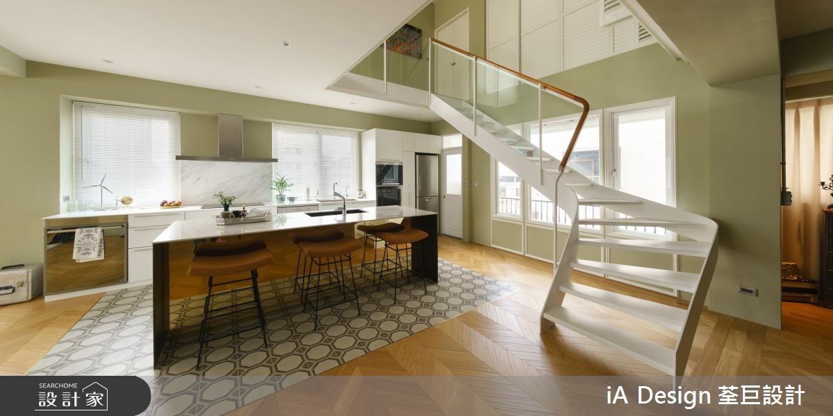 165 平米的欧式二手房,在经由设计师改造后,将空间动线打破,并改变楼梯位置,透过开放格局的擘划,促成景观与採光流通,搭配复古软件的陈列,营佈出充满故事性的生活视野,快跟着小编一起来看看吧! 空间整体採以大面积木地板铺陈,搭佐浅抹茶灰绿色的挥洒,呈现清爽舒适的氛围,并透过窗户纳入最佳採光面,援引丰沛自然光,营造敞亮视野,搭配古董老件与家具妆点,带出有如欧美影剧中的复古场景;餐厨领域,则刻意于地平方米加入八角花砖,围塑出专属範围,再设置一座中岛吧檯定义位置,让厨房随时成为交流核心,达成与周边的密切互动;同时改变既有的楼梯位置,再援引穿透设计规划踏阶与扶手,在流畅线条弯转之中,串起公私领域的关係;来到二楼,可见到一处小起居室,藉由大面窗连结户外露台,带出明媚风光,并以多扇百叶窗作为主卧隔断,紧闭时,是隐密的独立居室,开敞时,则共享起居客厅的光线,并坐拥更开阔的空间感! 小编的最爱 主卧、主卫以一道滑门界定彼此,但透过木地板的延续延伸,塑造场域一体感,并摆置一座独立浴缸,上演欧美小公寓的随兴气息!