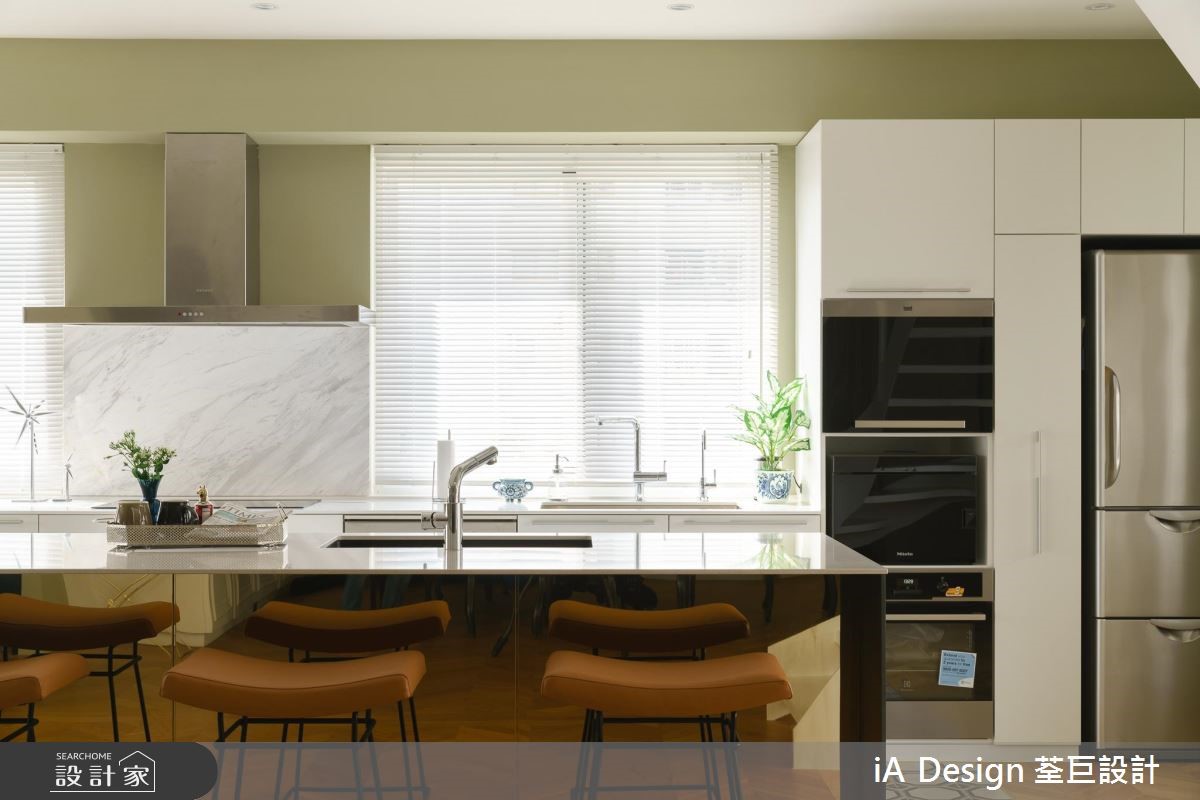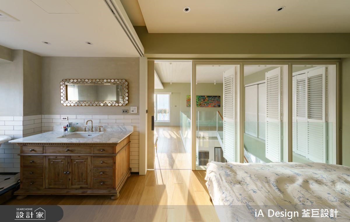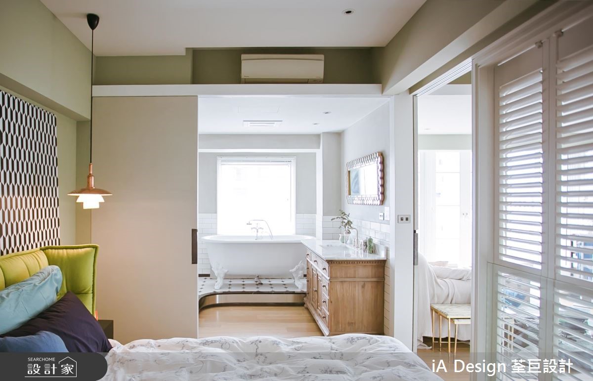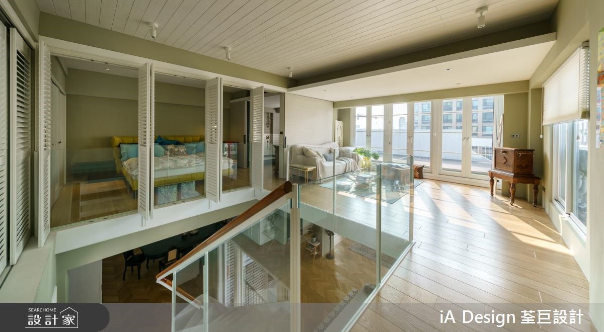165 平米的欧式二手房,在经由设计师改造后,将空间动线打破,并改变楼梯位置,透过开放格局的擘划,促成景观与採光流通,搭配复古软件的陈列,营佈出充满故事性的生活视野,快跟着小编一起来看看吧! 空间整体採以大面积木地板铺陈,搭佐浅抹茶灰绿色的挥洒,呈现清爽舒适的氛围,并透过窗户纳入最佳採光面,援引丰沛自然光,营造敞亮视野,搭配古董老件与家具妆点,带出有如欧美影剧中的复古场景;餐厨领域,则刻意于地平方米加入八角花砖,围塑出专属範围,再设置一座中岛吧檯定义位置,让厨房随时成为交流核心,达成与周边的密切互动;同时改变既有的楼梯位置,再援引穿透设计规划踏阶与扶手,在流畅线条弯转之中,串起公私领域的关係;来到二楼,可见到一处小起居室,藉由大面窗连结户外露台,带出明媚风光,并以多扇百叶窗作为主卧隔断,紧闭时,是隐密的独立居室,开敞时,则共享起居客厅的光线,并坐拥更开阔的空间感! 小编的最爱 主卧、主卫以一道滑门界定彼此,但透过木地板的延续延伸,塑造场域一体感,并摆置一座独立浴缸,上演欧美小公寓的随兴气息!