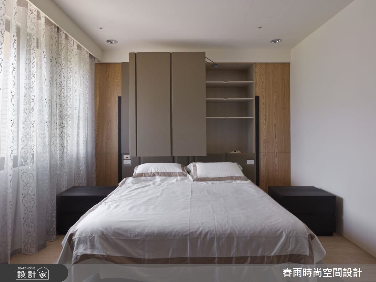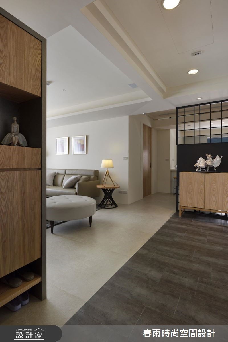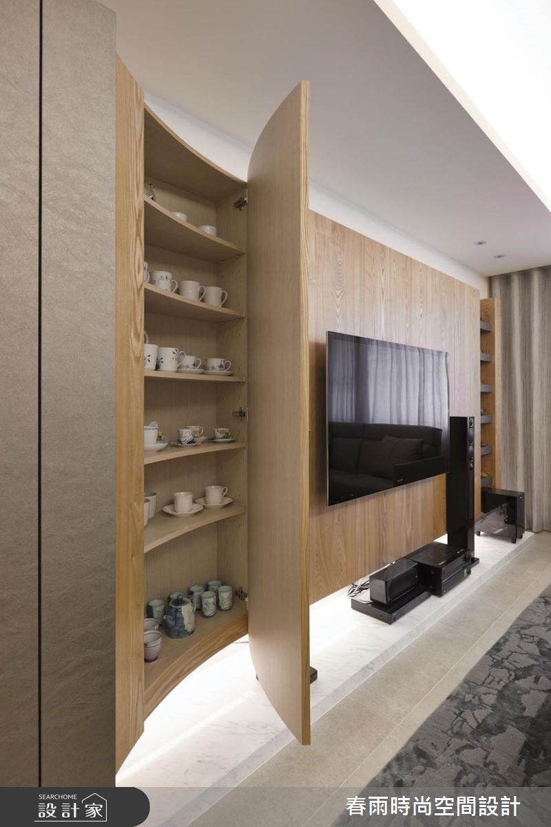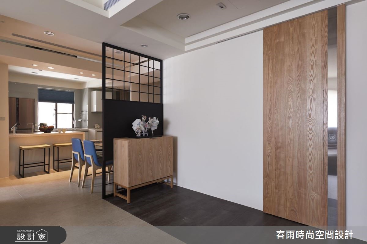 春雨设计最擅长的就是美型创意收纳,92平方米空间是新婚夫妻展开生活的地方,设计师为现代空间注入温馨休閒底蘊以及意想不到的收纳设计,让屋主惊喜! 设计师将格局划为前后两个对角线,将客厅、餐厨与多功能区域分开,并将玄关及客浴利用地板材质进行内外区别。外部鞋柜以一个优雅的弧度与木皮电视墙接壤,更与收纳柜结合,左右两侧分别巧妙构成收纳与展示的作用。接着设计师利用木质推拉门修饰了客浴入口,并为餐厨空间增设了铁件屏隔,抹除开门见灶的风水忌讳。设计师在一字型厨房与餐桌之间规划了吧台,成为两个场域的链结,而后方的多功能开放和室则在地板设置升降桌,随需求扮演阅读与休憩等角色。卧房善用樑下畸零地作为床头柜用途,搭配五金成为易开、易取用的轻鬆好设计。小編的最愛设计师无论在公私领域,都注入了许多美型收纳巧思,不但顺应屋主物品的量度,更考虑到使用的顺手程度,让居家空间清爽又整洁。